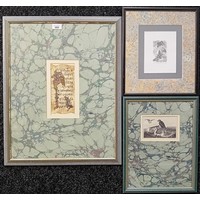 Set of Three chalk and pencil drawings with fabric mounts, titles 'Newborn Infant', 'Two Months old' and 'Three Months old', unsigned