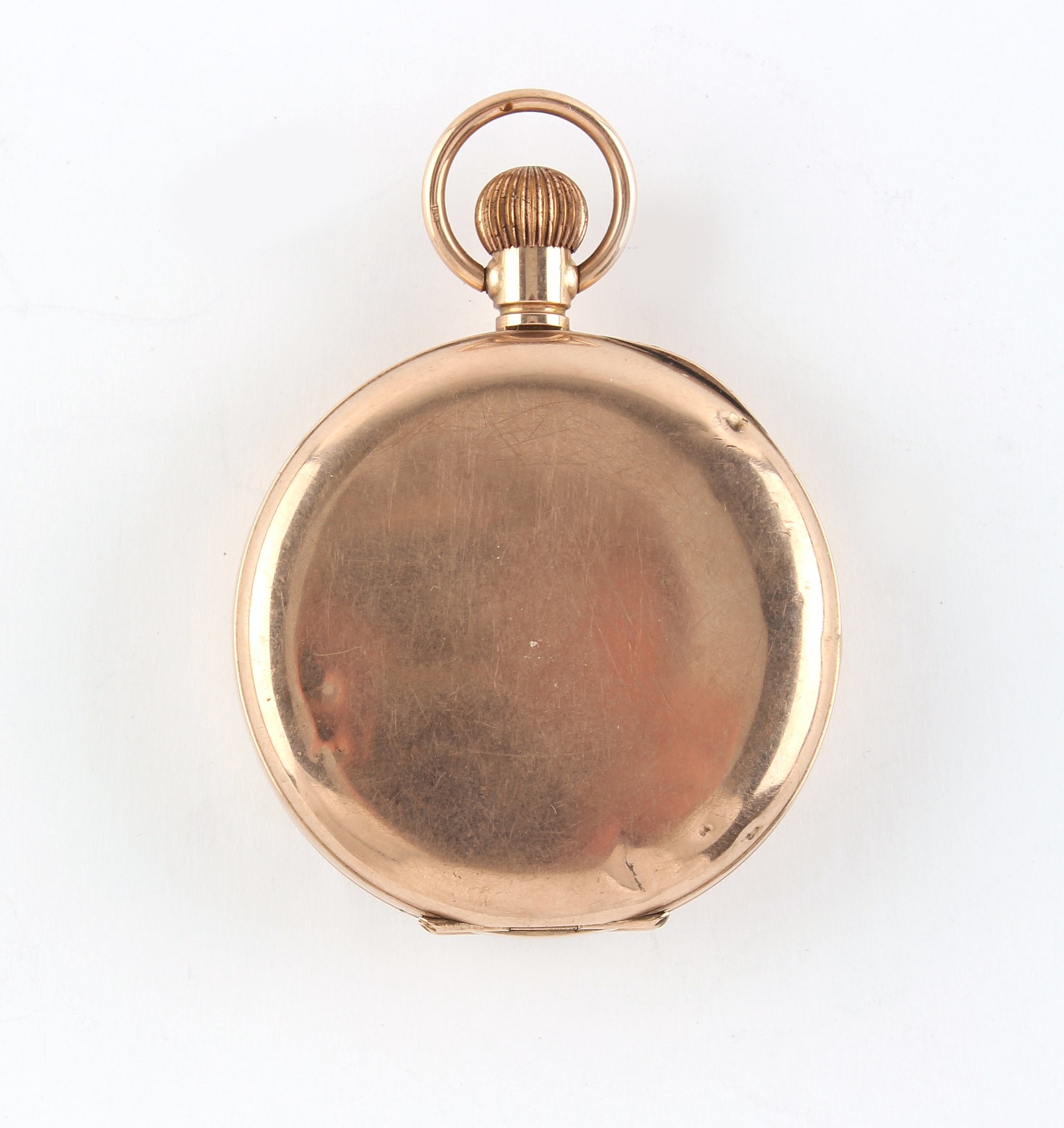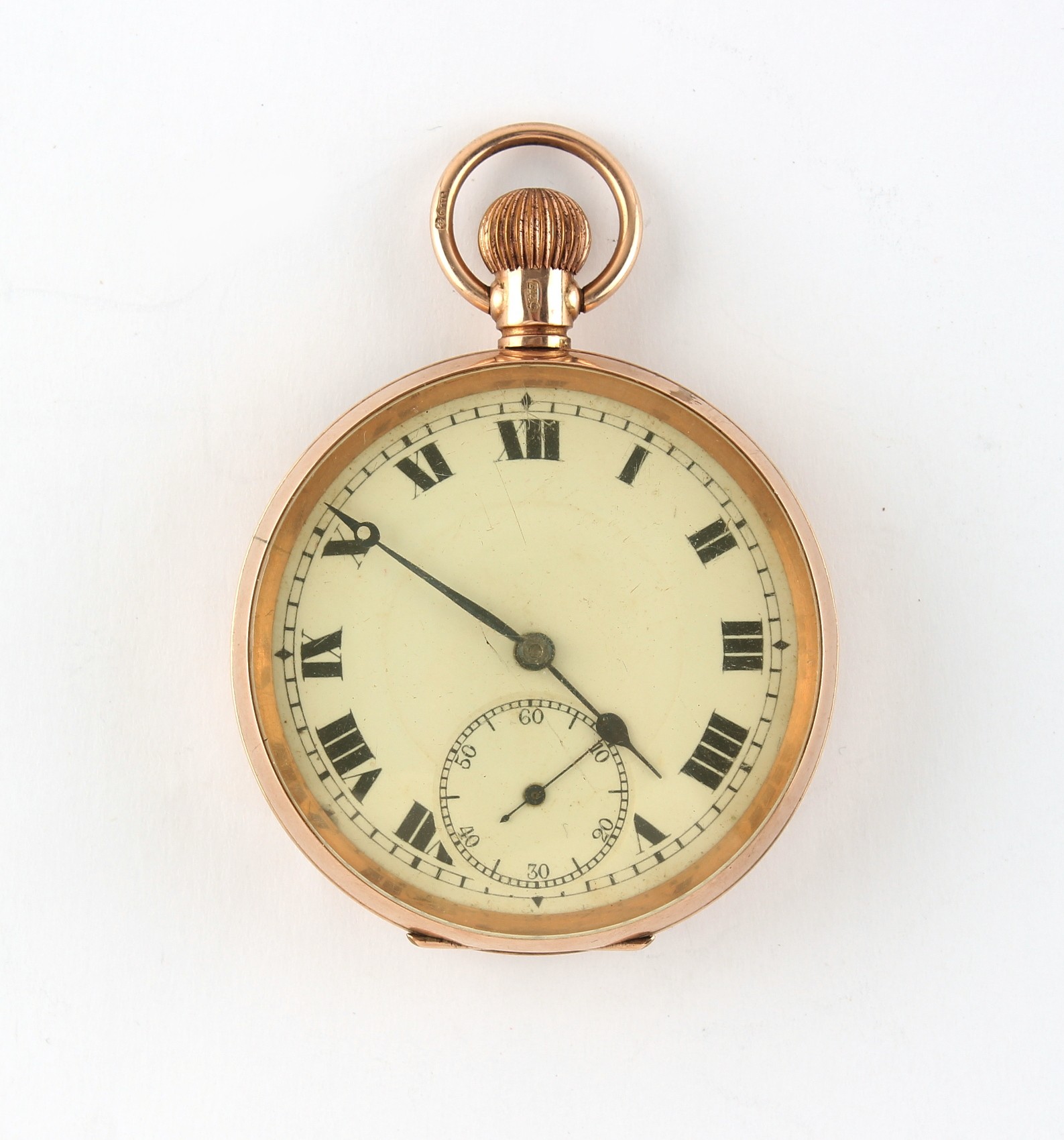 Property of a deceased estate, a private collection of watches - an early 20th century 9ct gold open faced pocket watch, keyless wind, the dust cover and suspension ring also 9ct gold, approximately 59.8 grams, 46mm diameter, appears to be working but no guarantees are given.
