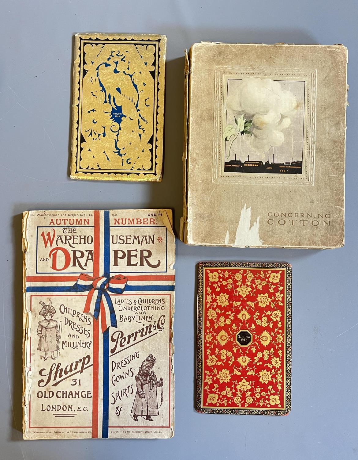 HAMPTONS & CO., carpet and furniture catalogues, Autumn 1927 & 1929 with The Warehouseman and Draper, fair condition AND Concerning Cotton, fair (4) (Est. plus 20% premium)