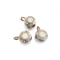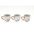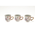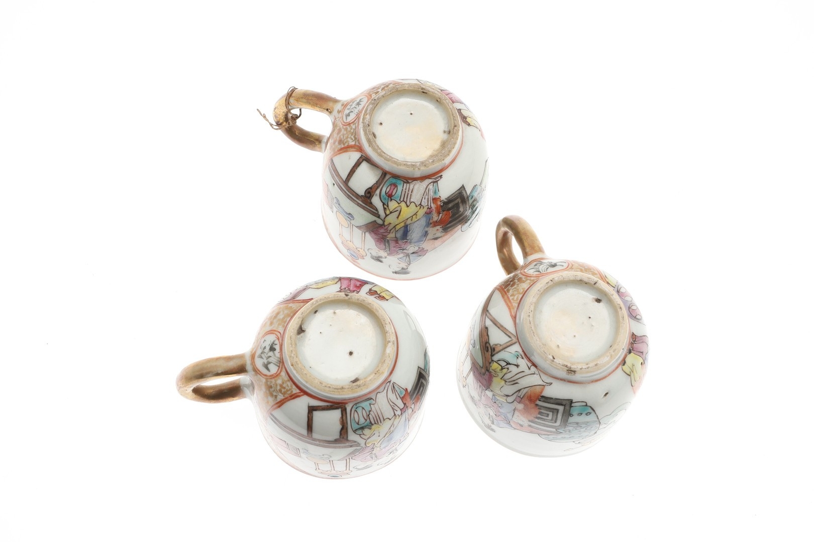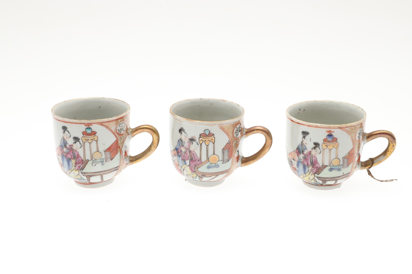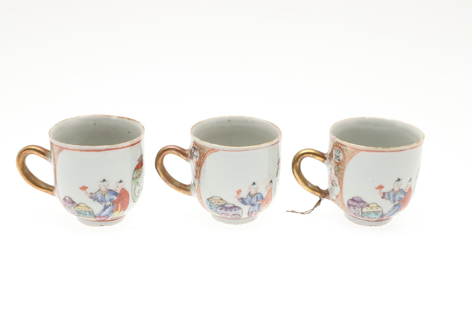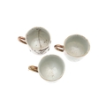 six cups, one smashed and repaired, the others with nibbles and chips to the rims and general wear.