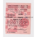 ARSENAL Seat ticket for the away League match v Luton Town 25/3/1975. Generally good