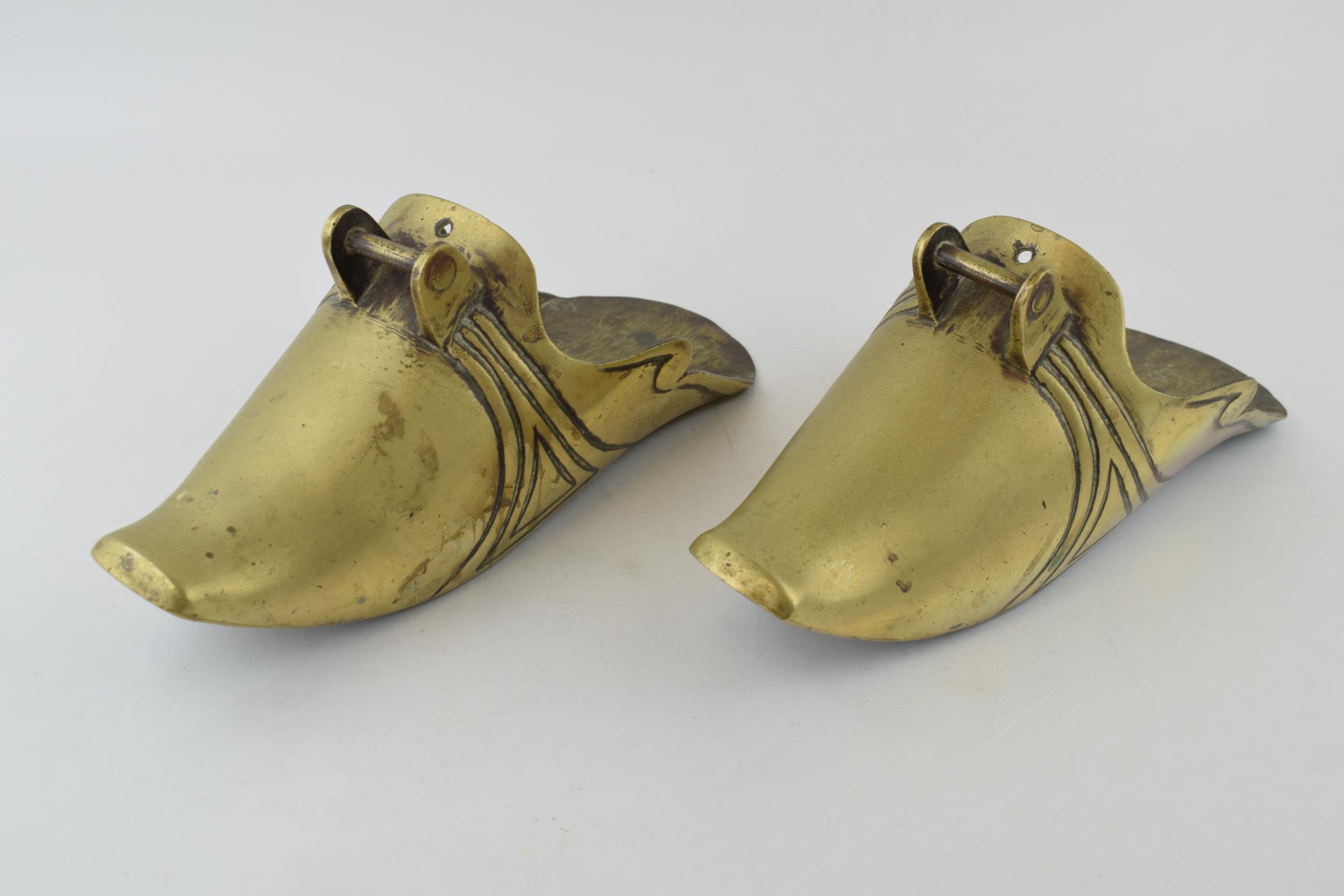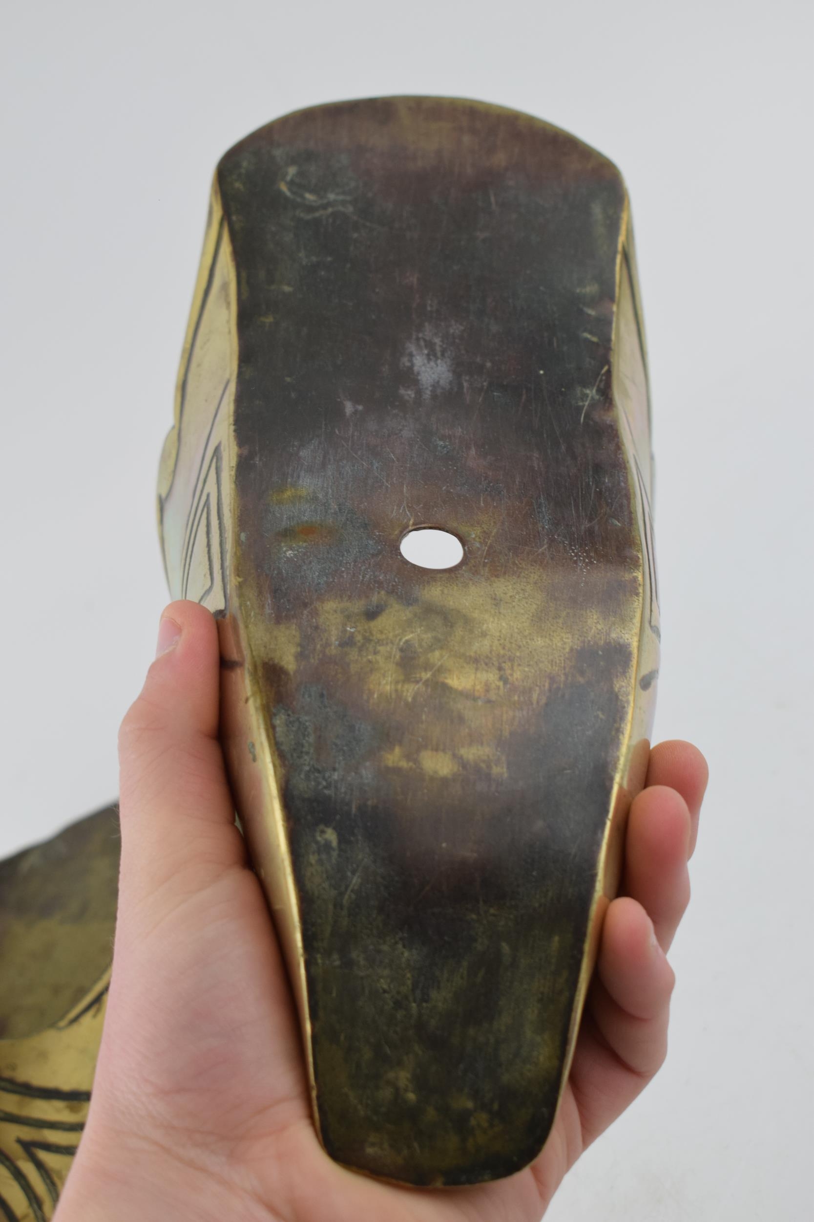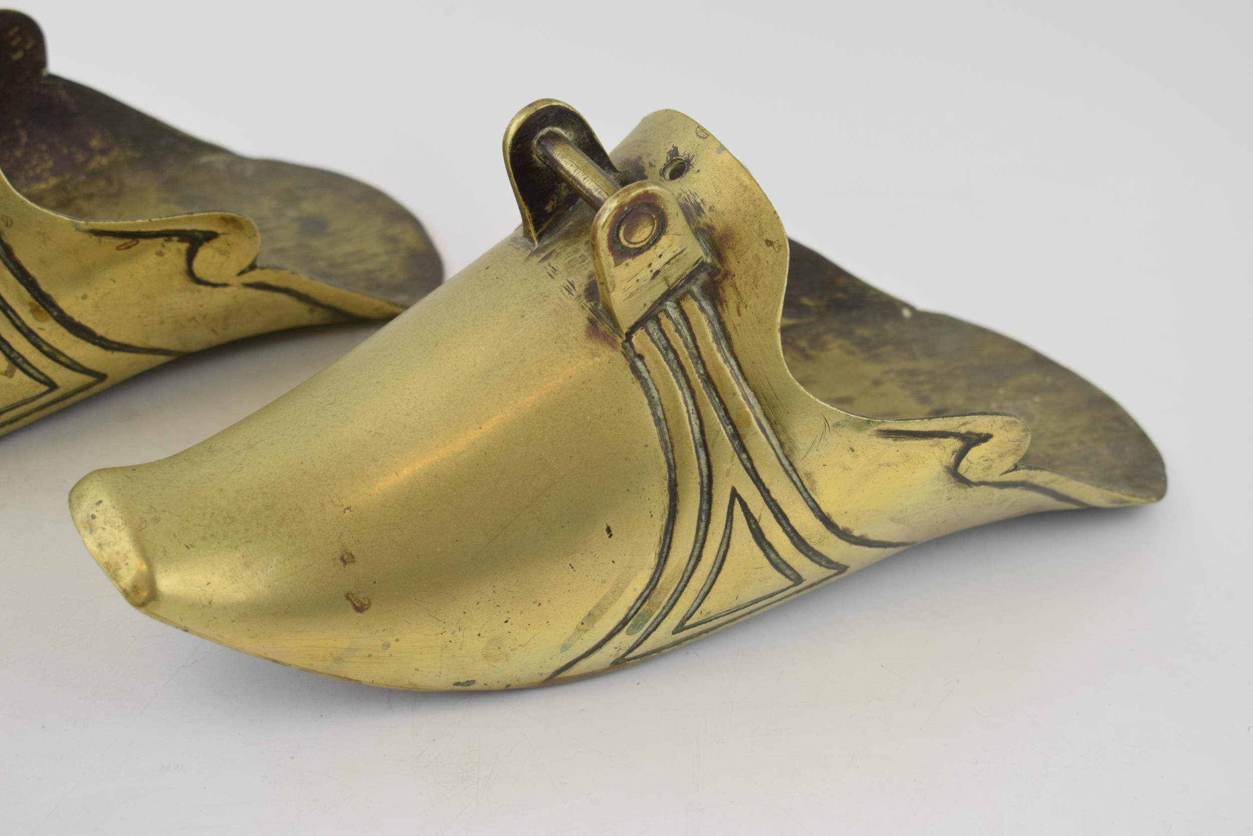 A pair of chinese style brass stirrups. Length 29cm, height 12cm.