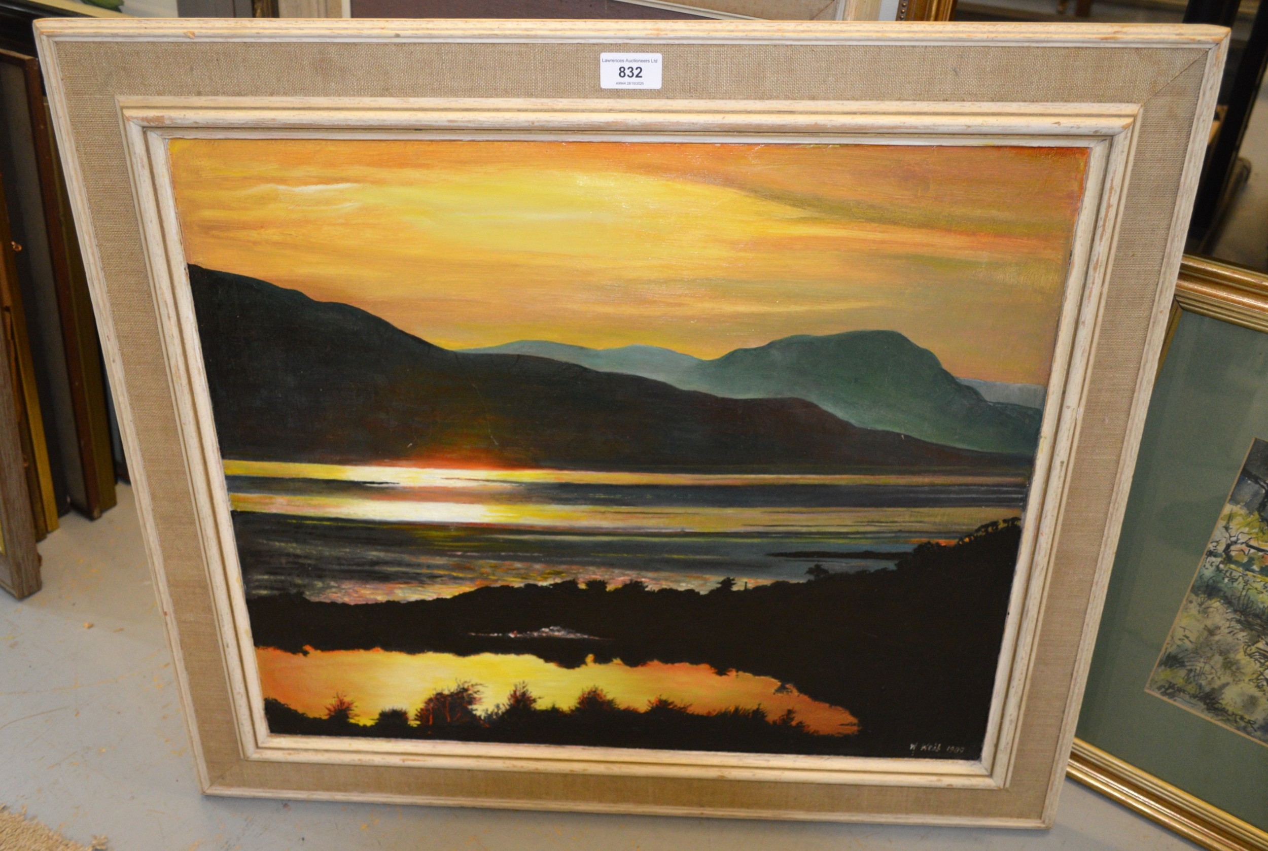 W. Webb, signed oil on canvas, sunset over loch, 49.5 x 59.5cm, framed