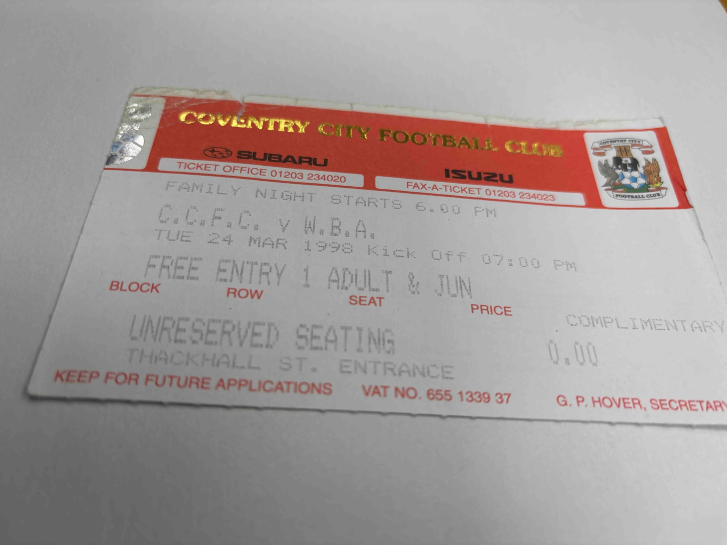 Ticket 1997/8 Coventry v West Brom sc