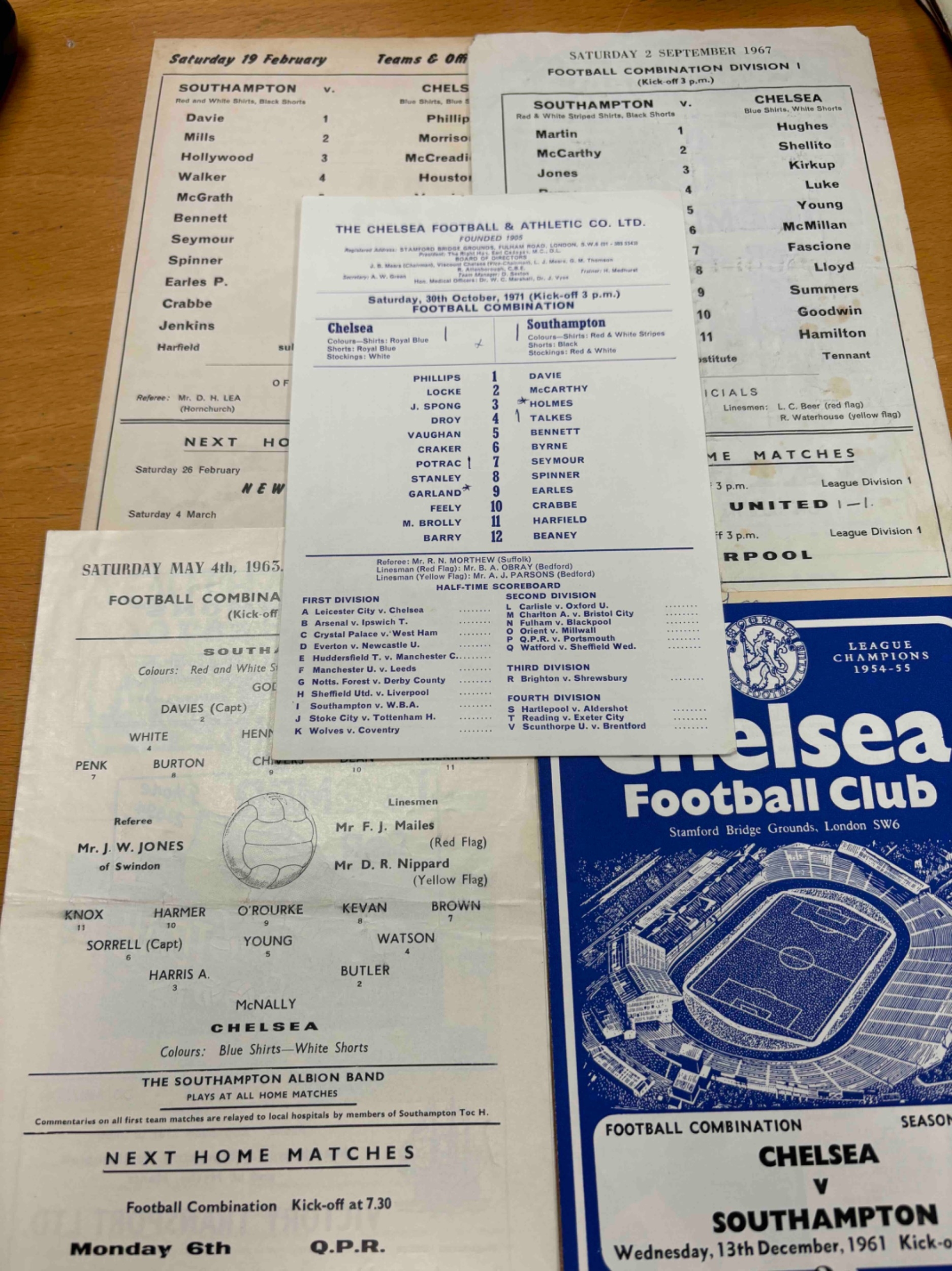7 x Southampton Reserves v Chelsea Reserves, Slcr fold TC, @Chelsea 1961/62, 62/63, 63/64, 71/72. @Southampton 64/65, 67/68 & 71/72.