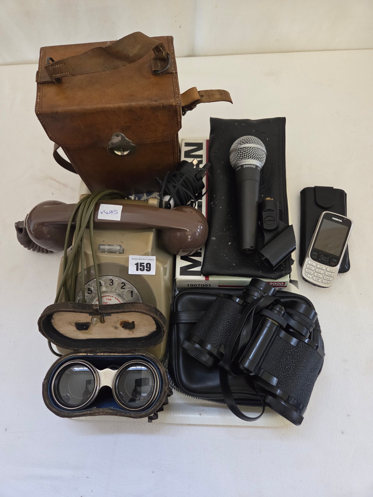 Collectors items incl. dial telephone, Nokia 630i mobile phone, leather instrument case etc