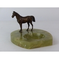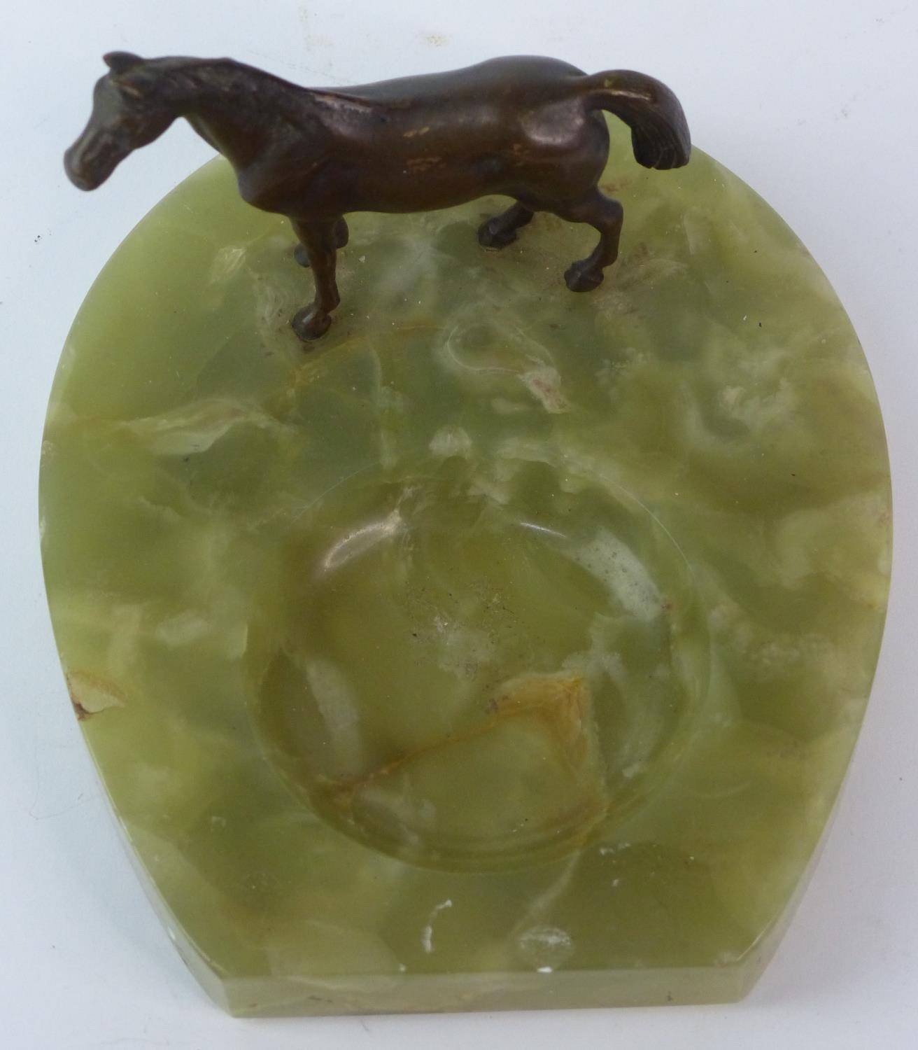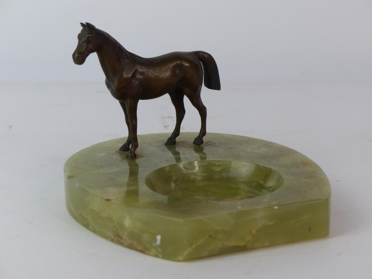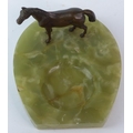A vintage Connemara marble ashtray with a figure of bronze horse.