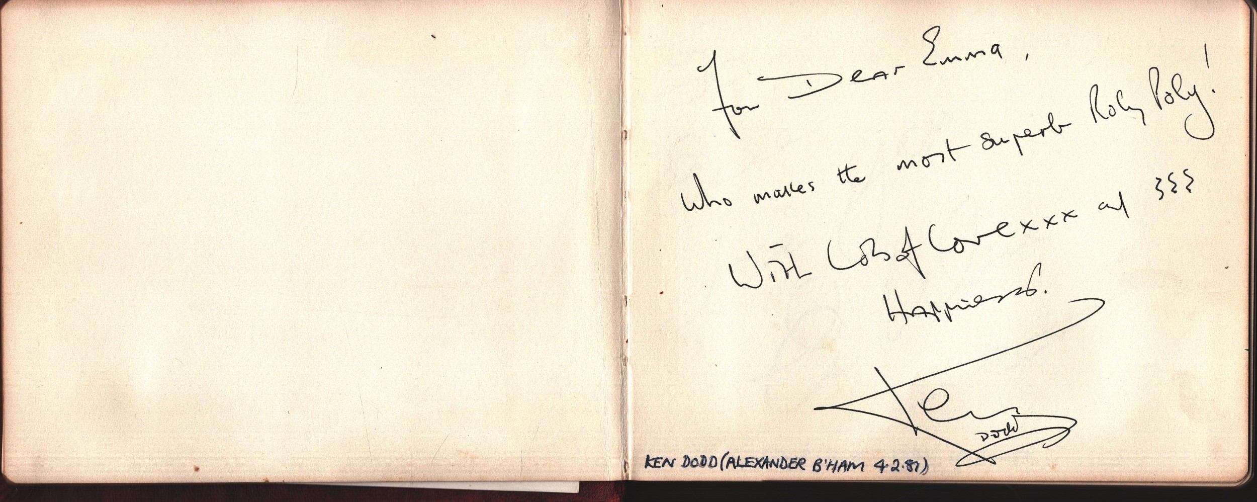Autograph book. Amongst signatures are Ken Dodd, Jimmy Youn...