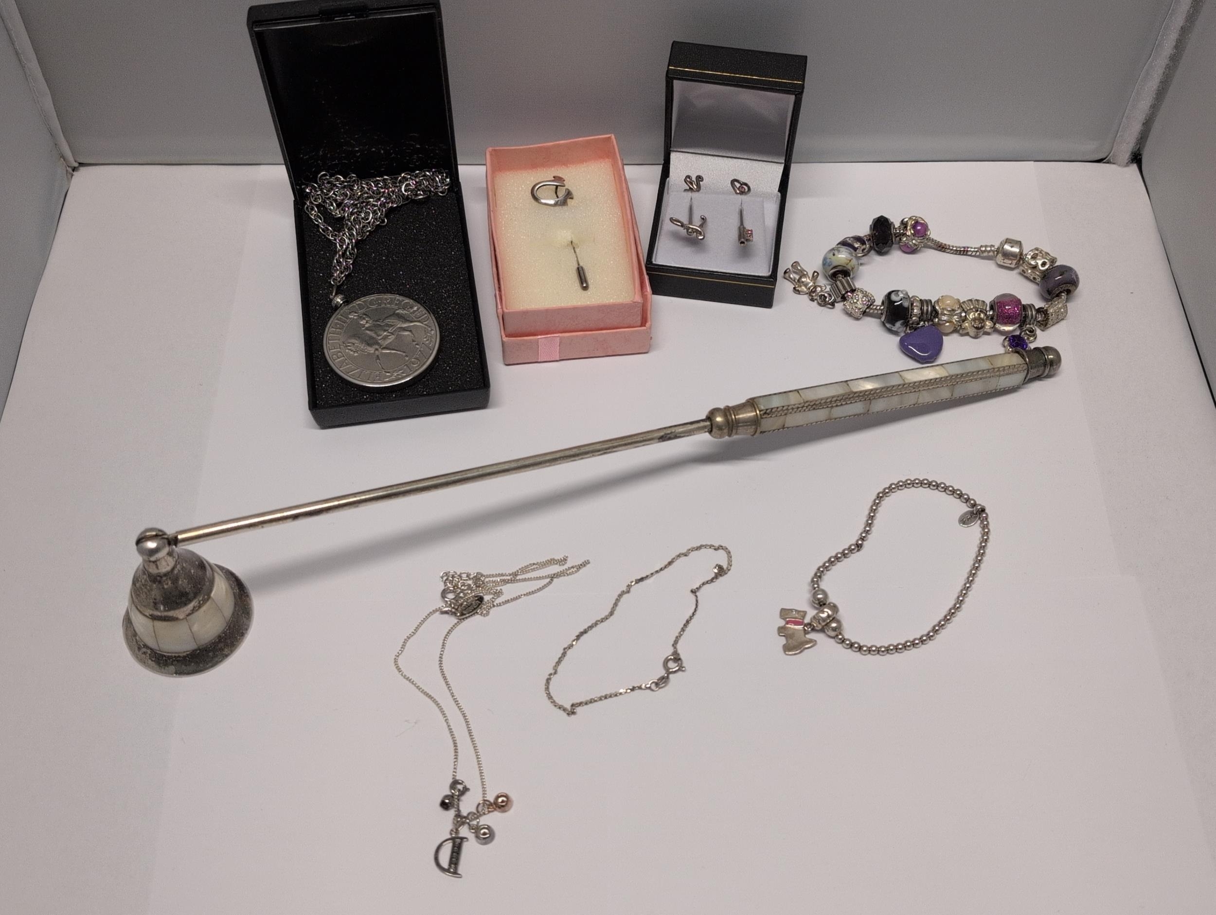An MOP Handle Candle Snuffer And Other Including Sterling Silver