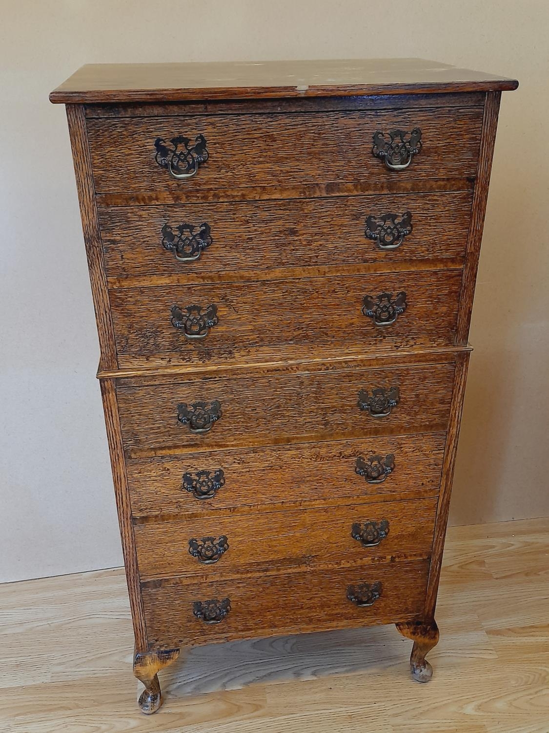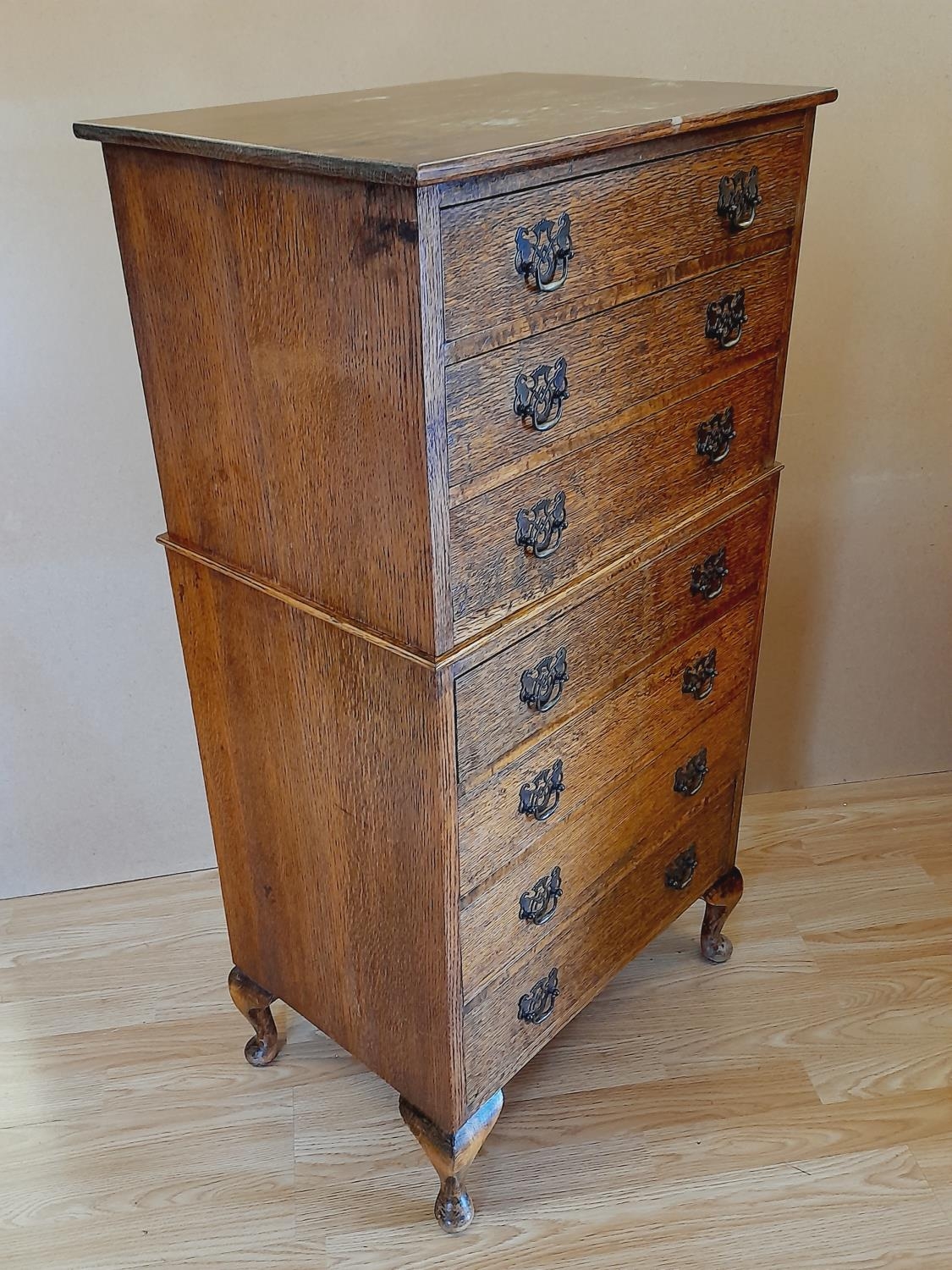 Oak Chest on Chest, 3 Over 4 Drawer Tallboy. 104cm High, 54cm x 37cm. Collection Only.