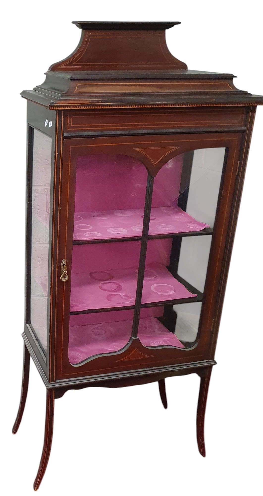 An Edwardian Mahogany and Inlaid single door Display Cabinet. W 61 x D 33 x H 141 cm approx.