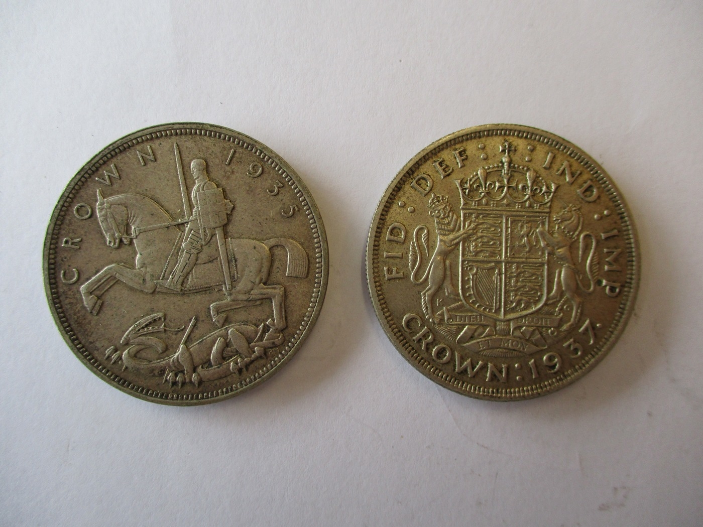 Milled collection with crowns 1935 (2) and 1937 extremely fine, double florin 1887 fine, sixpence 1887 nearly very fine, fourpence 1743 fine, etc to decimal issues. (2B)
