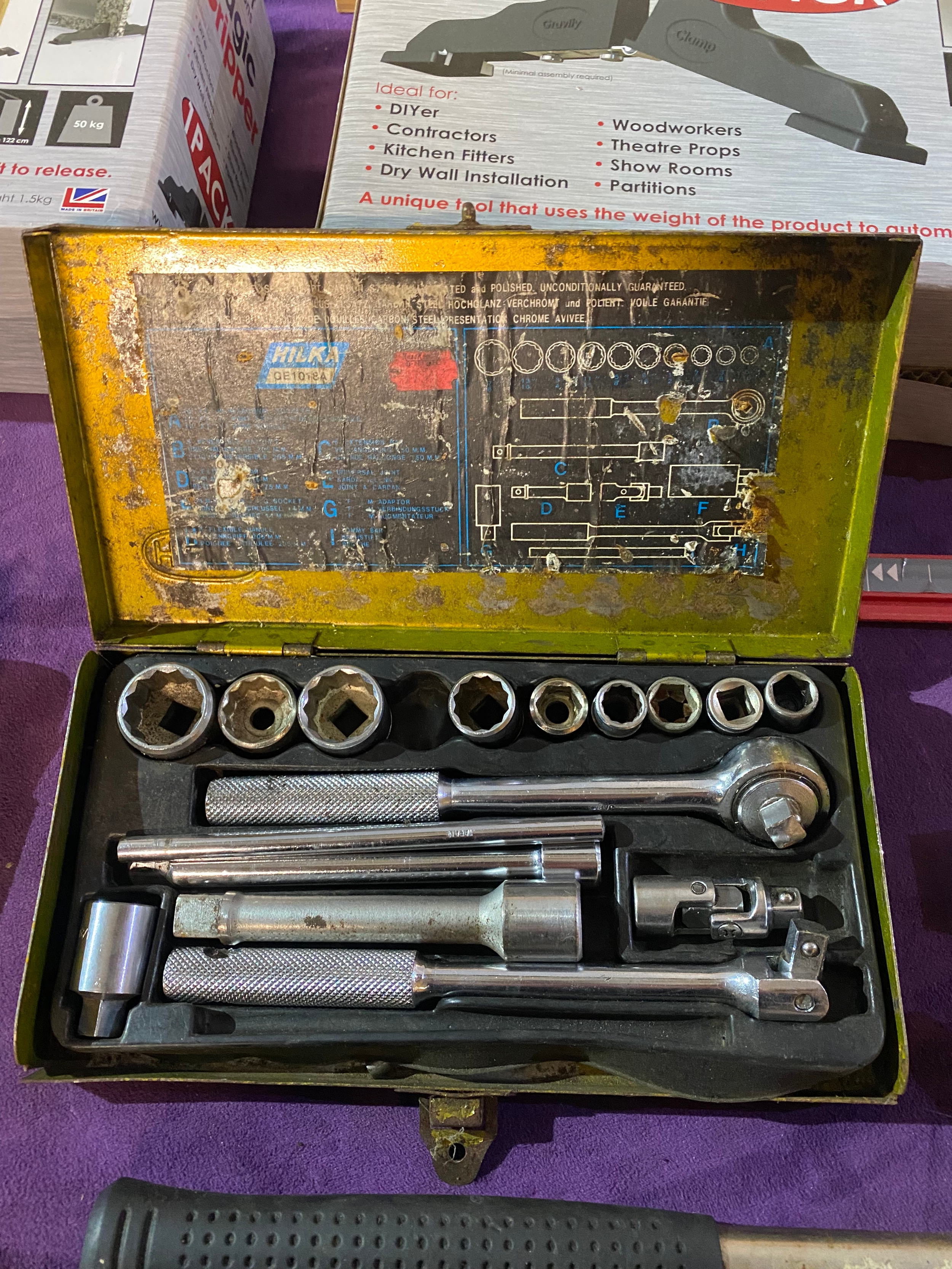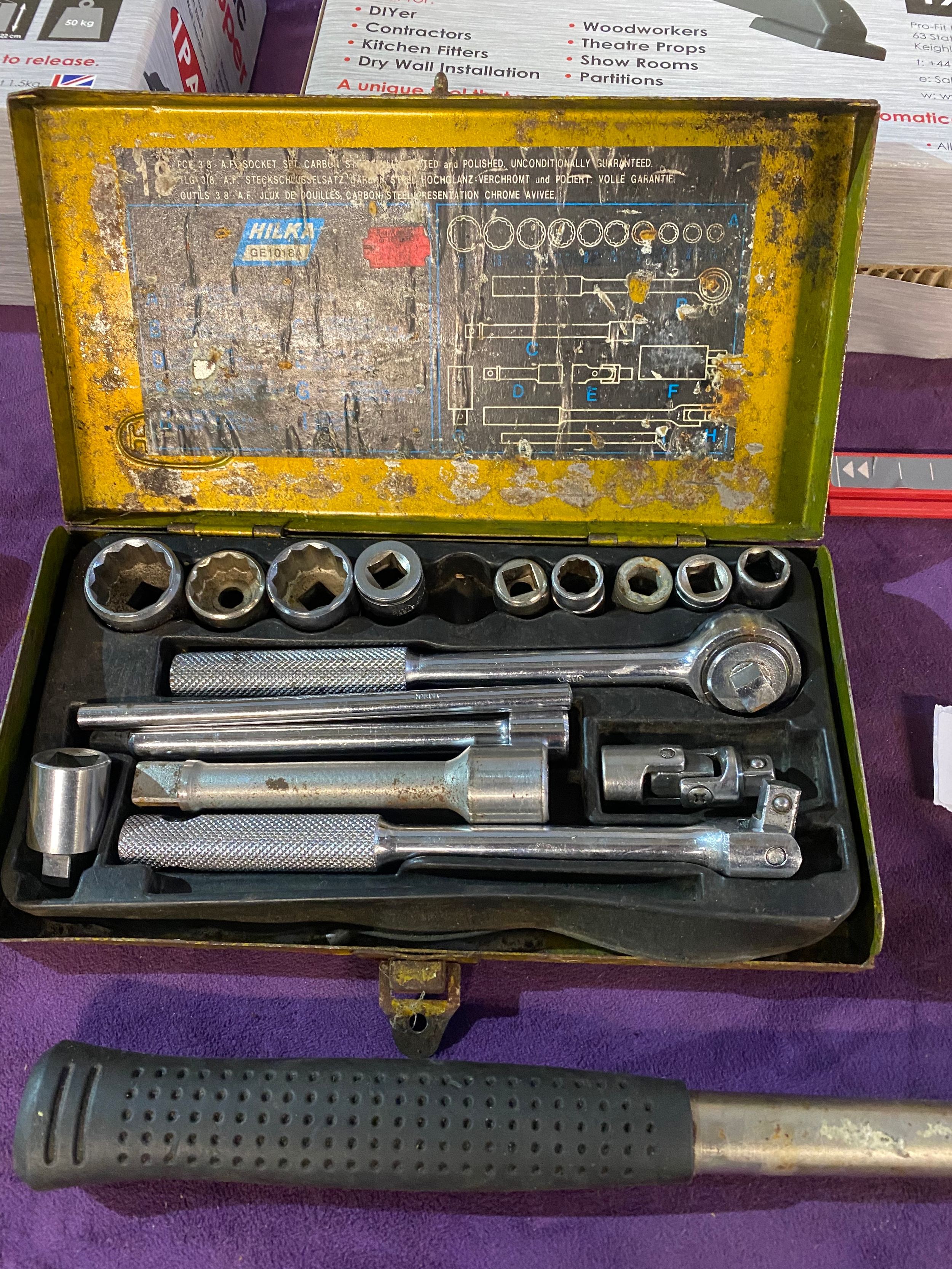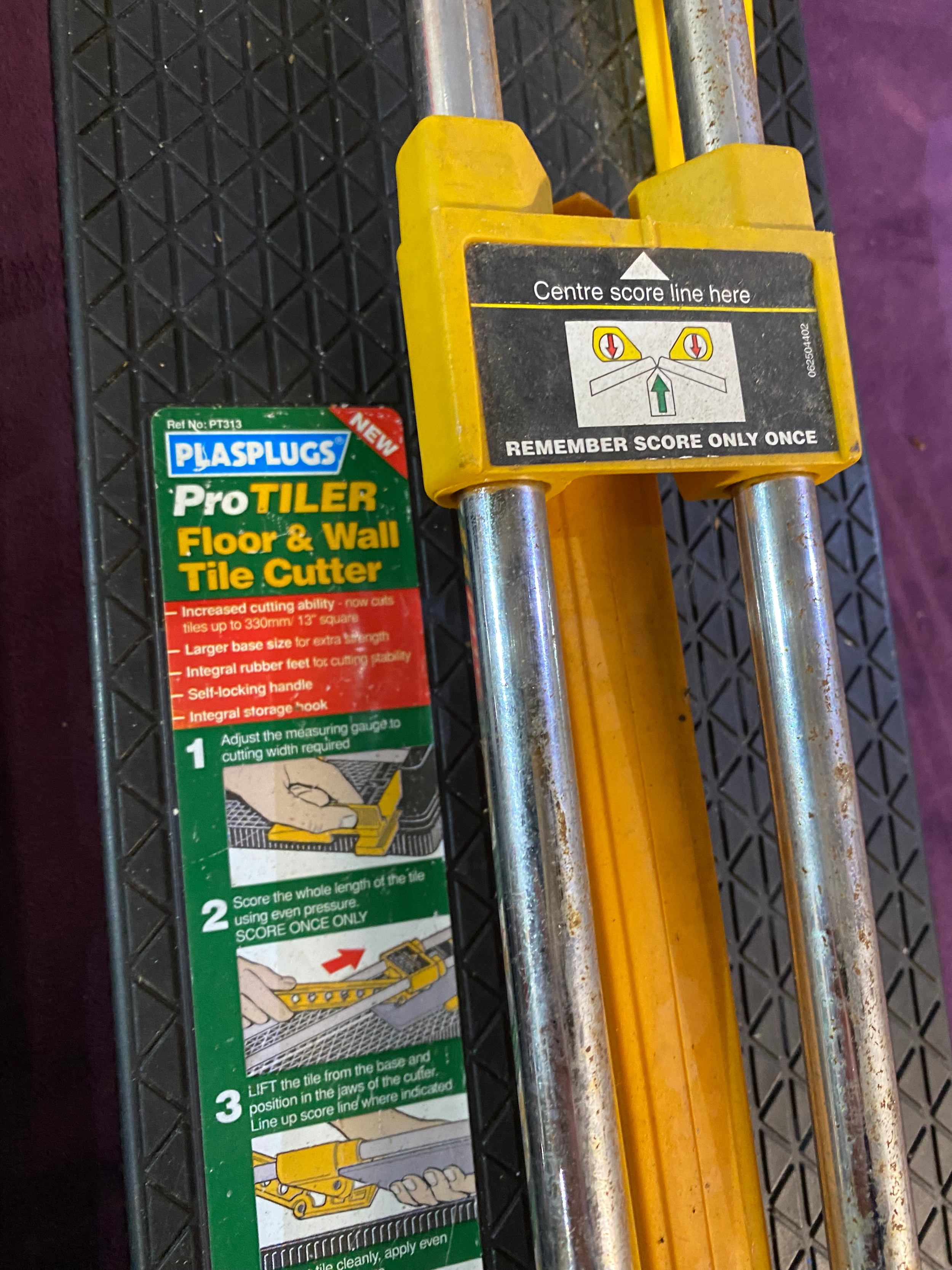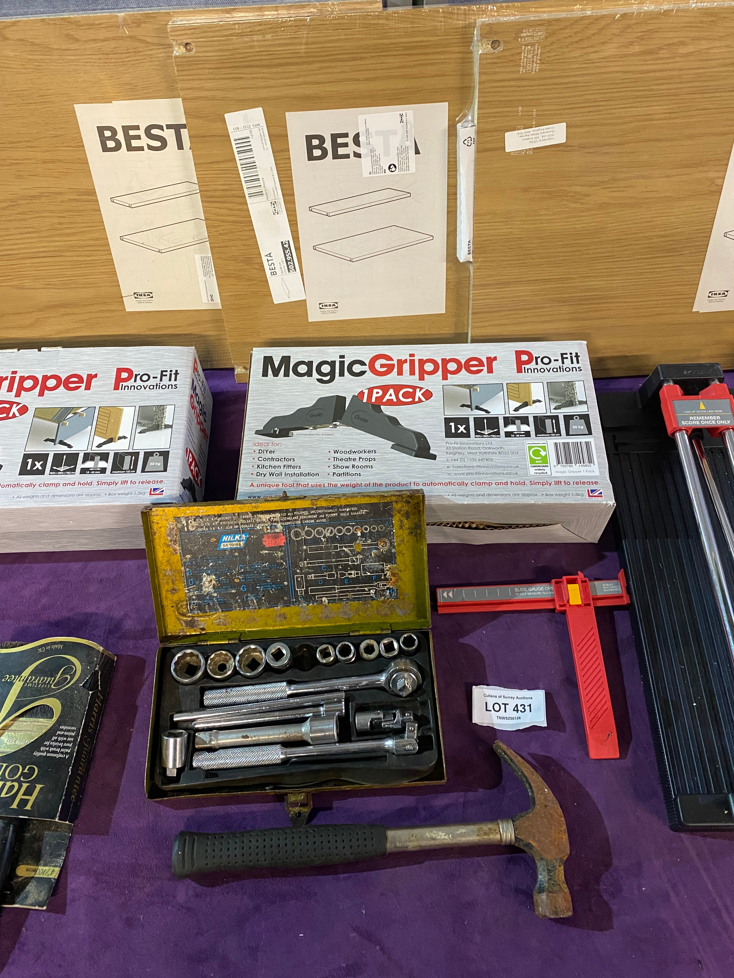Two Magic gripper sets, Two Harris gold paintbrushes, 2 tile cutting tools and some Ikea Besta Shelves