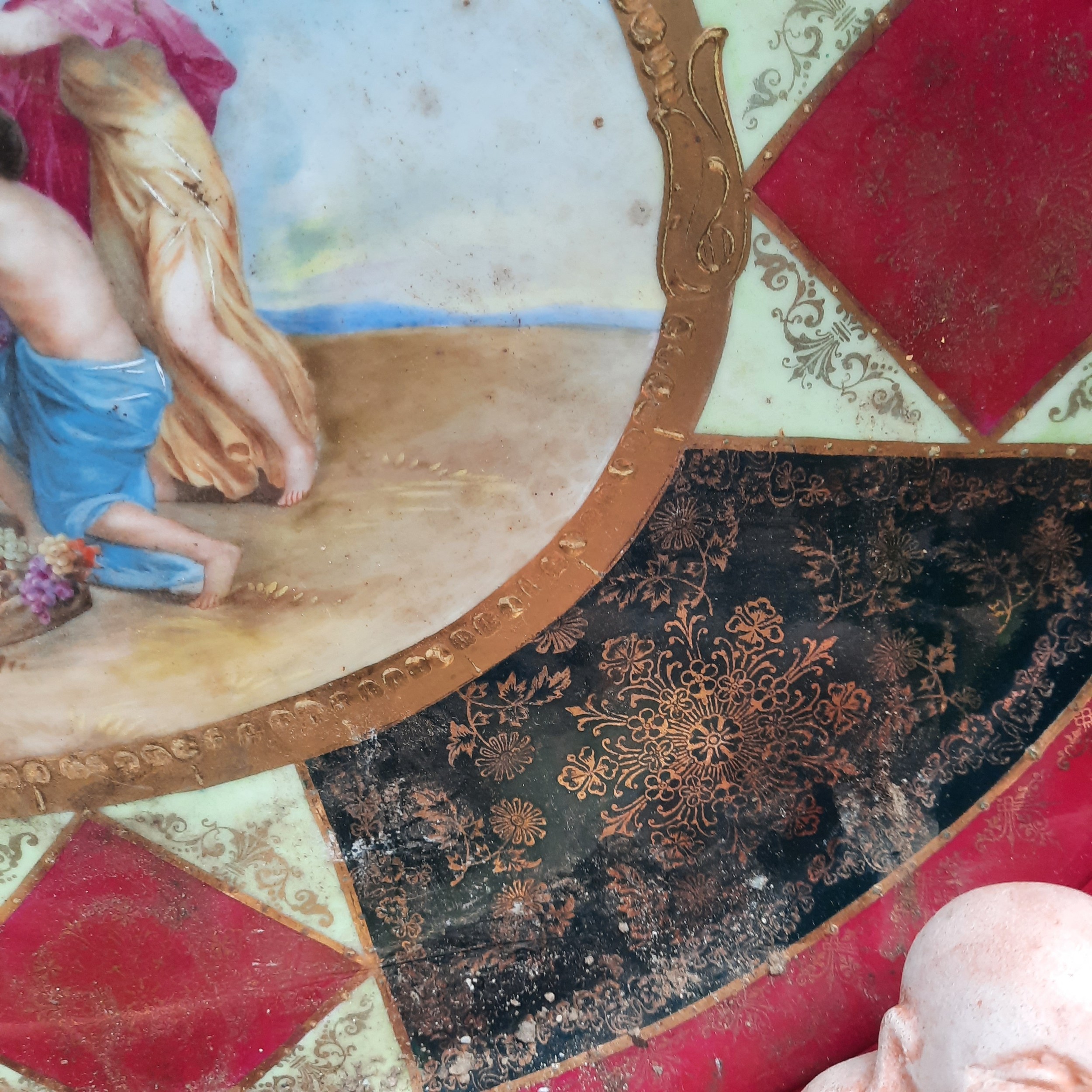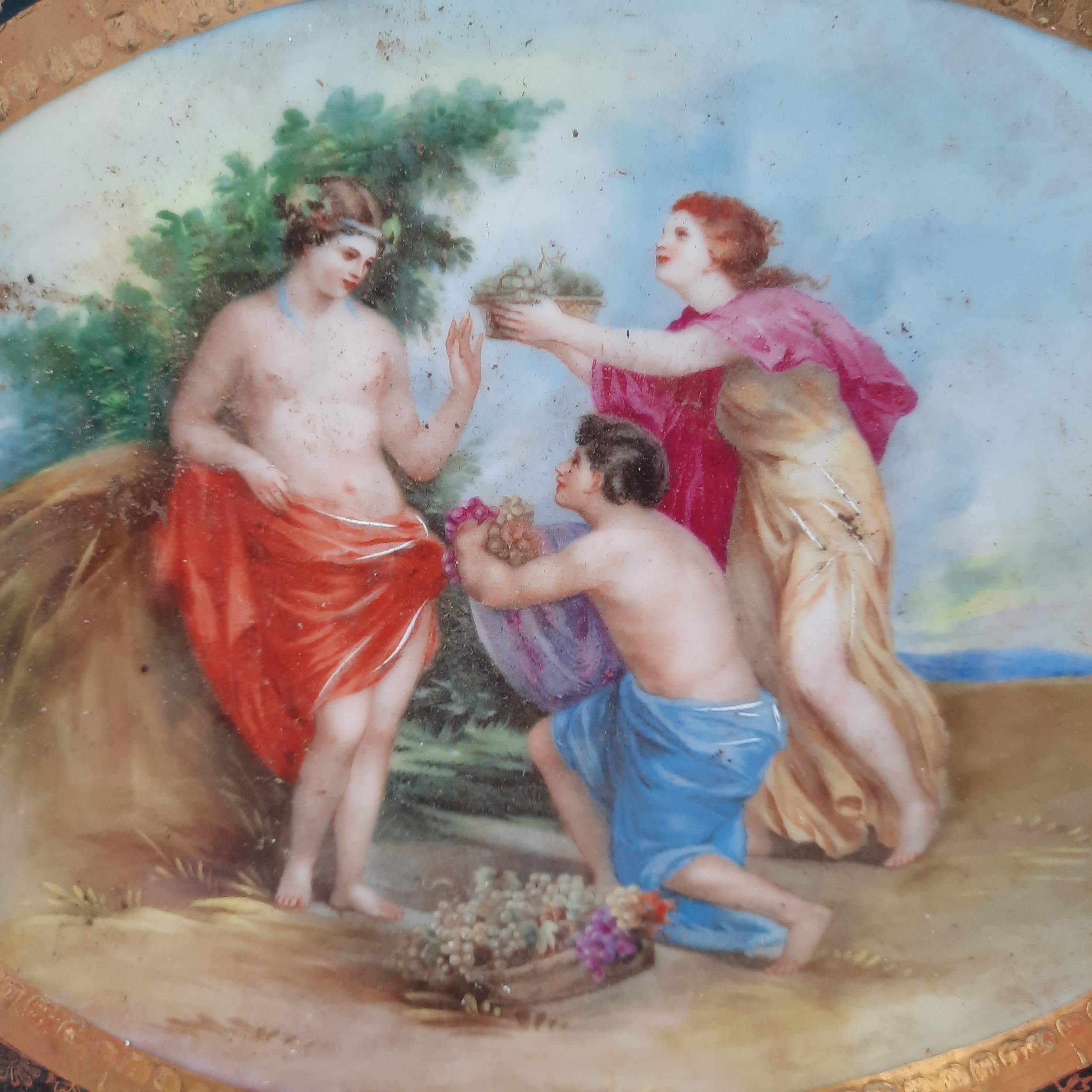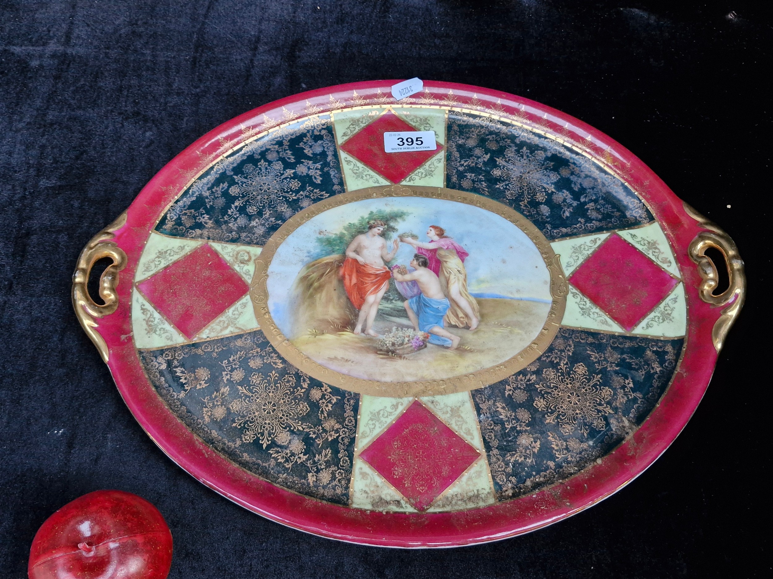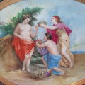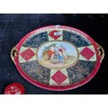 A large Royal Vienna glazed porcelain serving tray / platter featuring hand painted mythological scenes in the style of Angelica Kauffman. In excellent condition with makers mark to reverse.