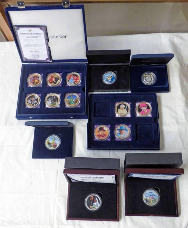SELECTION OF 21 NUMISPROOF COMMEMORATIVE PROOF MEDALLIONS TO INCLUDE AVRO VULCAN, 2012 ELIZABETH LOWER, 35TH ANNIVERSARY THE FALKLANDS WAR, YEAR IN THE LIFE OF QEII 12-MEDAL SET, ETC ALL IN CASES OF ISSUE WITH C.O.A
