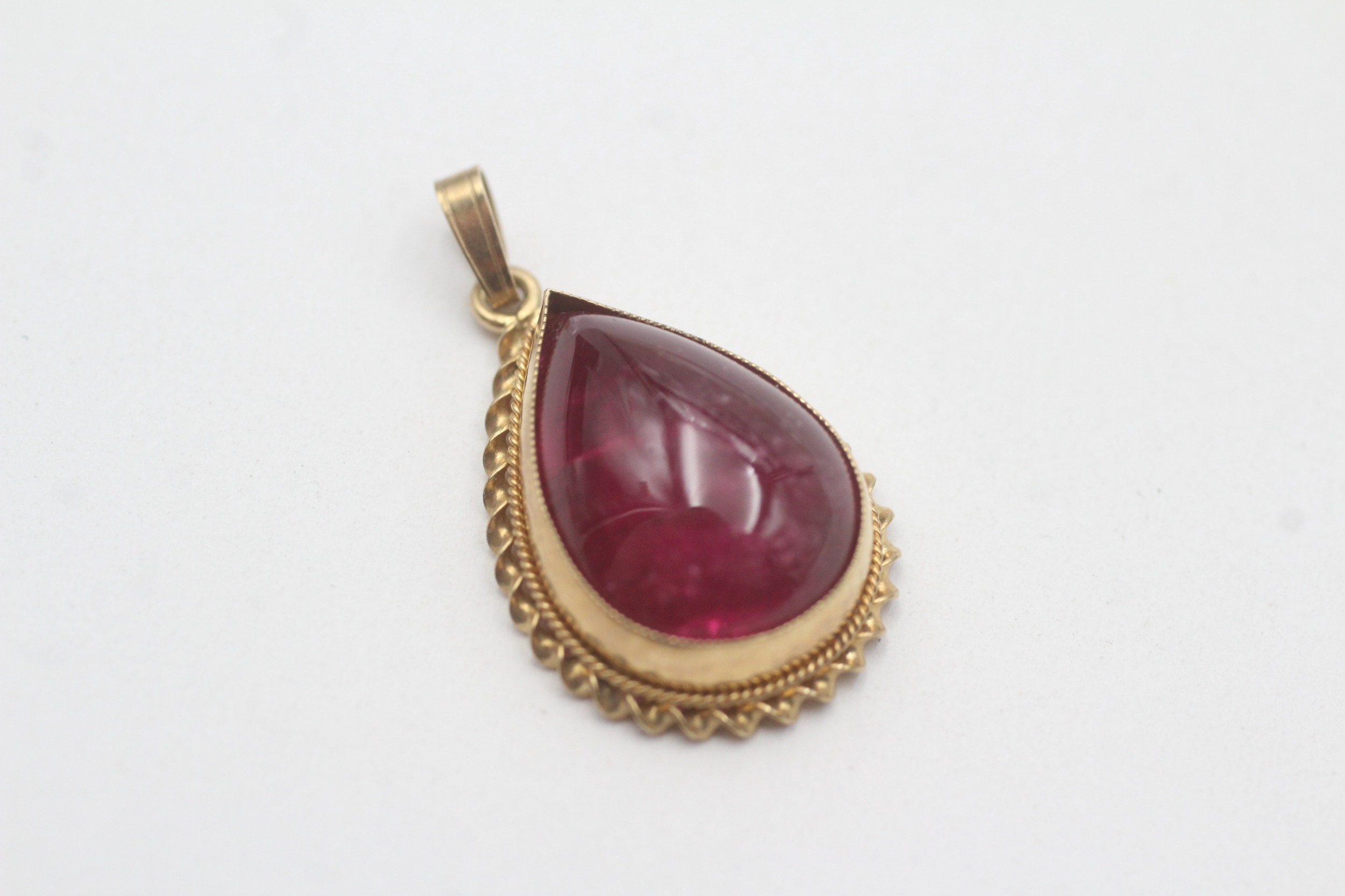 9ct gold vintage cabochon cut ruby pendant (3g)
