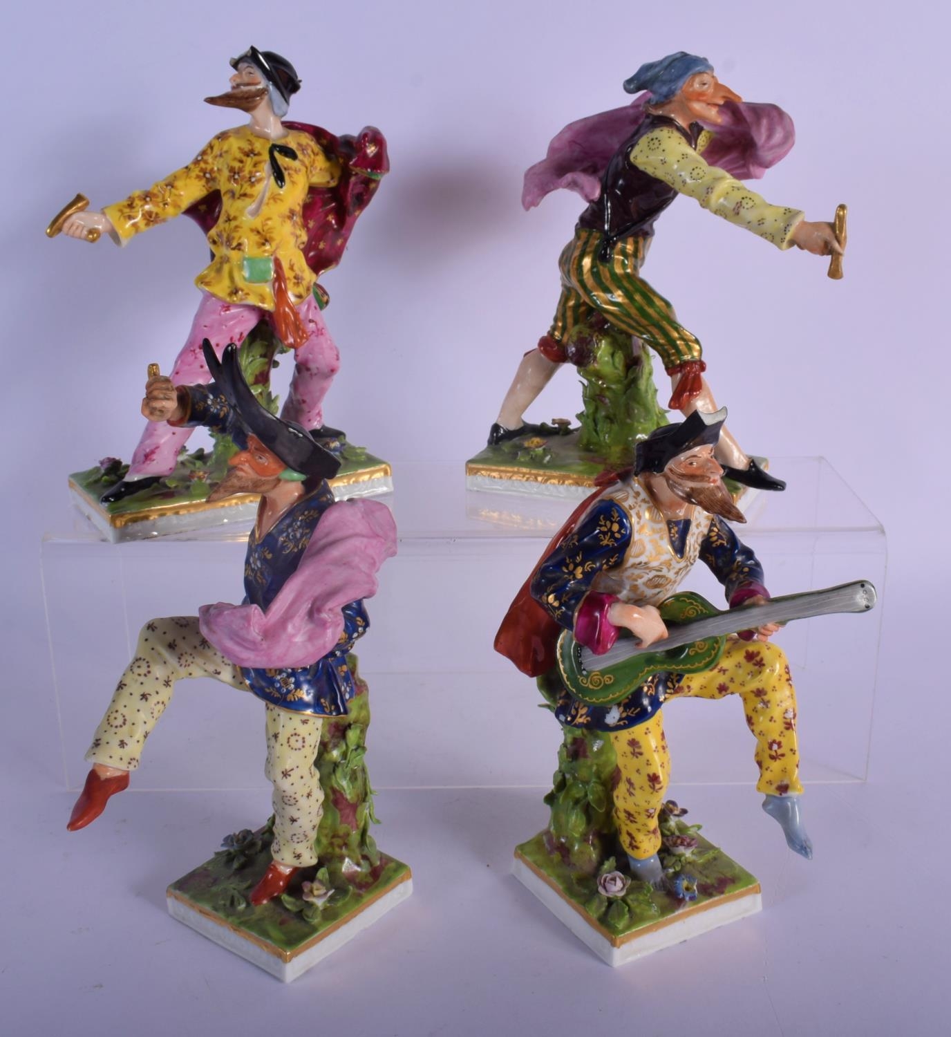 A SET OF FOUR 19TH CENTURY FRENCH SAMSONS OF PARIS PORCELAIN FIGURES Chelsea/Derby style. Largest 20 cm high. (4)