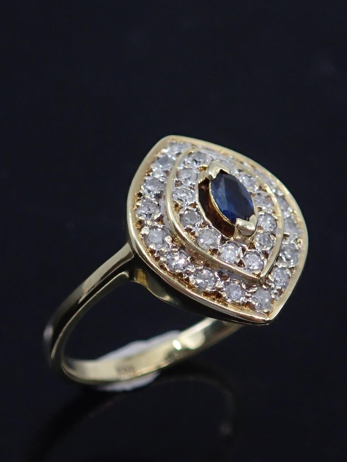 A 14ct gold sapphire and diamond cluster ring, finger size O