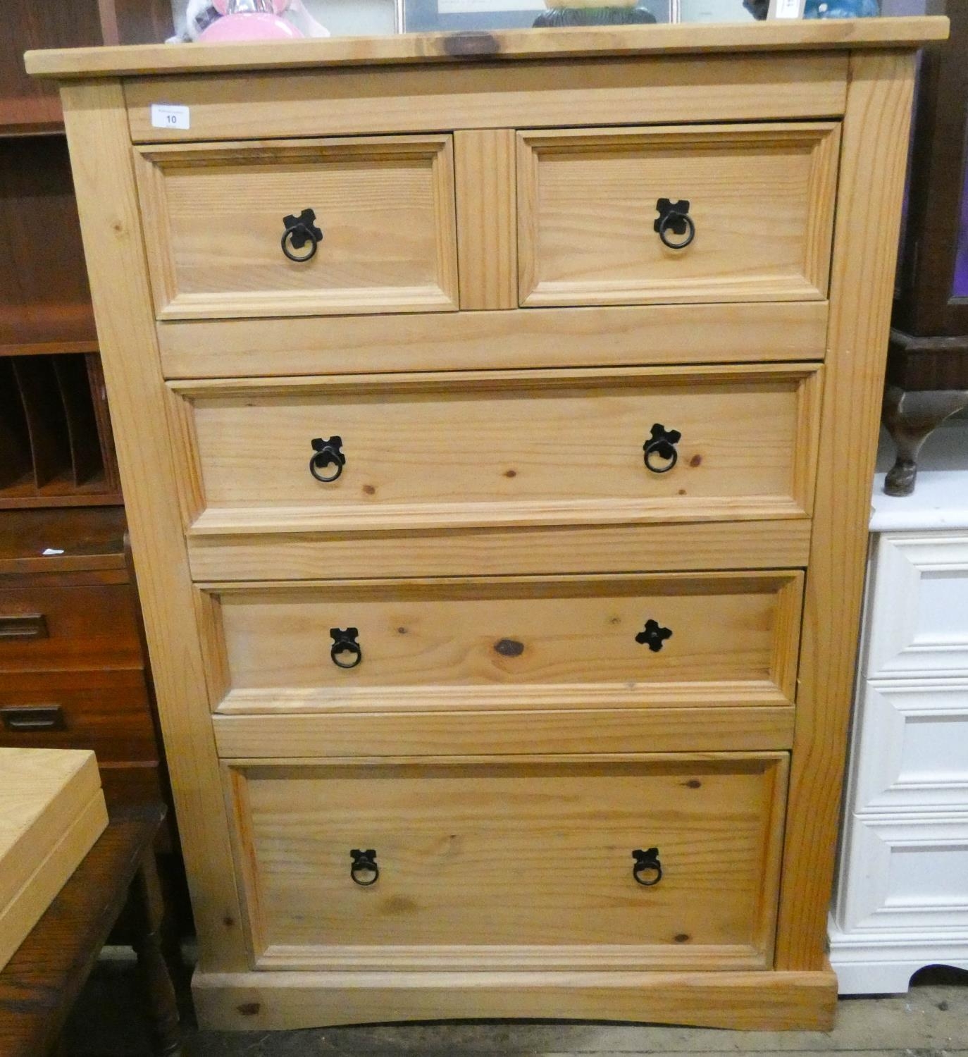 A large Mexican pine chest of two short and three long drawers