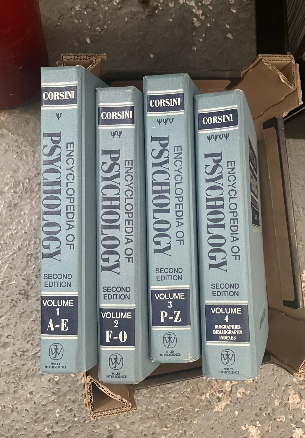 Box containing Corsini Vol 1-4 Psychology books