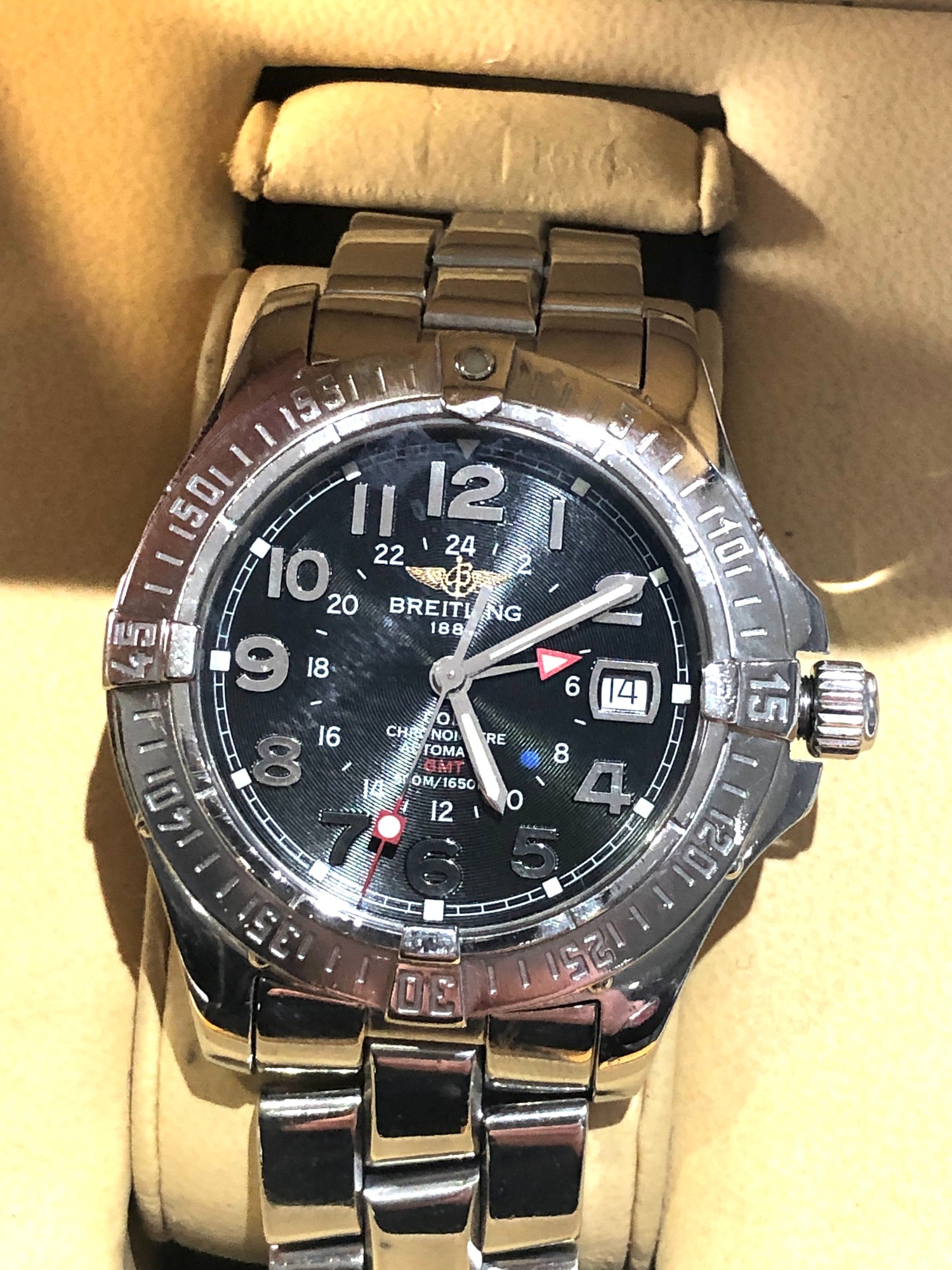 Boxed Breitling 1884 colt automatic chronometre automatic GMT 500m/1650ft gents wristwatch box and papers