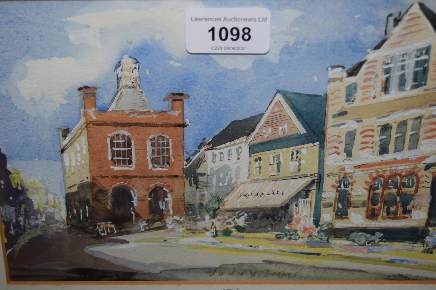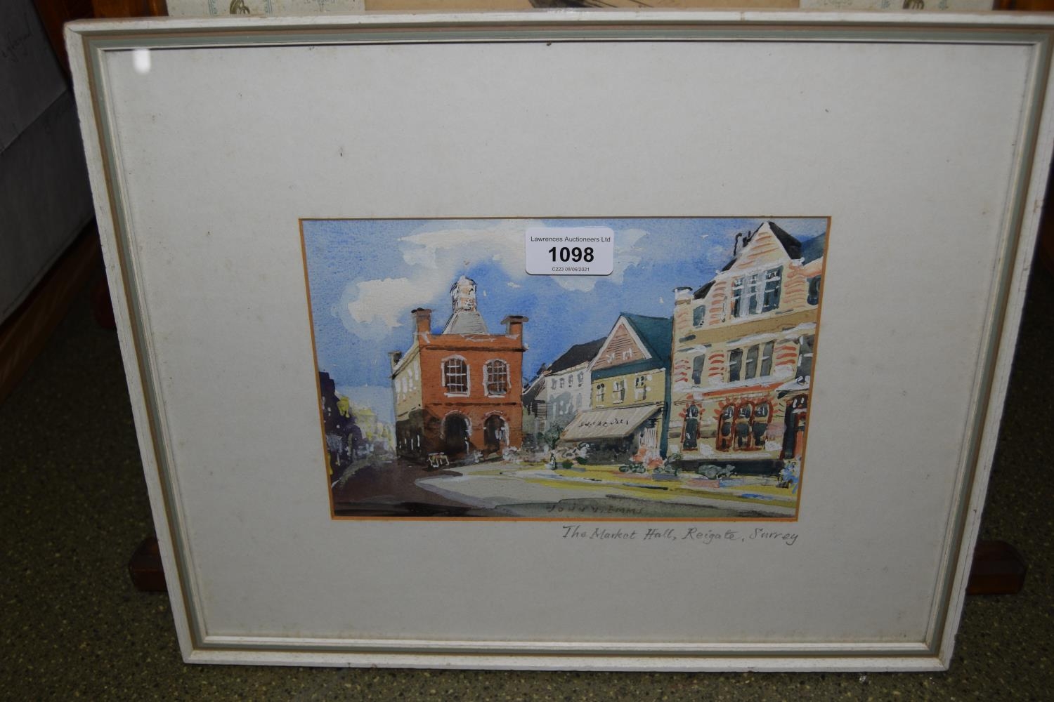 John.V. Emms, signed gouache painting, 'The Market Hall, Reigate' 6ins x 9ins