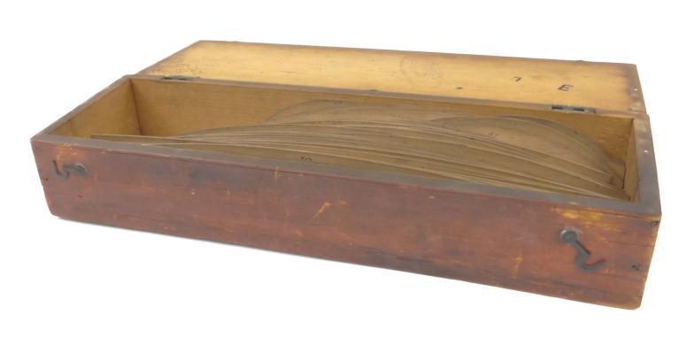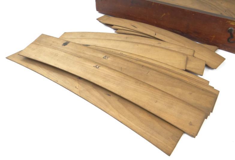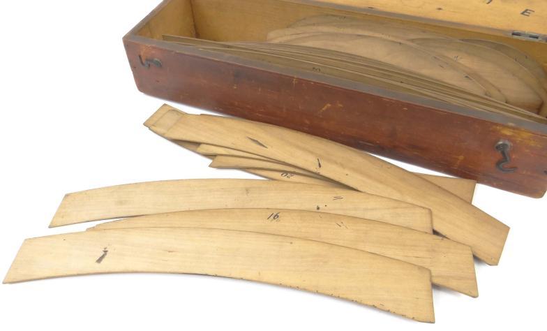 Victorian pine case of curved templates, probably collar measures