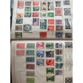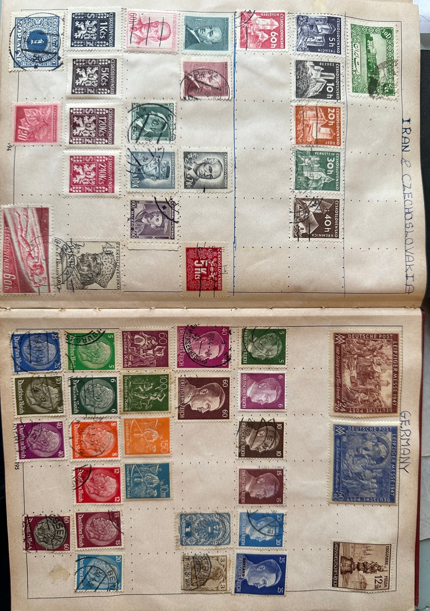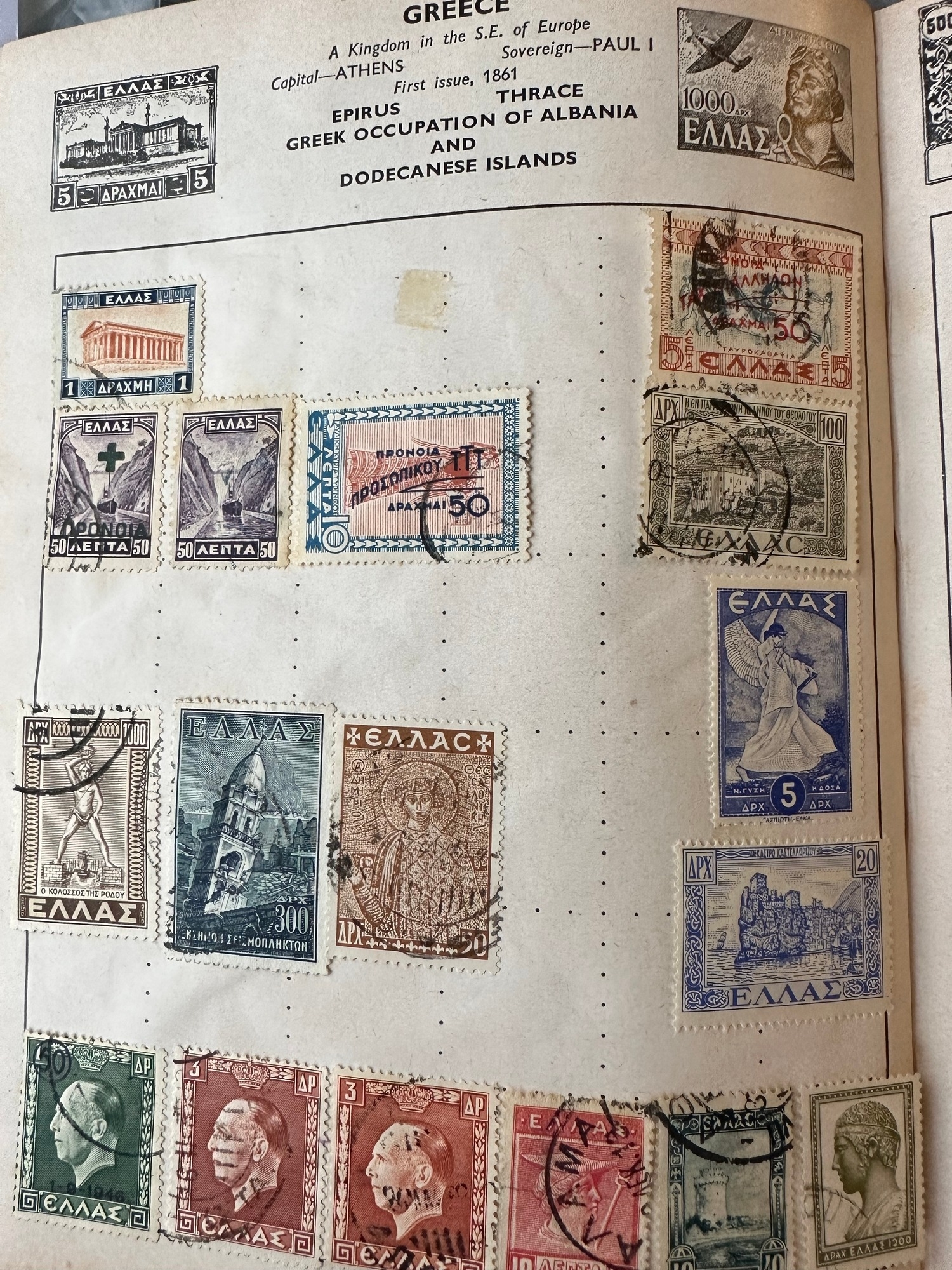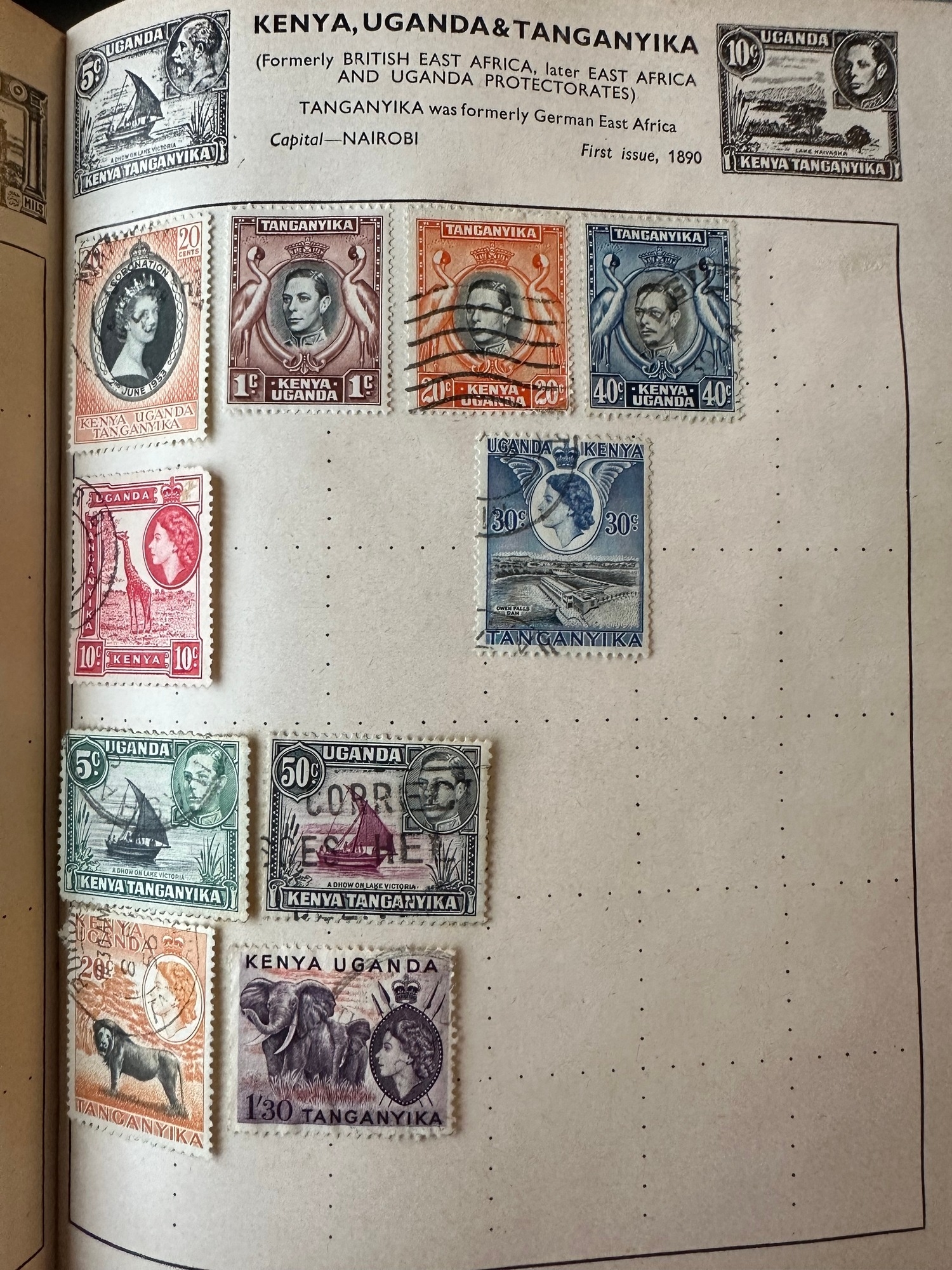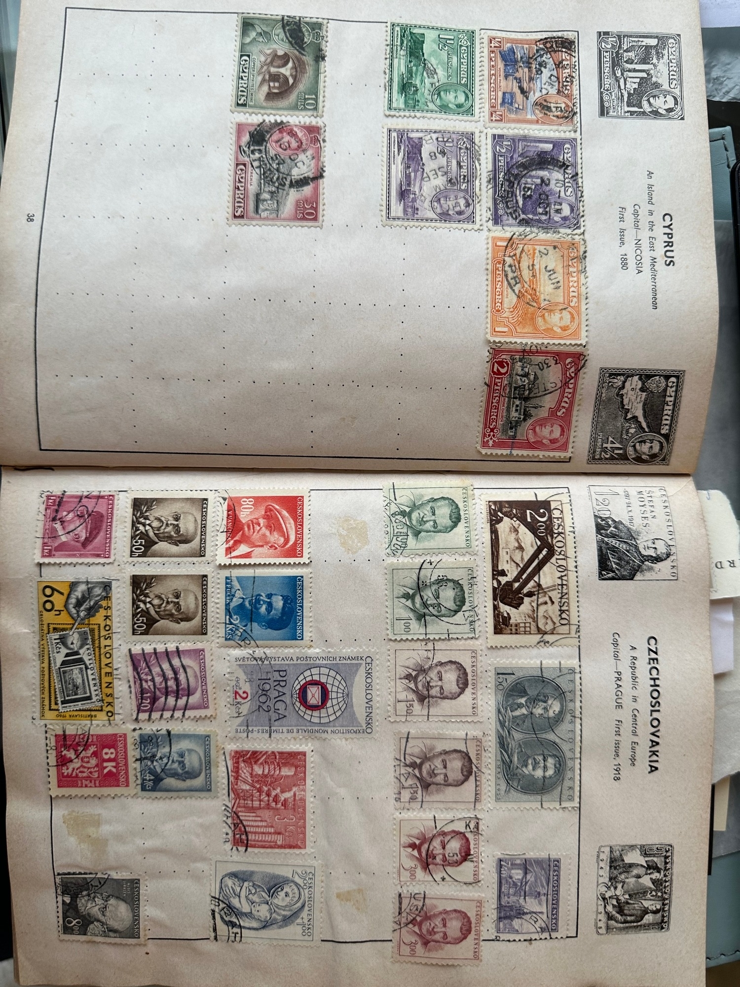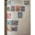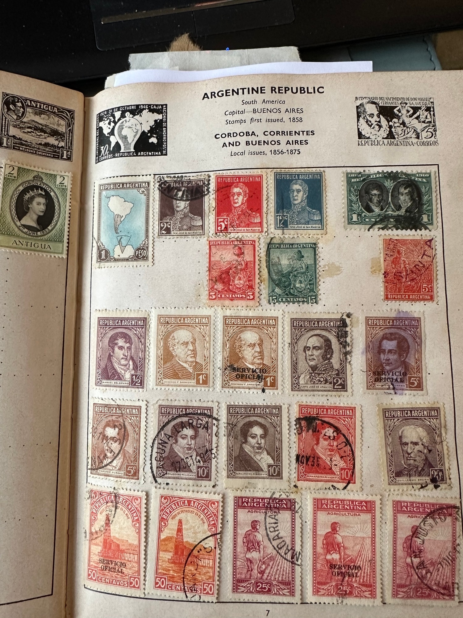 IMPROVED vintage stamp album by Stanley Gibbons with colour world maps, GB (QV onwards), commonwealth and worldwide inc. USA. many hundreds of stamps. mainly used a few mint