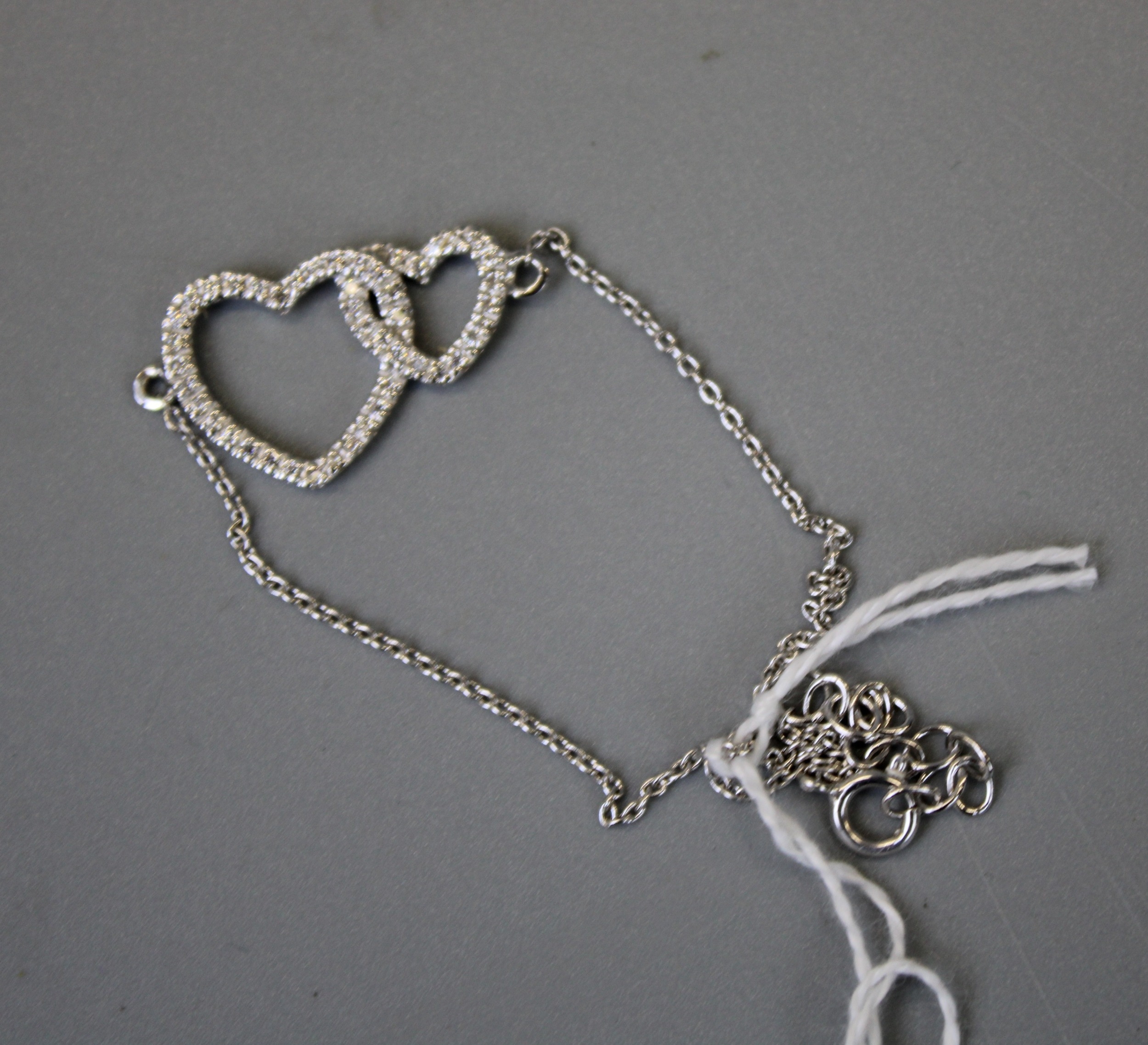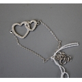 Silver Double Heart Stone Set Bracelet