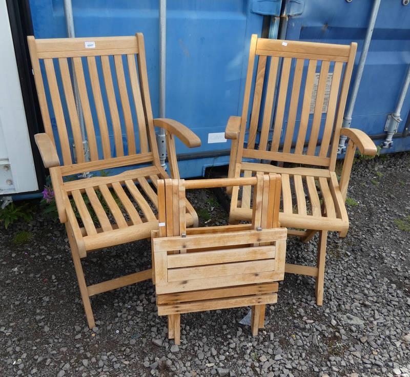 PAIR OF HARDWOOD FOLDING GARDEN ARMCHAIRS & TABLE