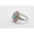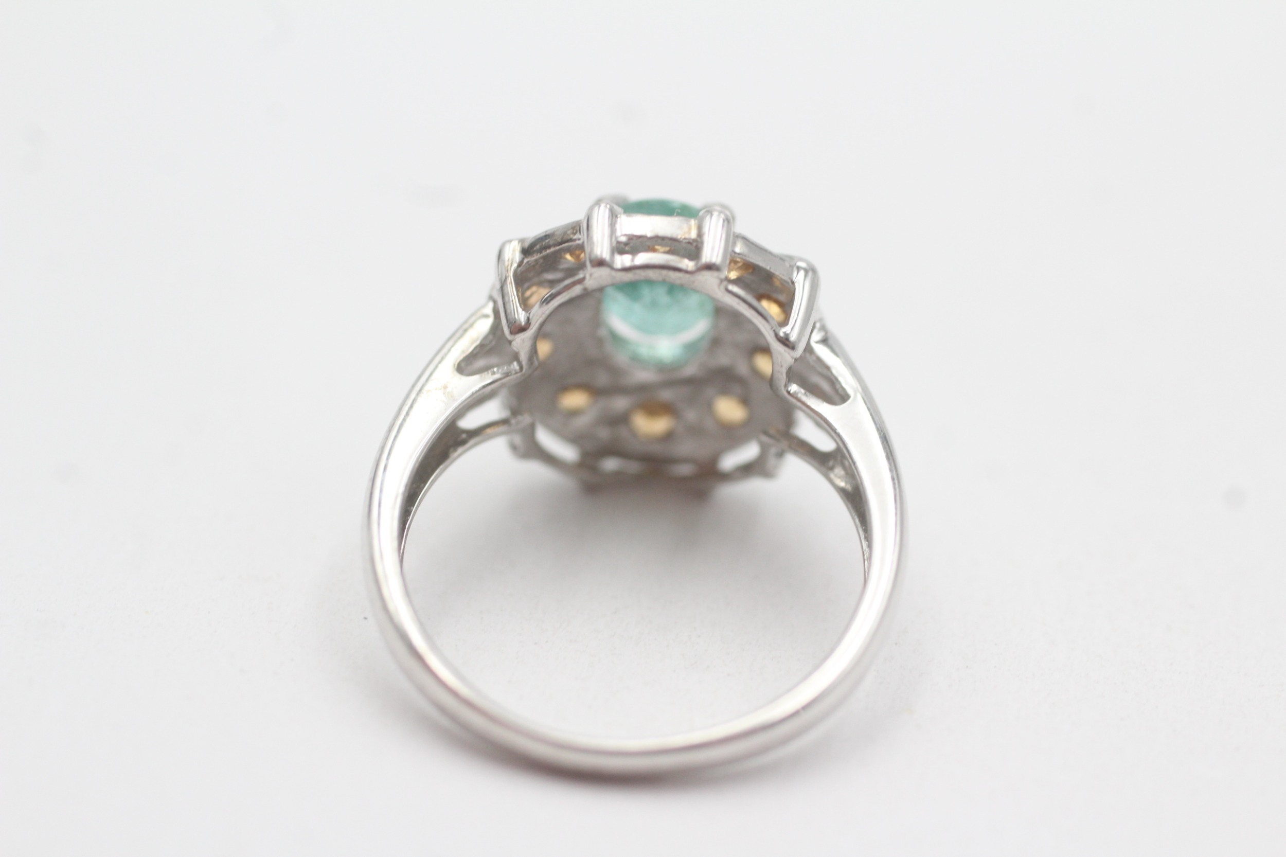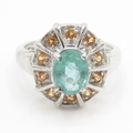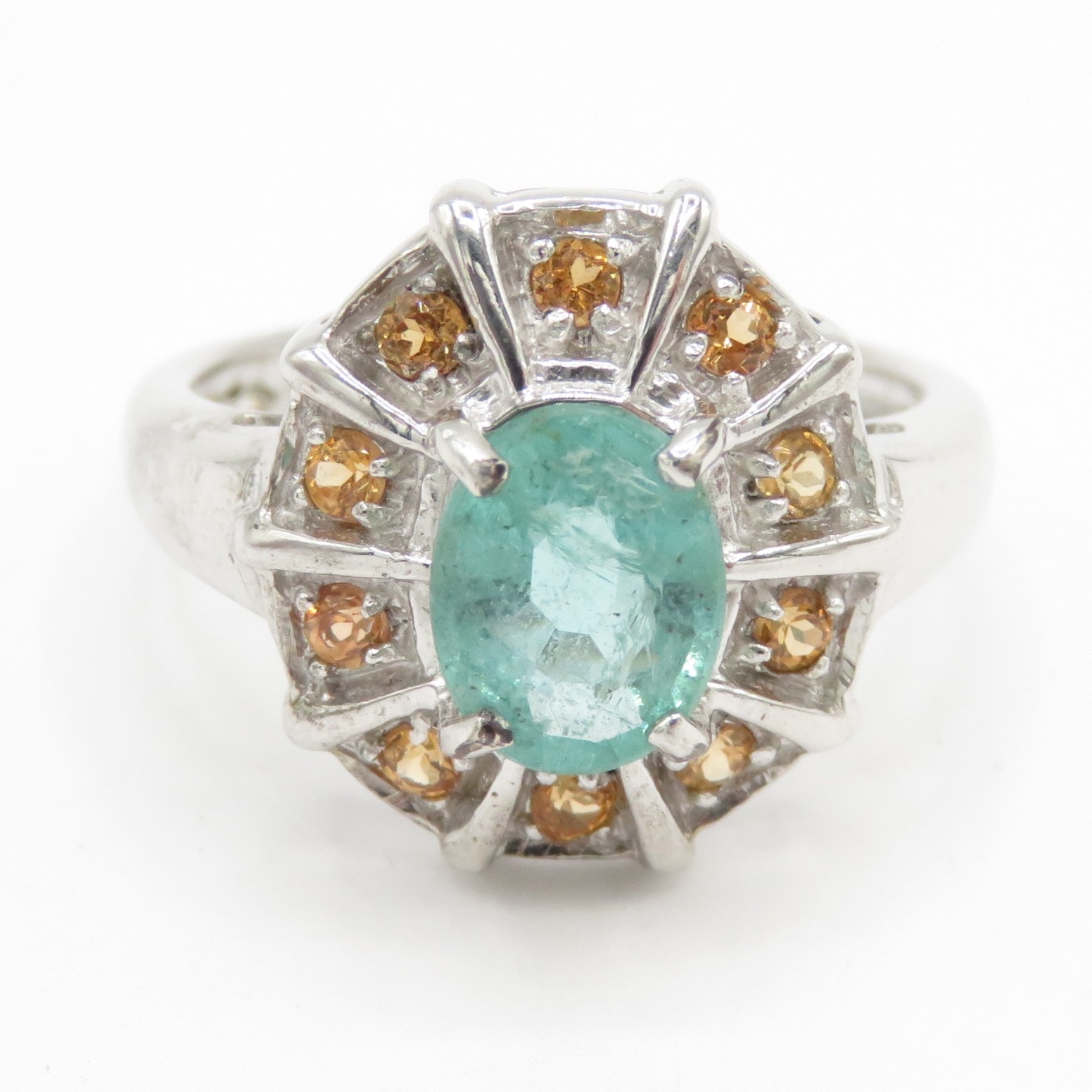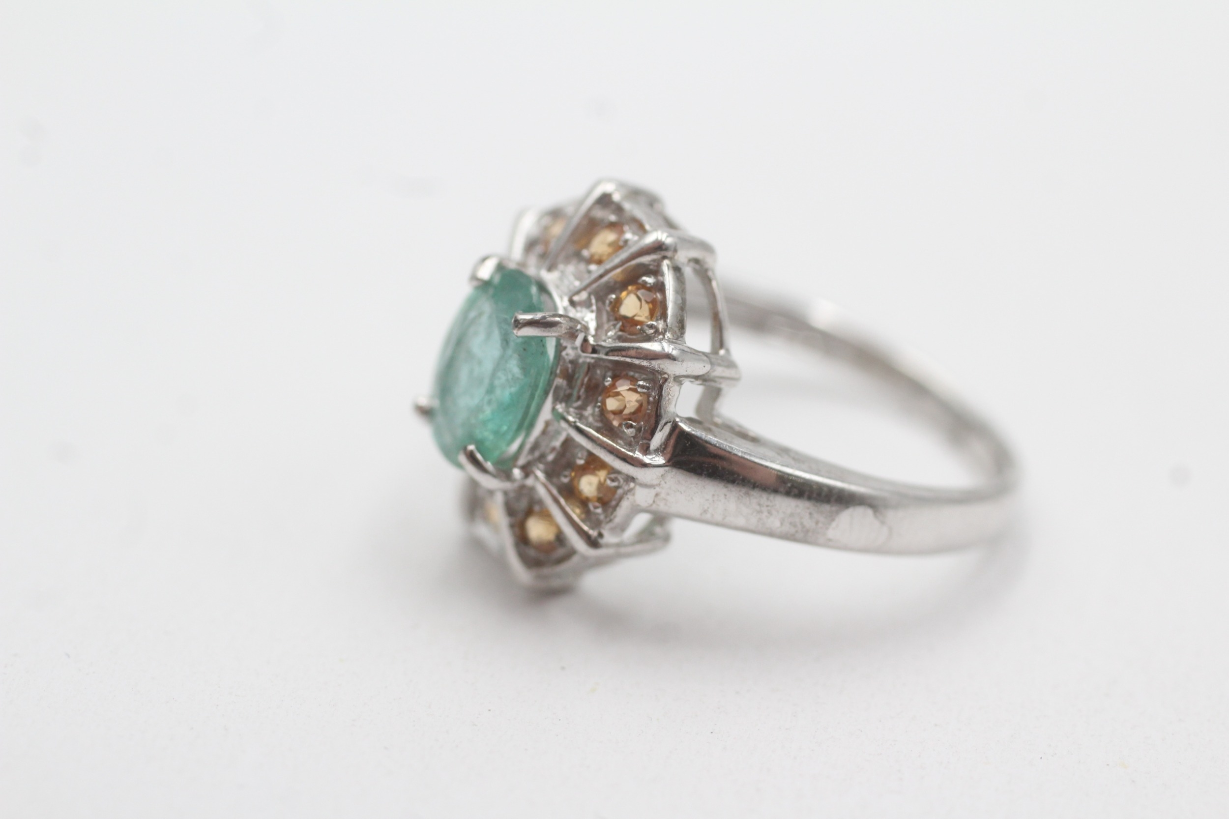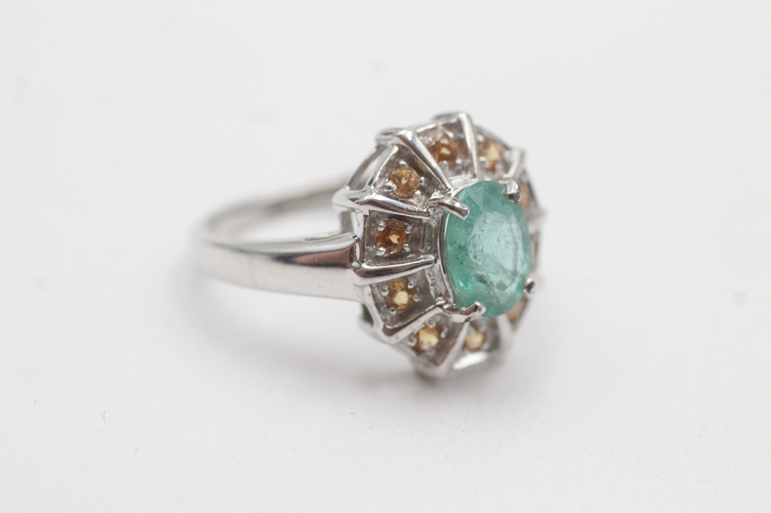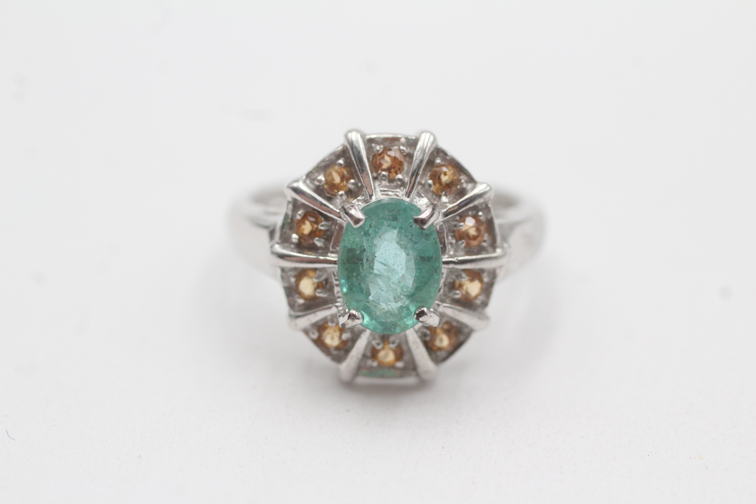 9ct white gold emerald citrine cluster ring (3.8g) Size N 1/2