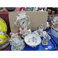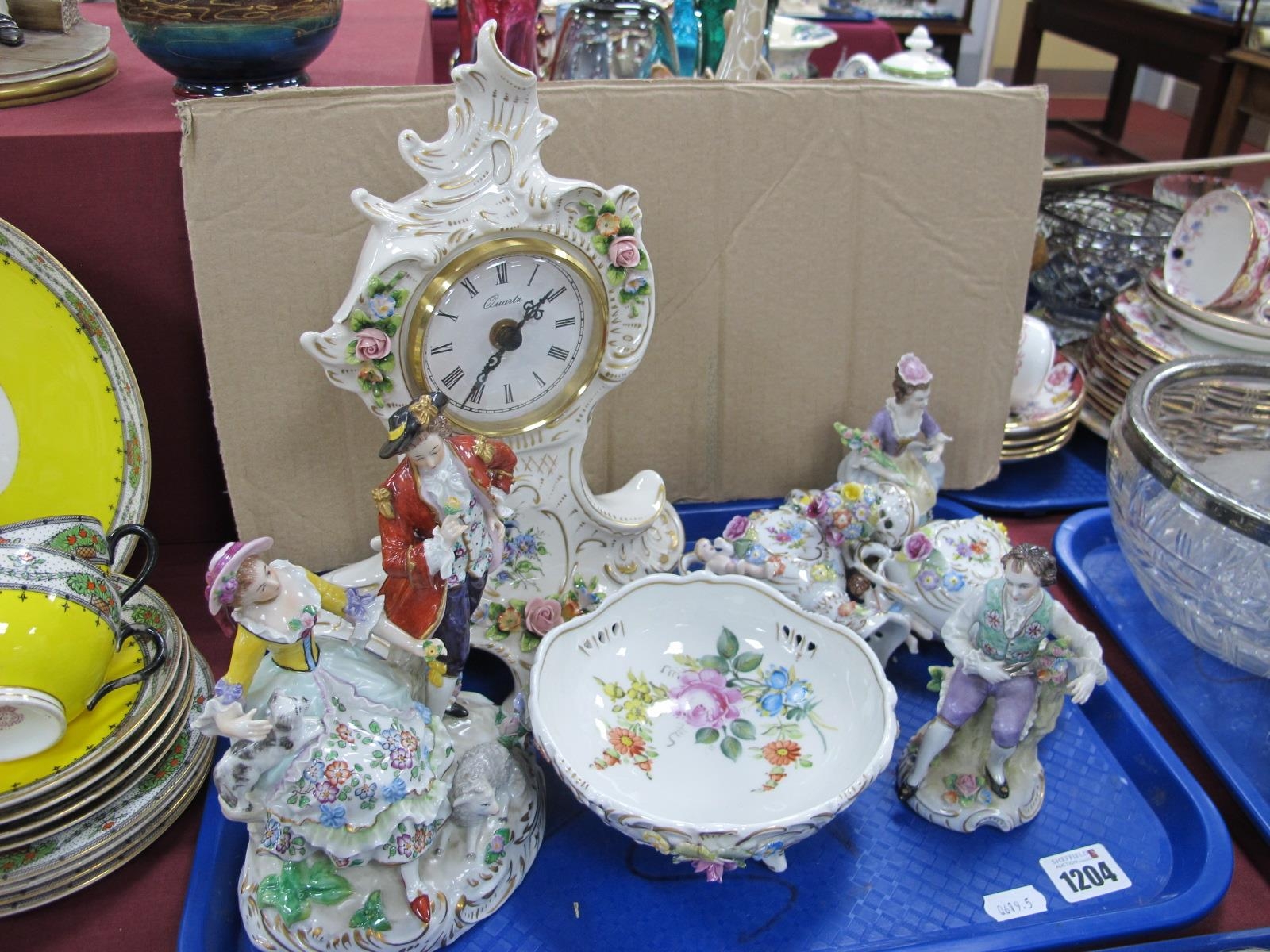 A Pair of Continental Figures, Sitzendorf figures, other continental pottery etc:- One Tray.