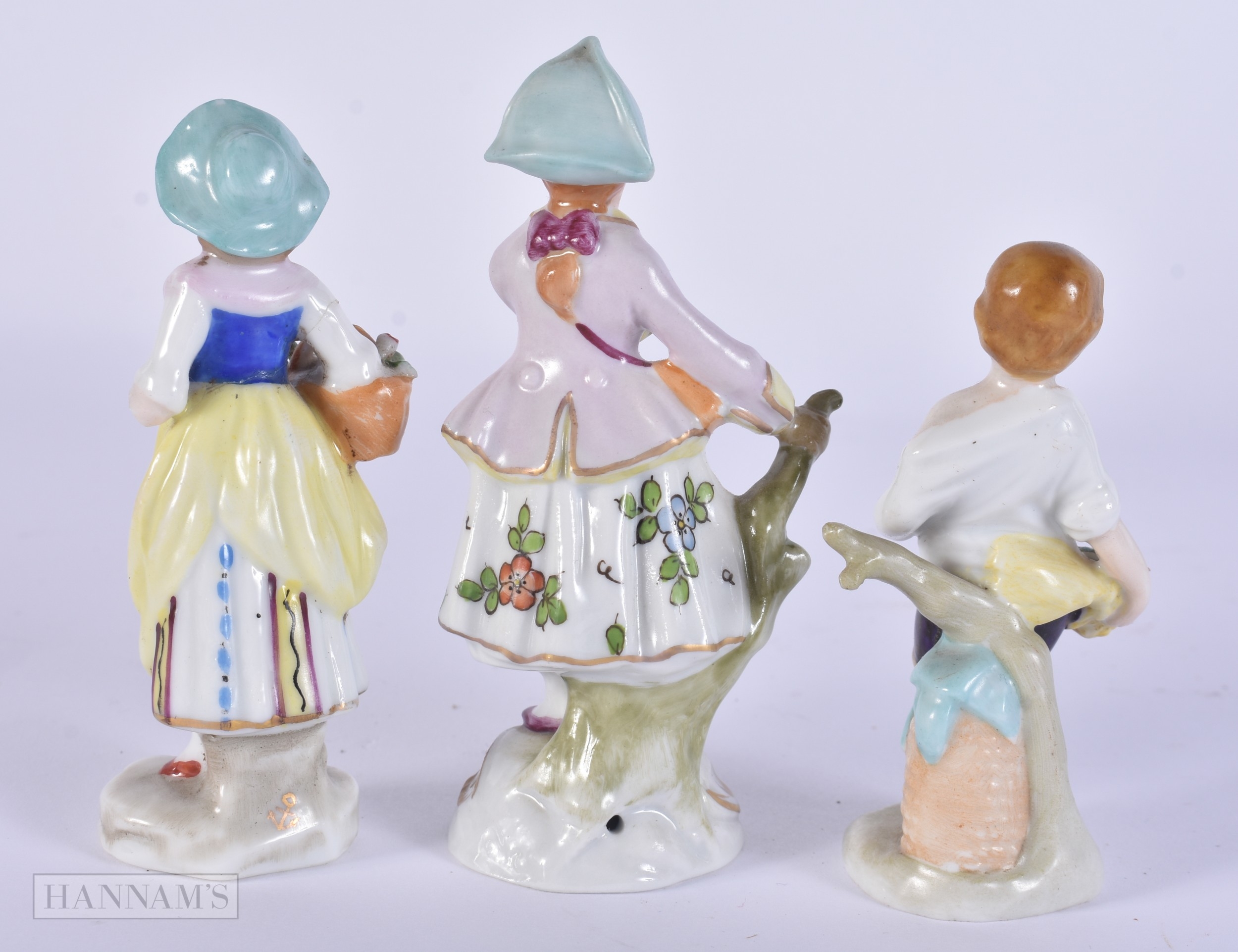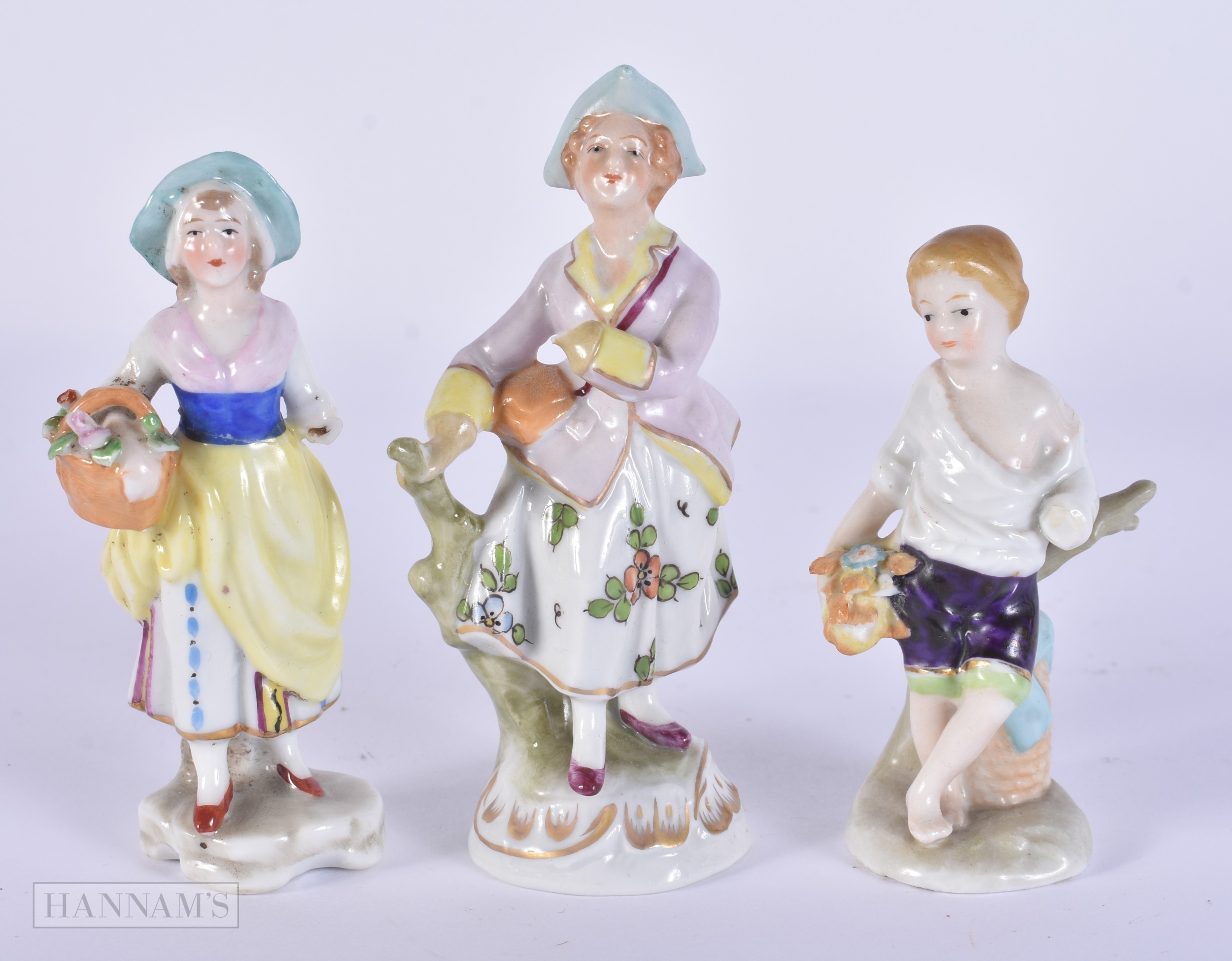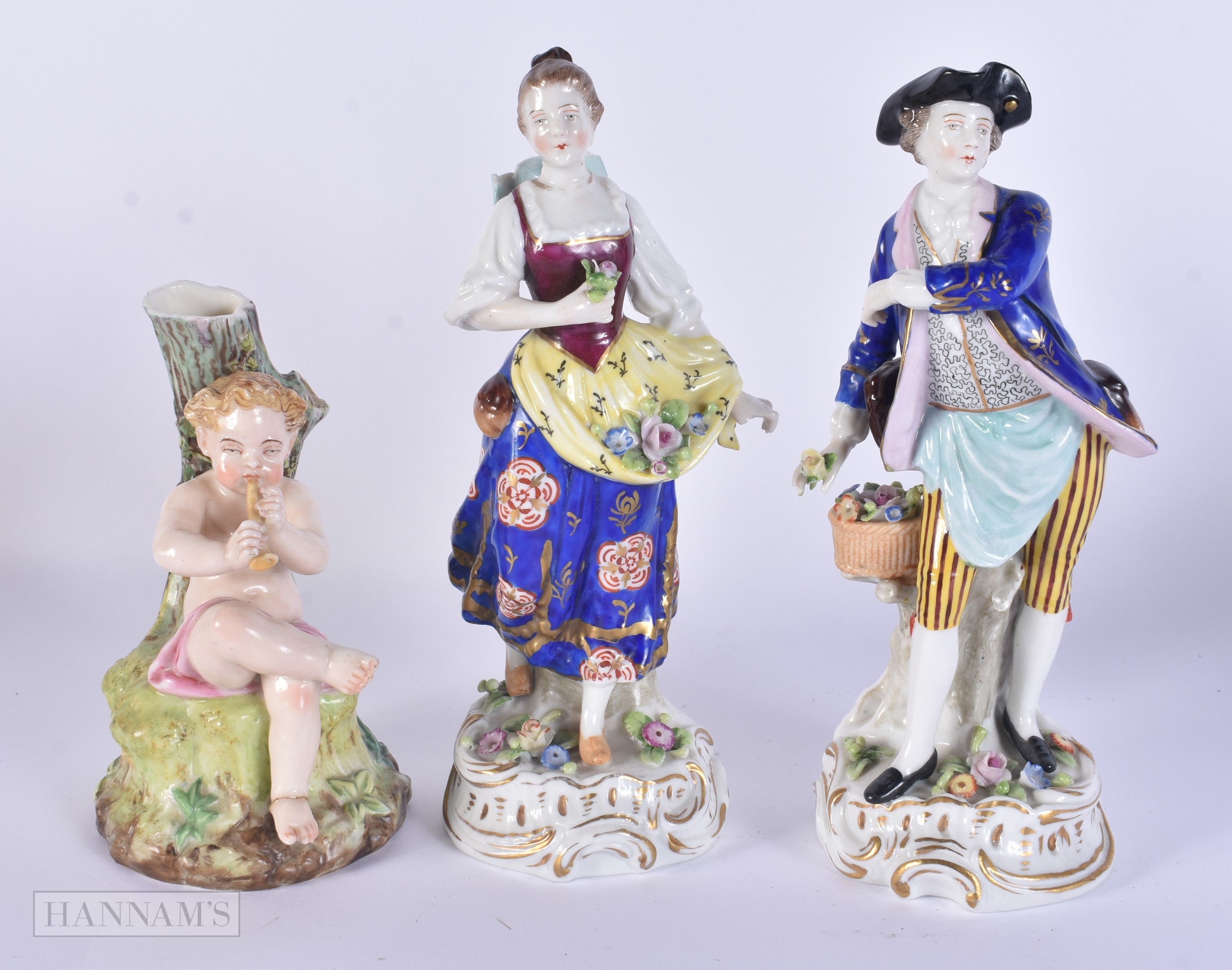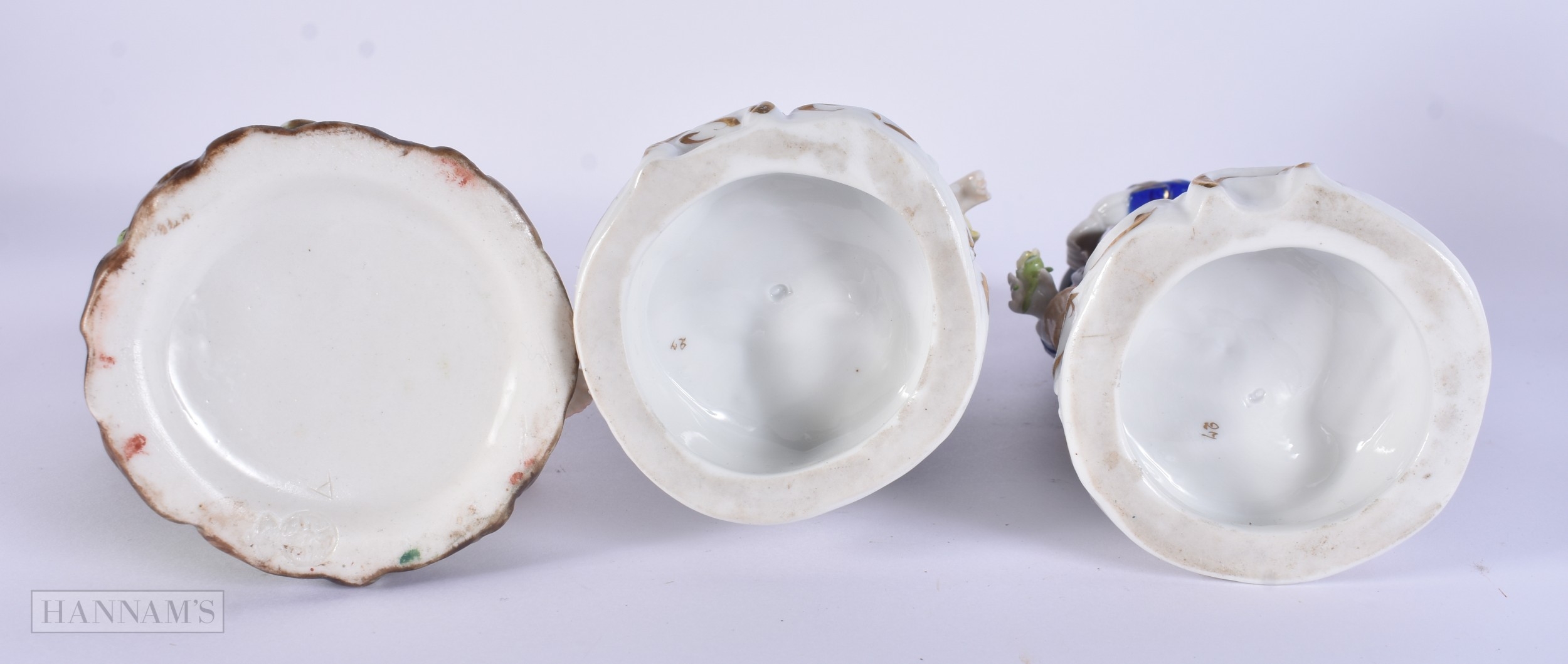 A PAIR OF DRESDEN PLATES together with Continental figures etc. (qty)