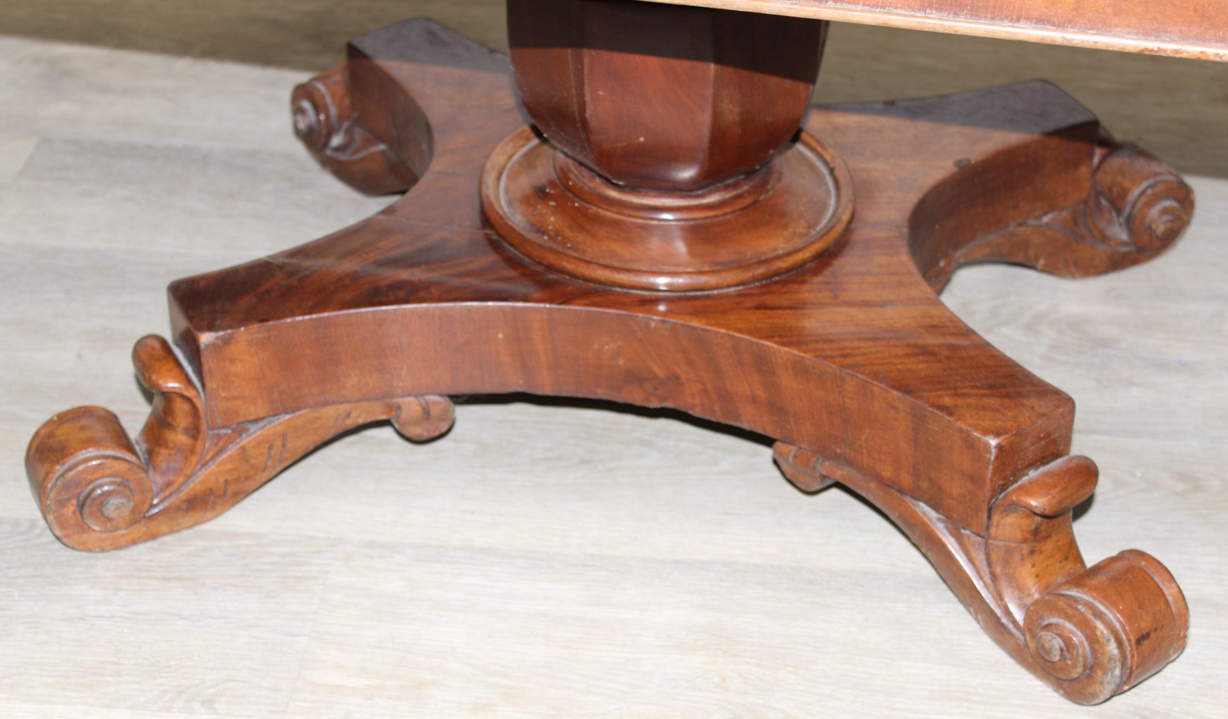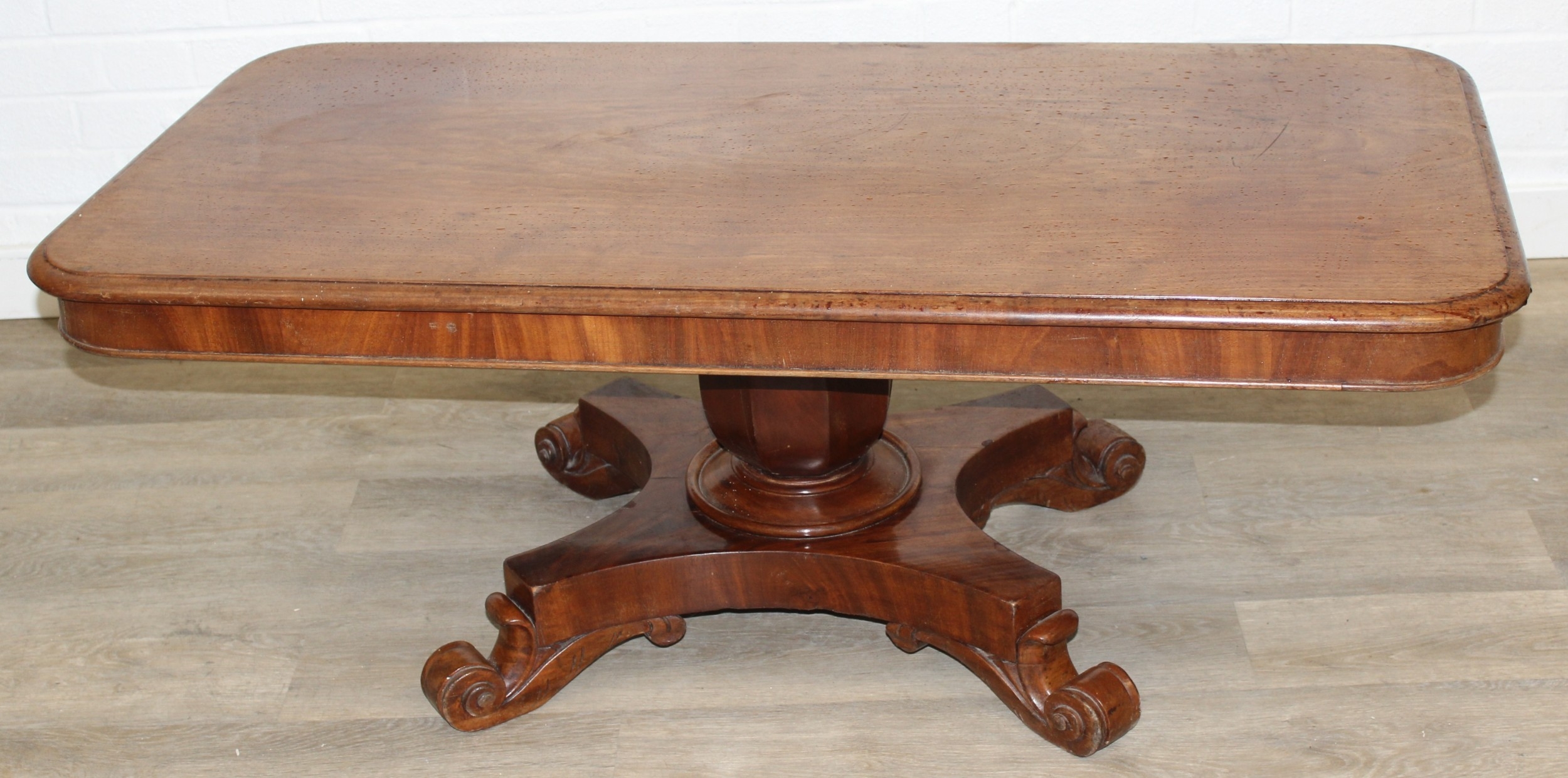 A 19th century mahogany low table with decorative pedestal base, 127cm x 66cm x 49cm