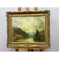 Fishing Boat in a Cove, oil on canvas, signed lower left,