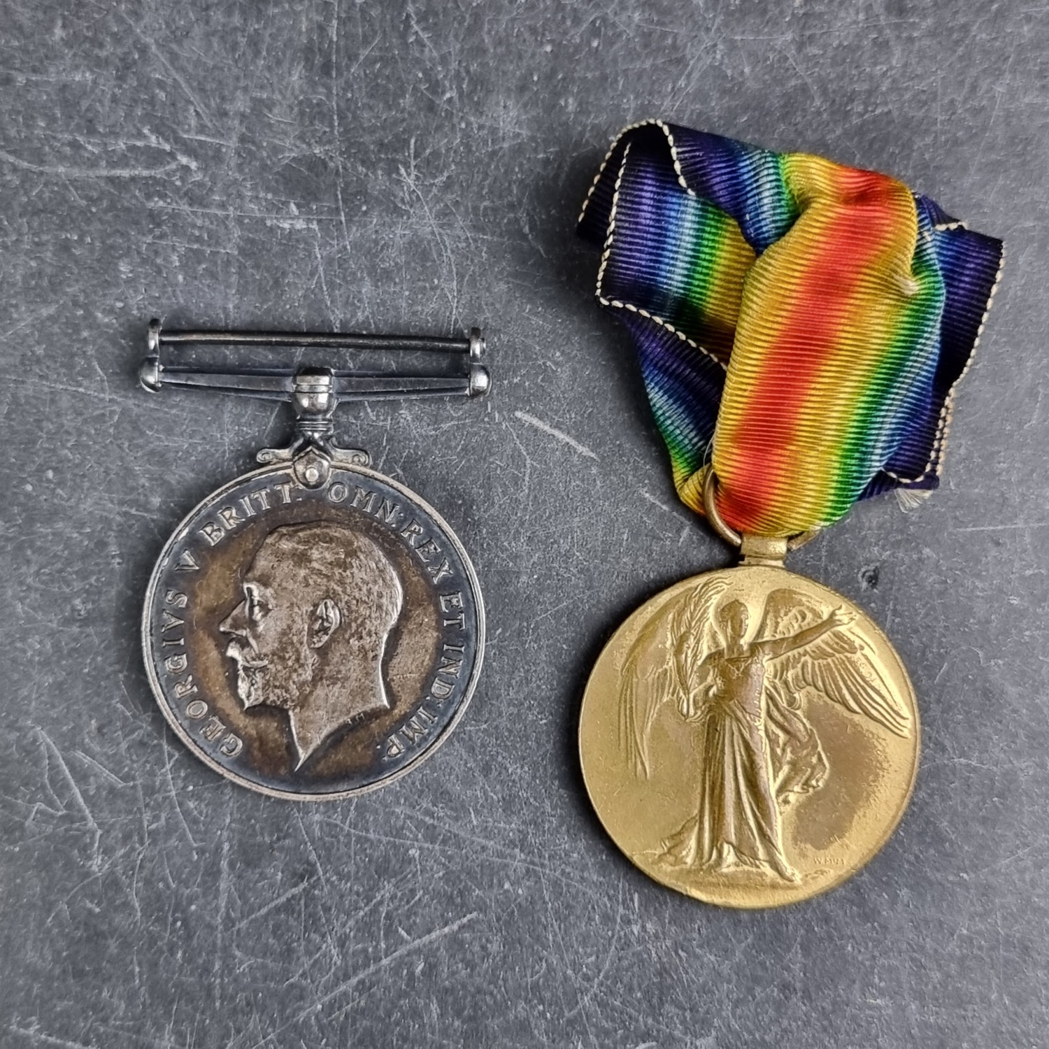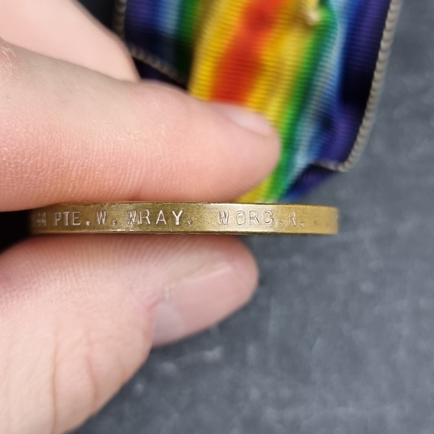 Medals: a WWI pair, to 203144 Pte W Wray, Worcestershire Regt.
