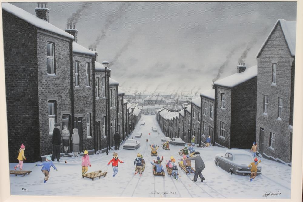 LEIGH LAMBERT (b.1979) Hold onto Your Hats, limited edition numbered 43/95, signed lower right, giclee on canvas, 19 3/4" x 27", modern black frame (subject to Artists Resale Right) (Est. plus 24% premium inc. VAT)