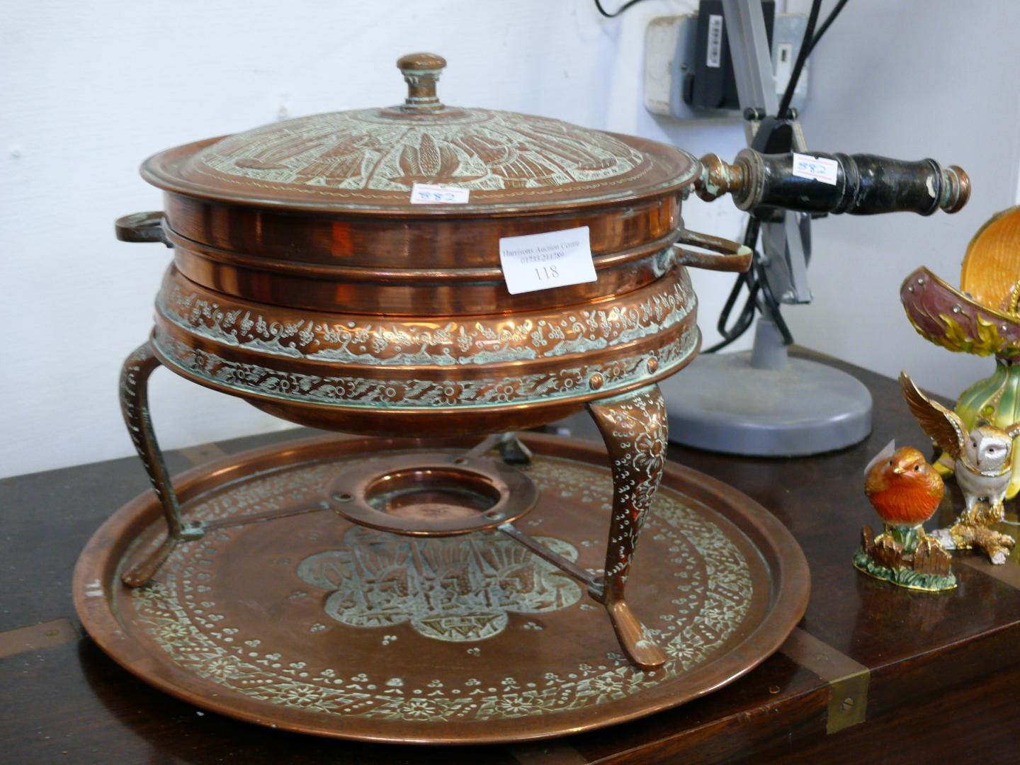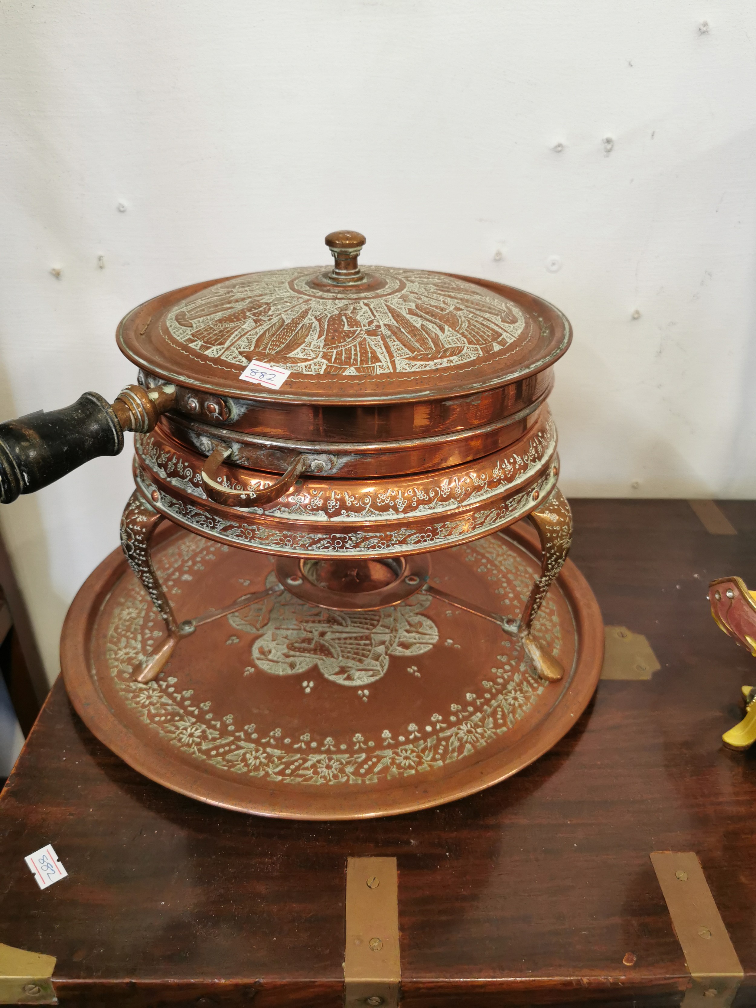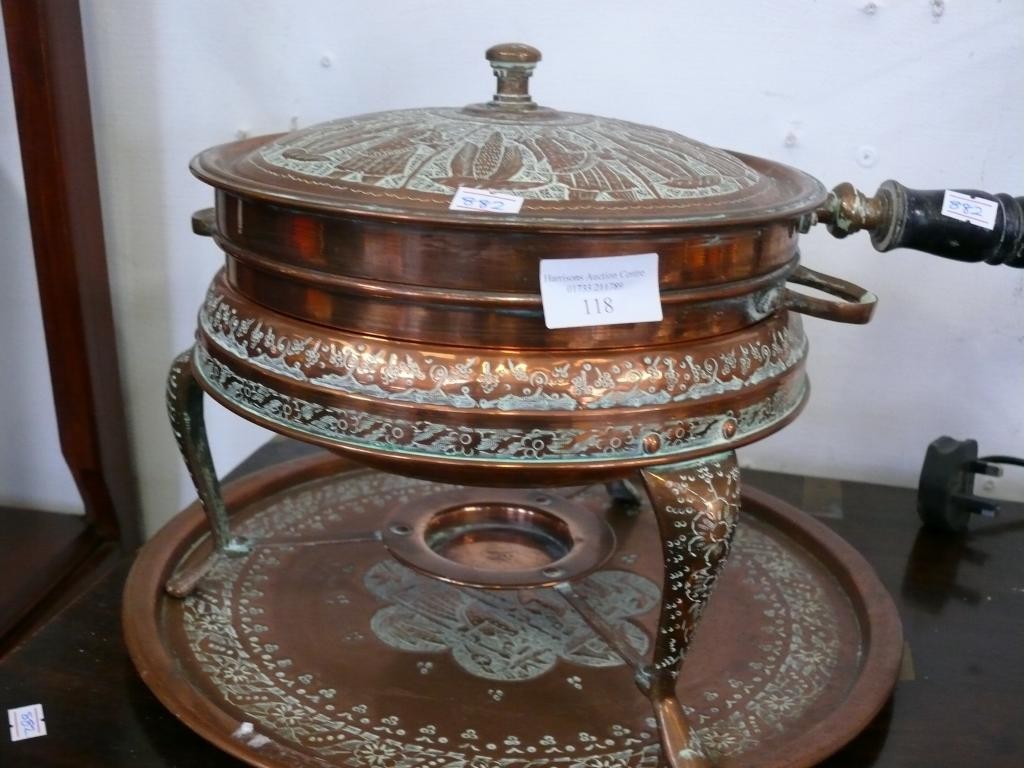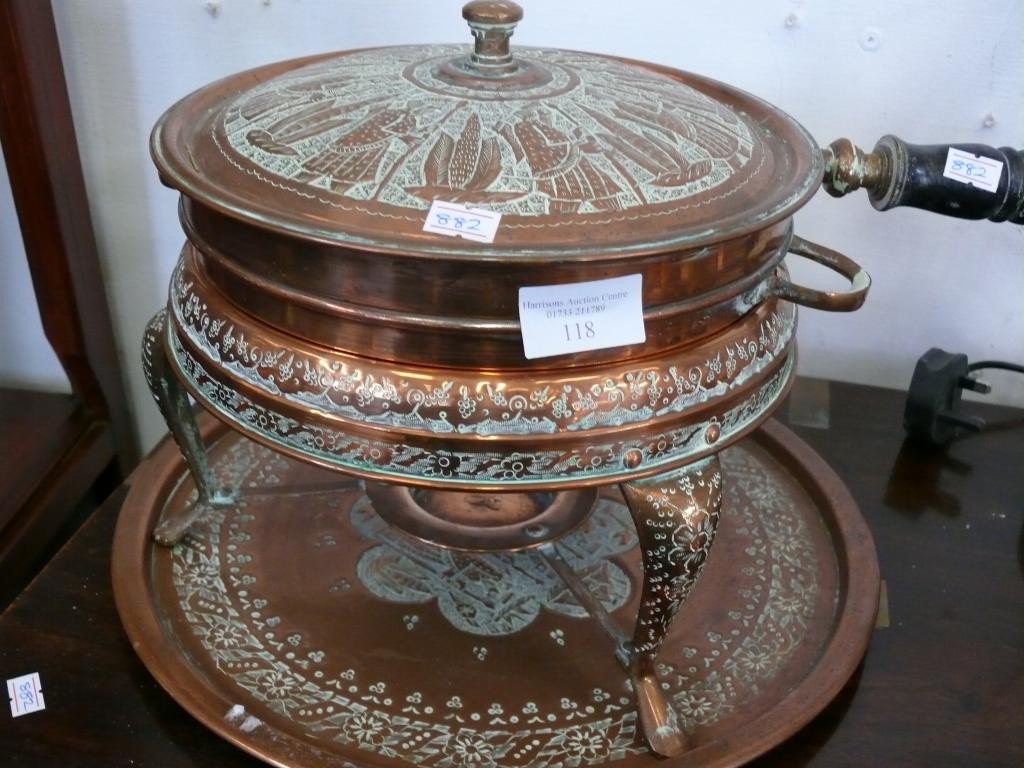 MID CENTURY MIDDLE EASTERN COPPER FOOD WARMER AND PAN