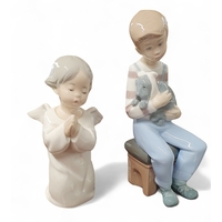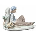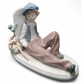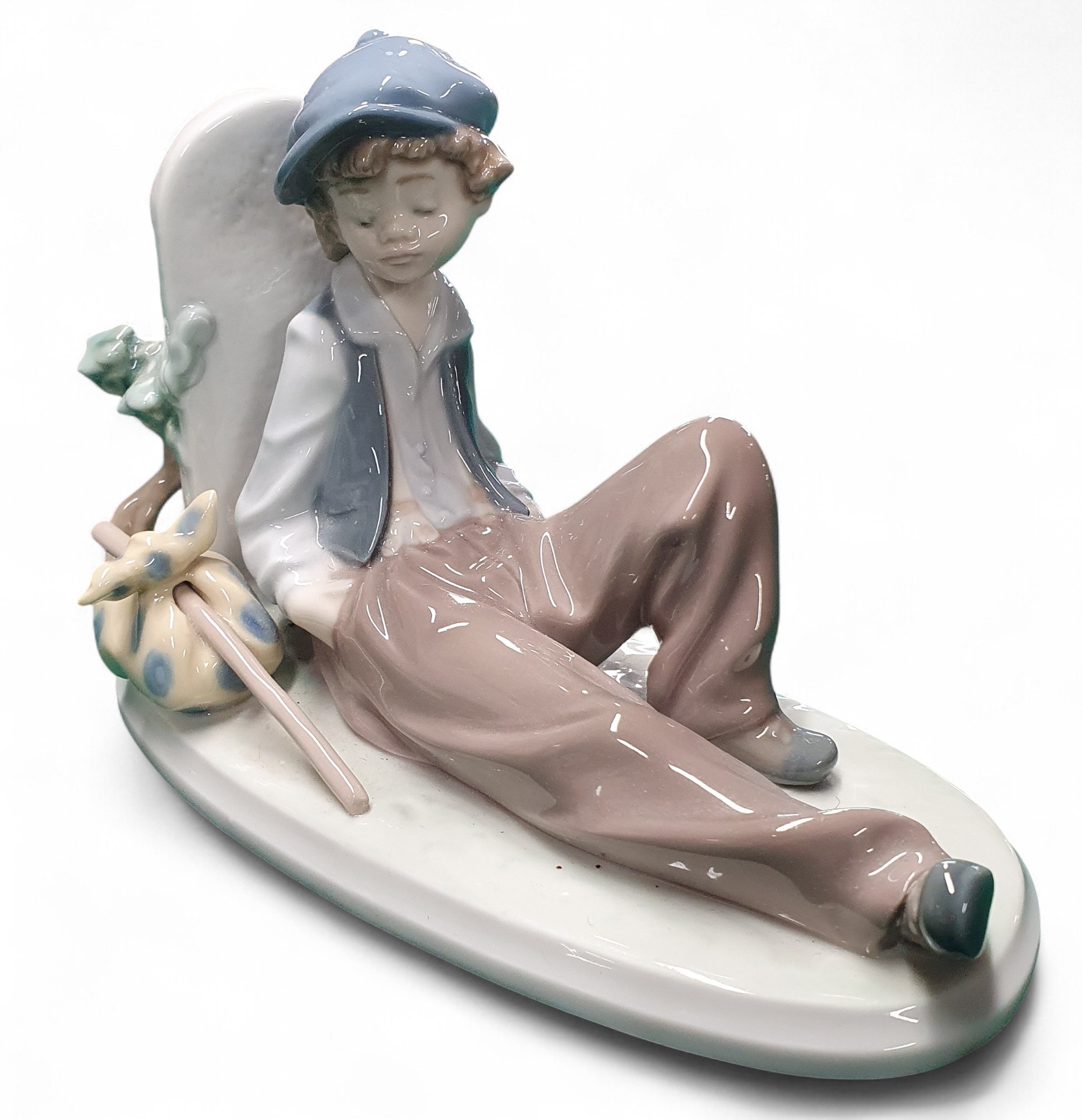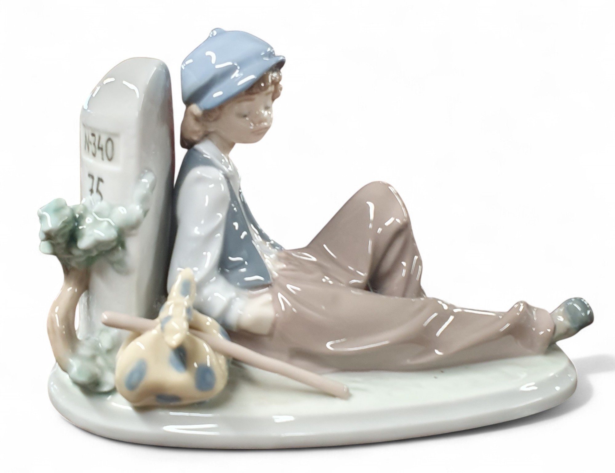 A Lladro Figure of a boy with his knapsack. L 17 x H 11 cm approx.
