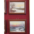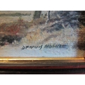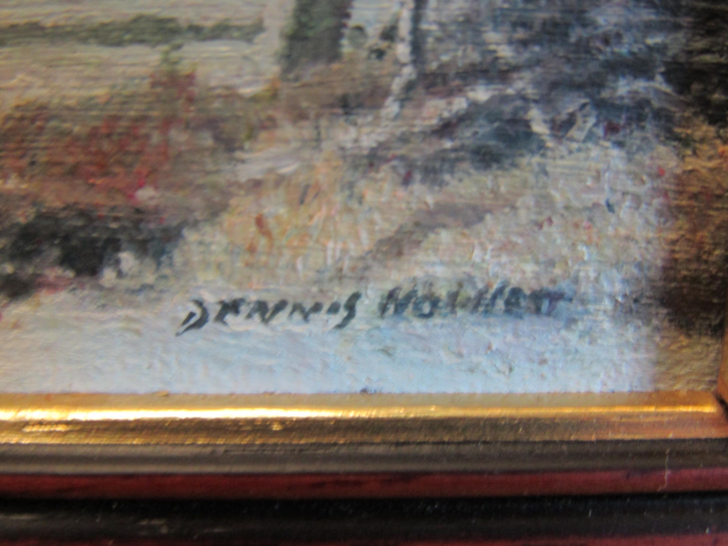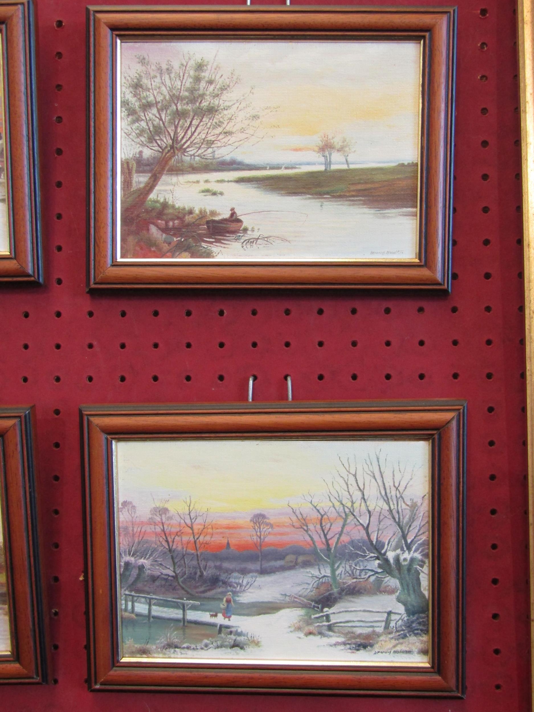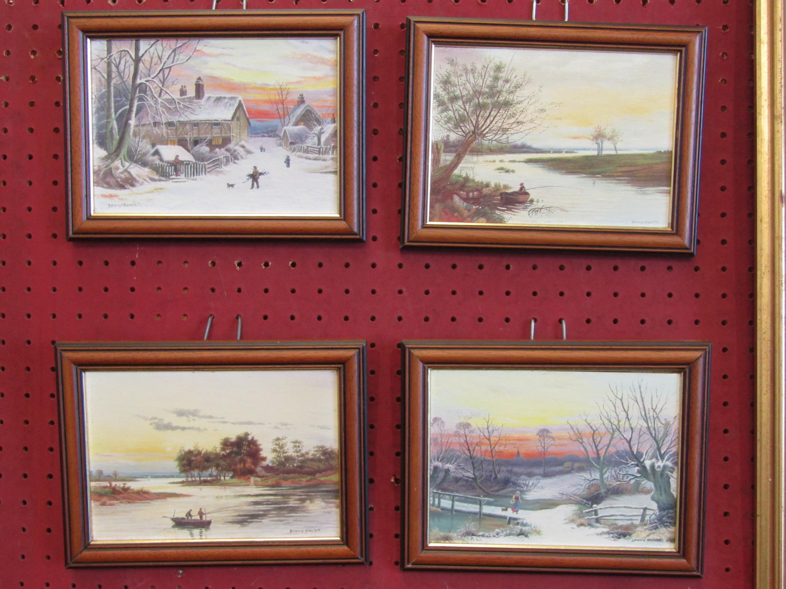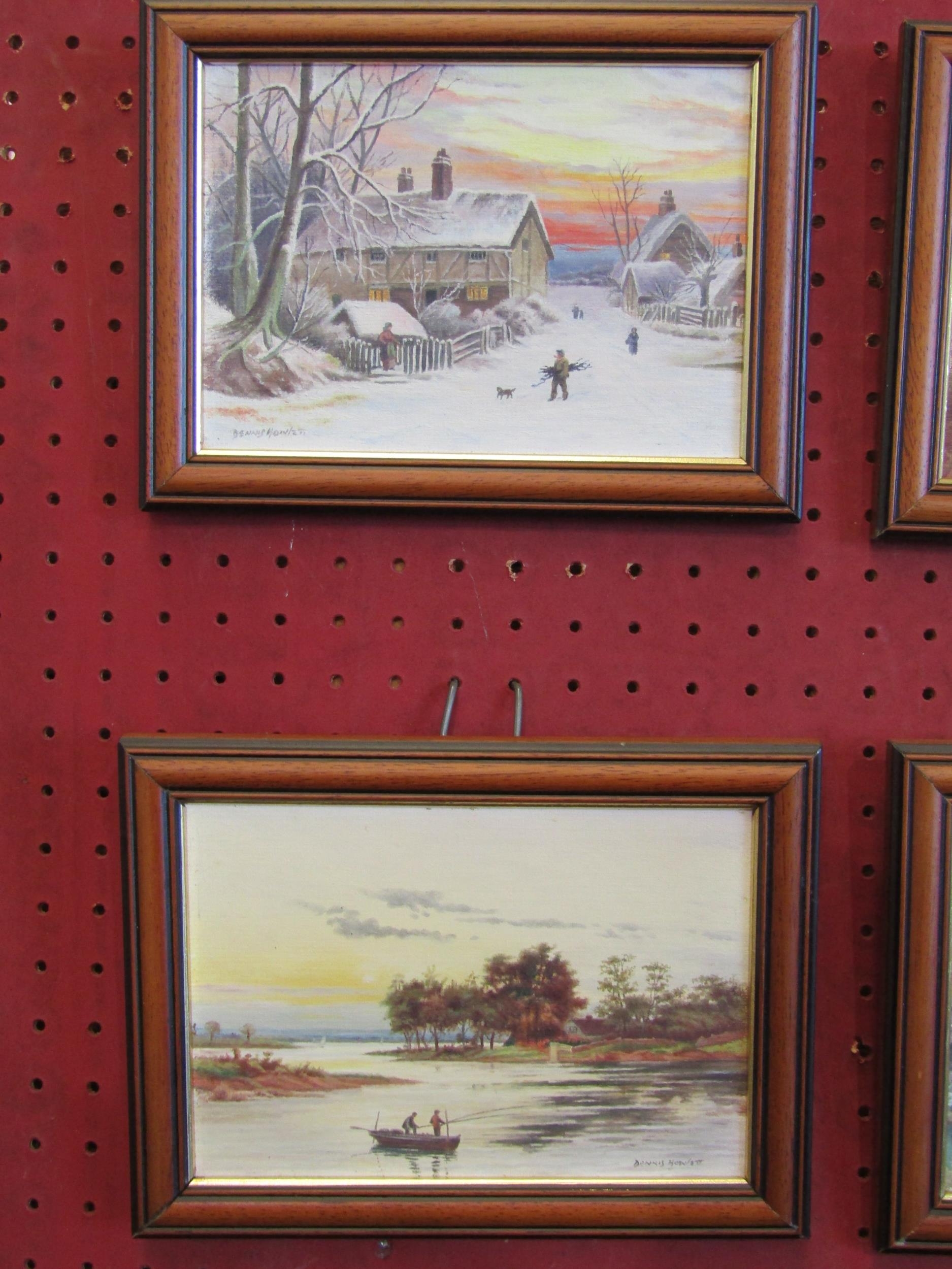 DENNIS HOWLETT: Four oils on board depicting rural village and waterside scenes. All signed, each 12cm x 16.5cm image size