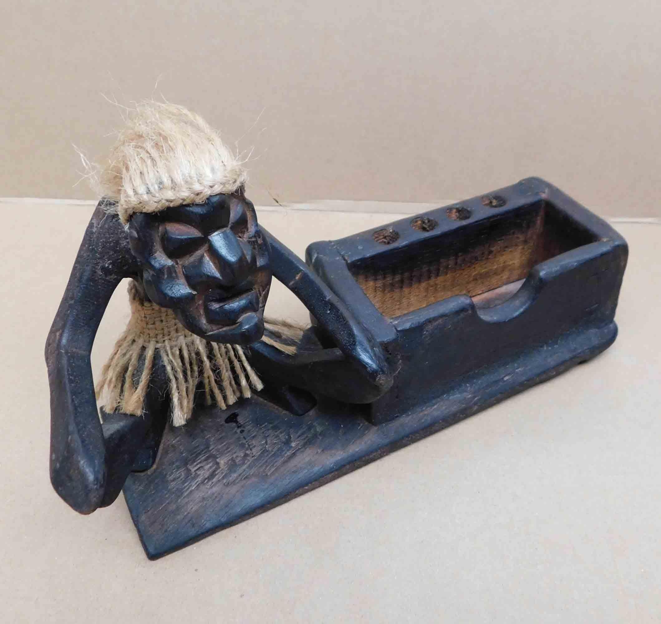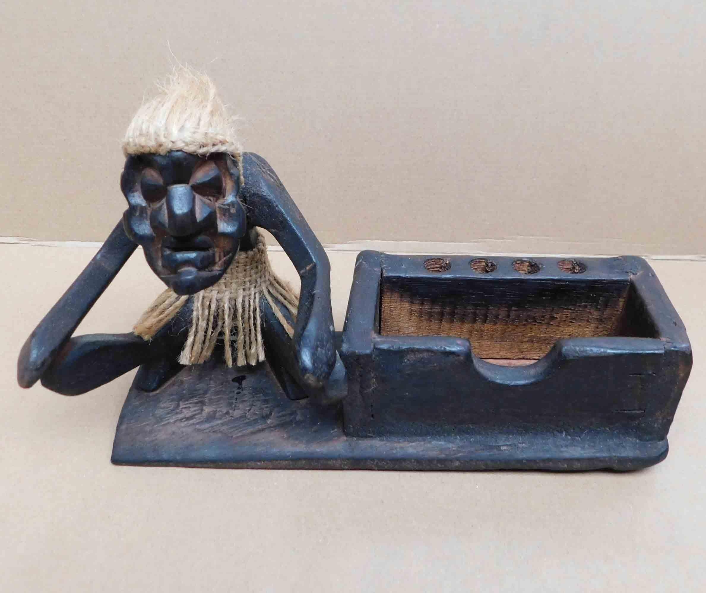 Tiki style - Wooden business card & pen holder