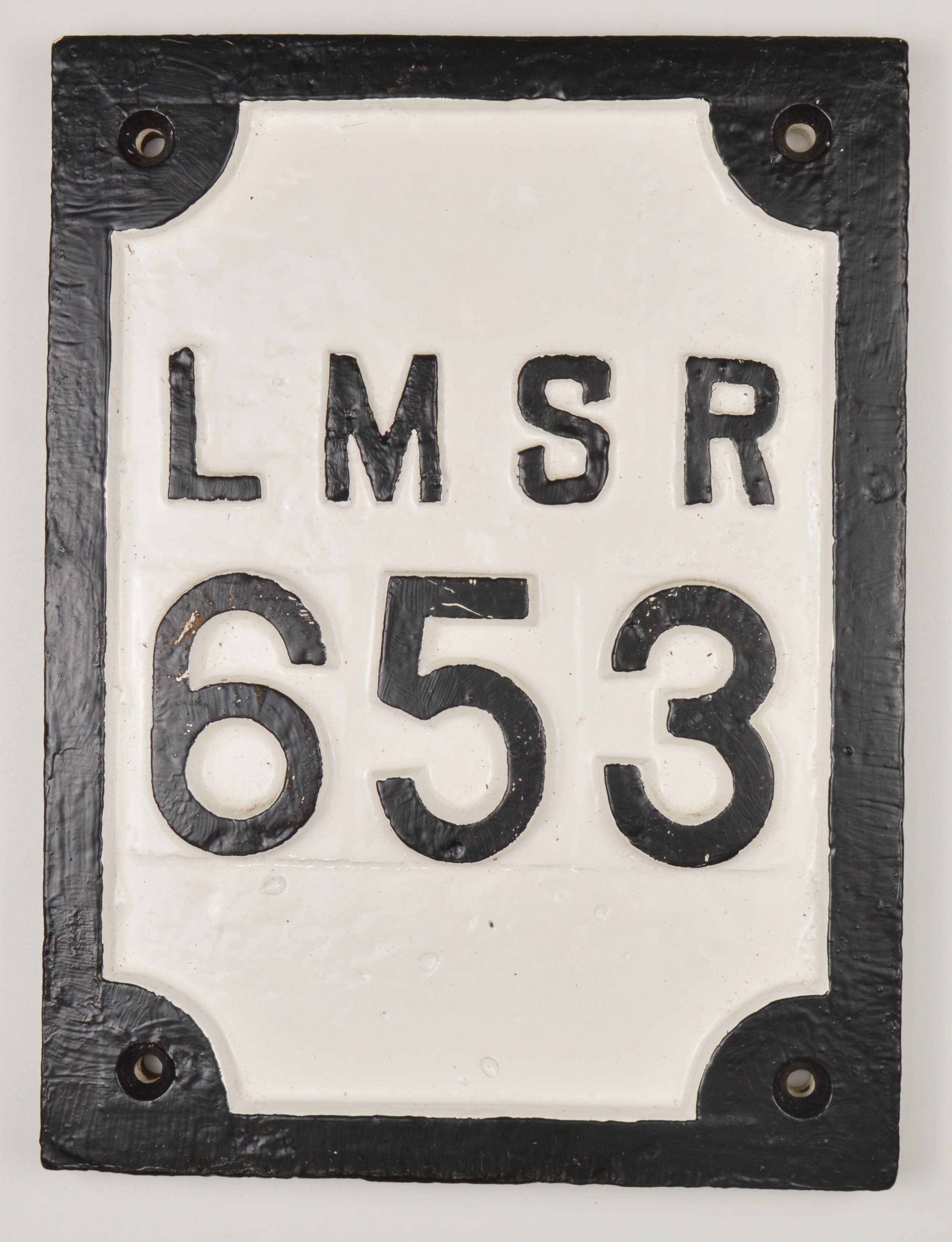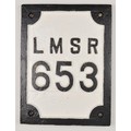 Cast iron sign, London, Midland & Scottish Railway water column plate LMSR 653, uncommon sign. Repainted front only. 9 x 12 inches. Shipping band - C.