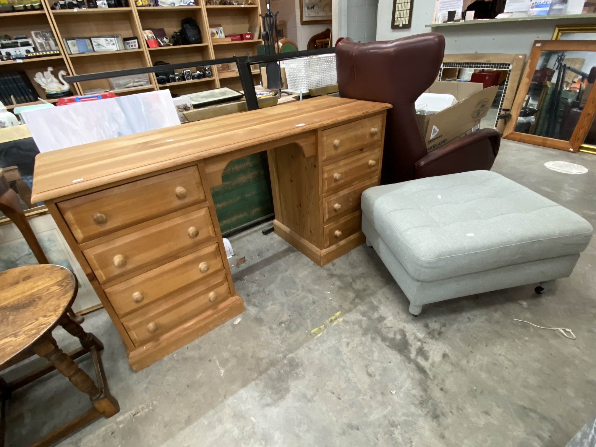 Pine eight drawer dressing table 78x143x48 & an Ikea Landskrona footstool 38x73x60