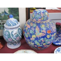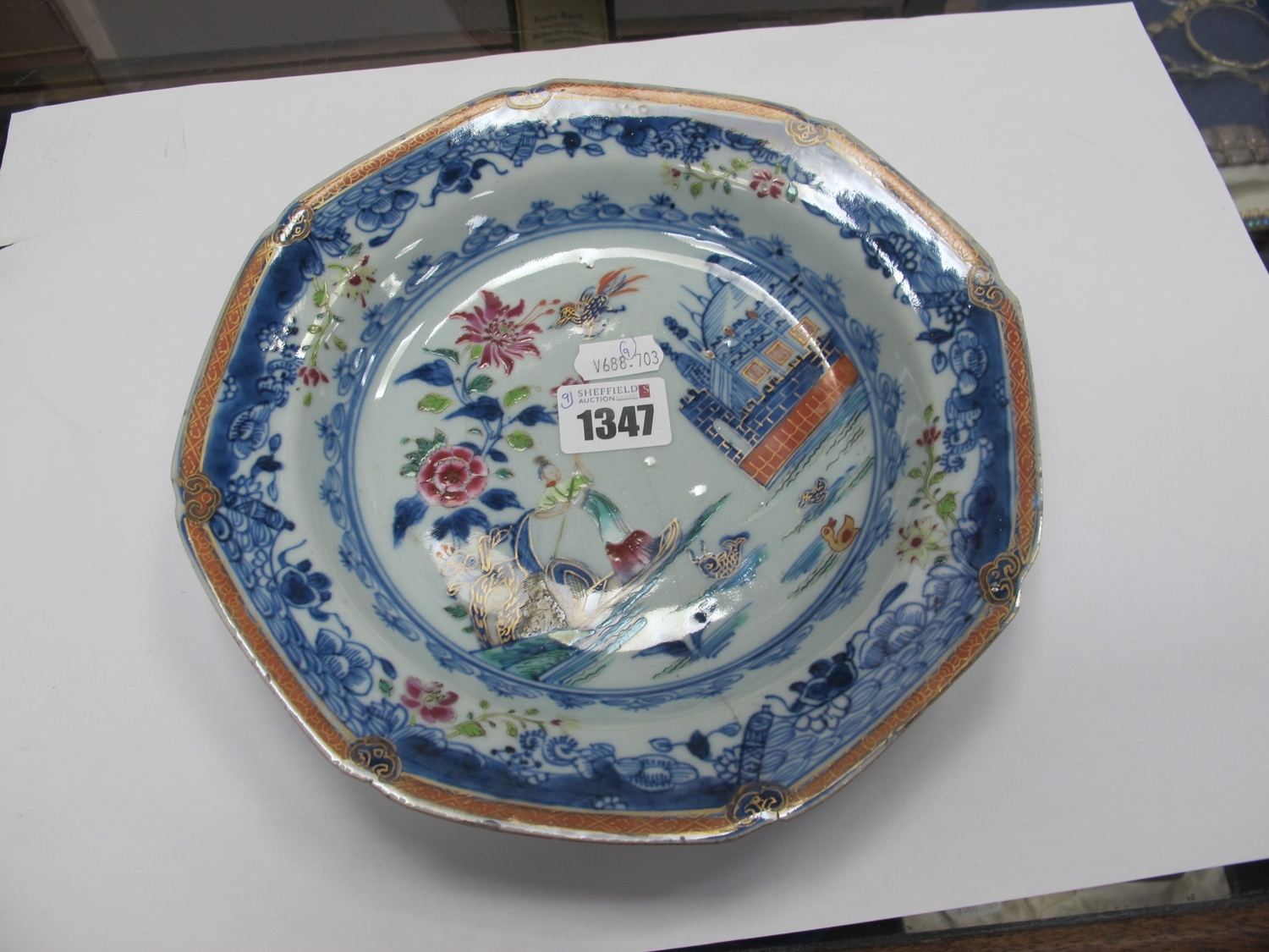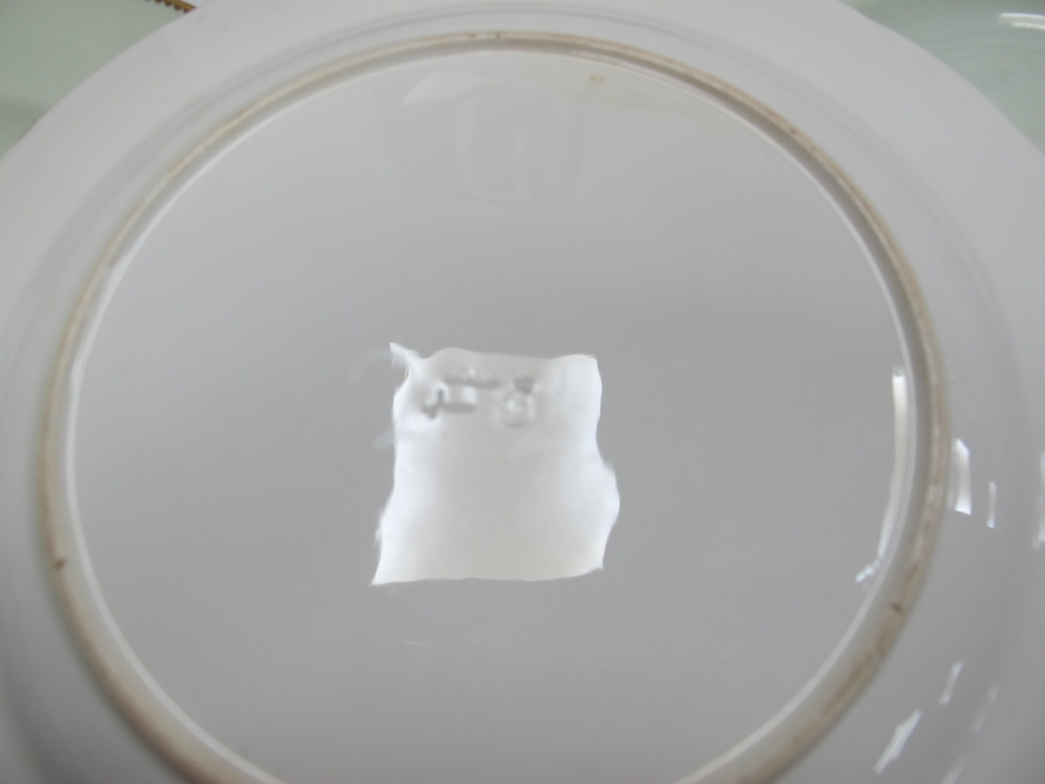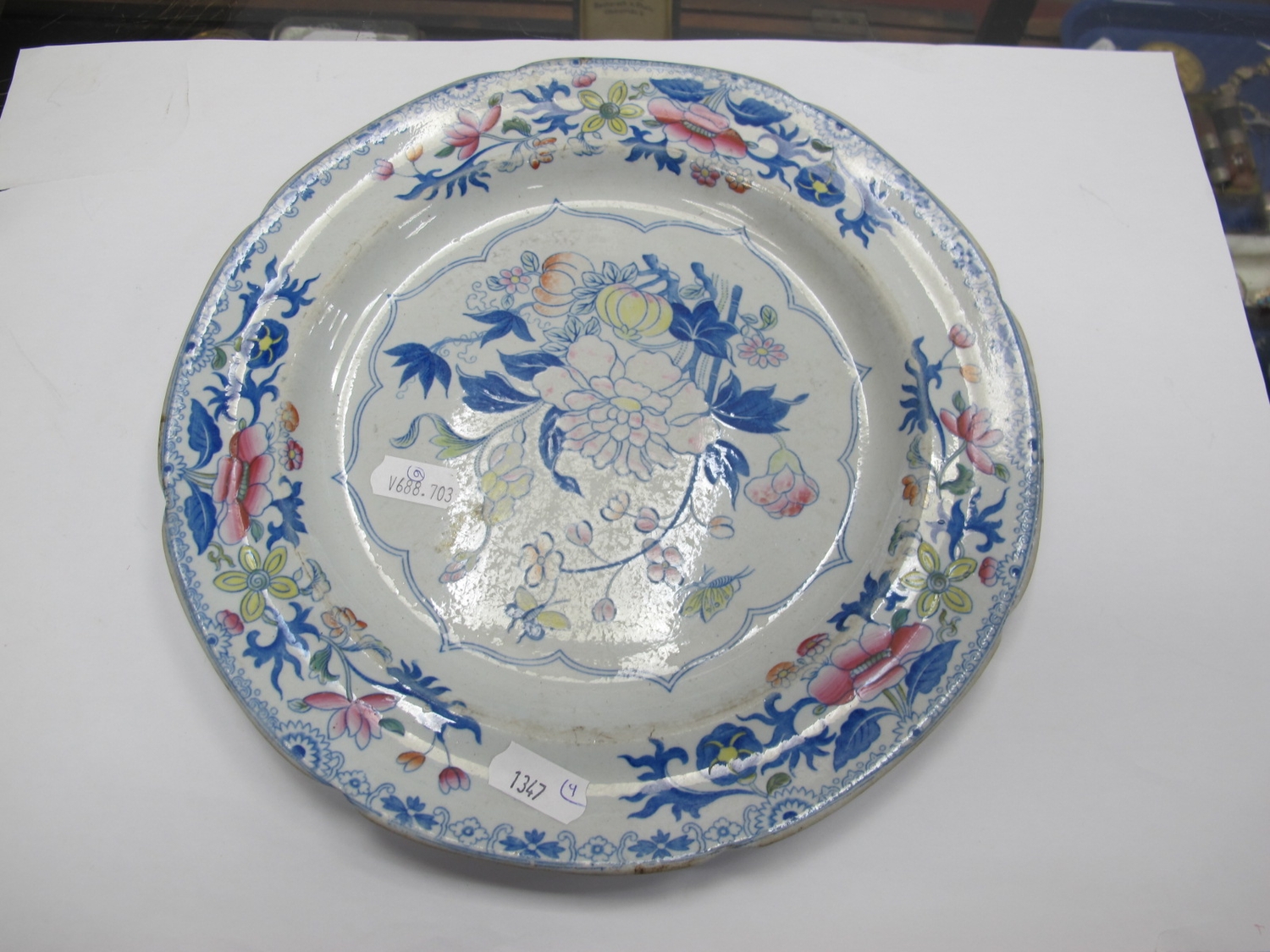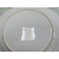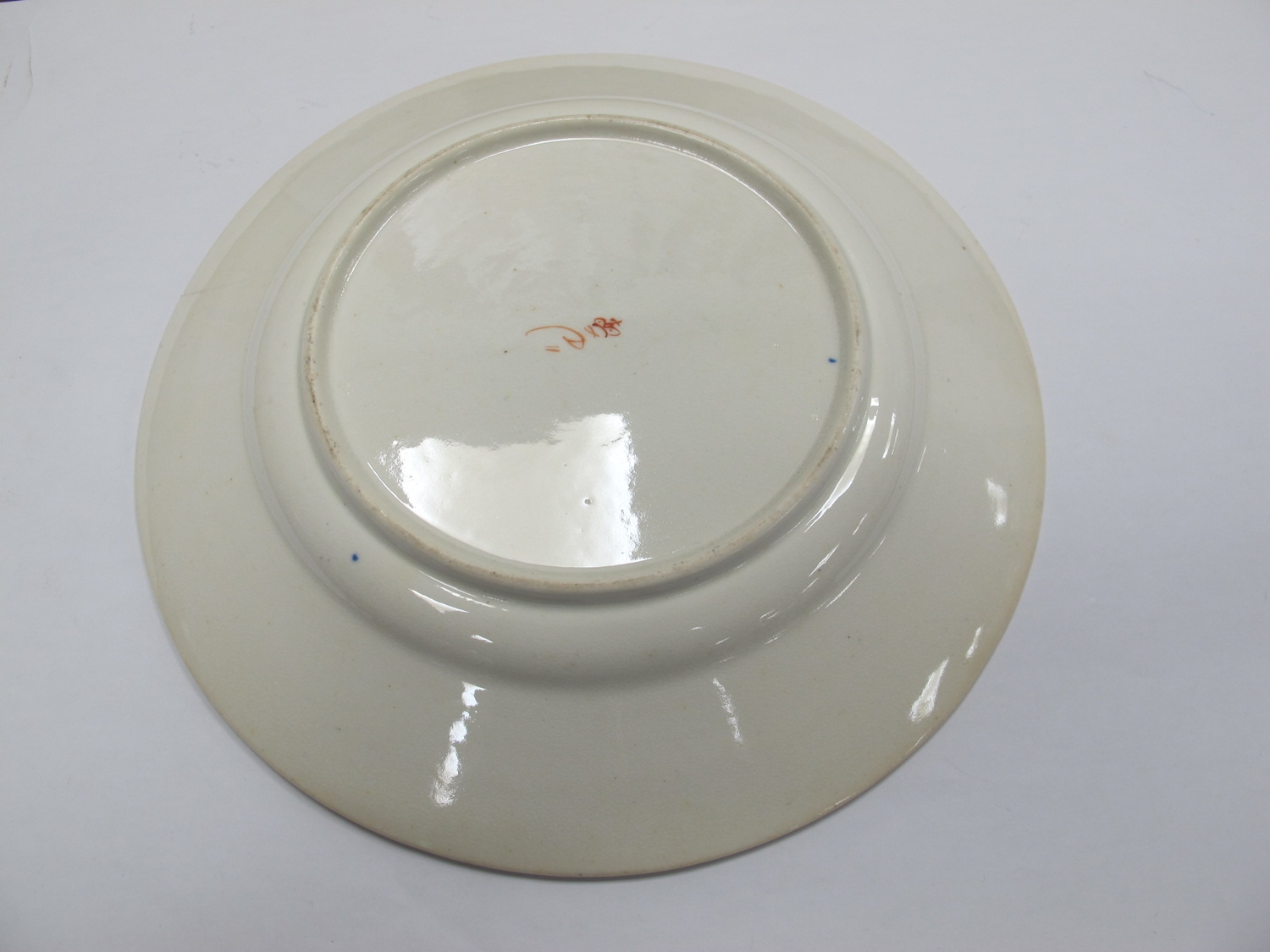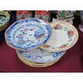Minton - Set of six hand painted floral cabinet plates on pale green ground, with gilt rims. XIX Century Spode, Derby and Chinese temple examples. (9).