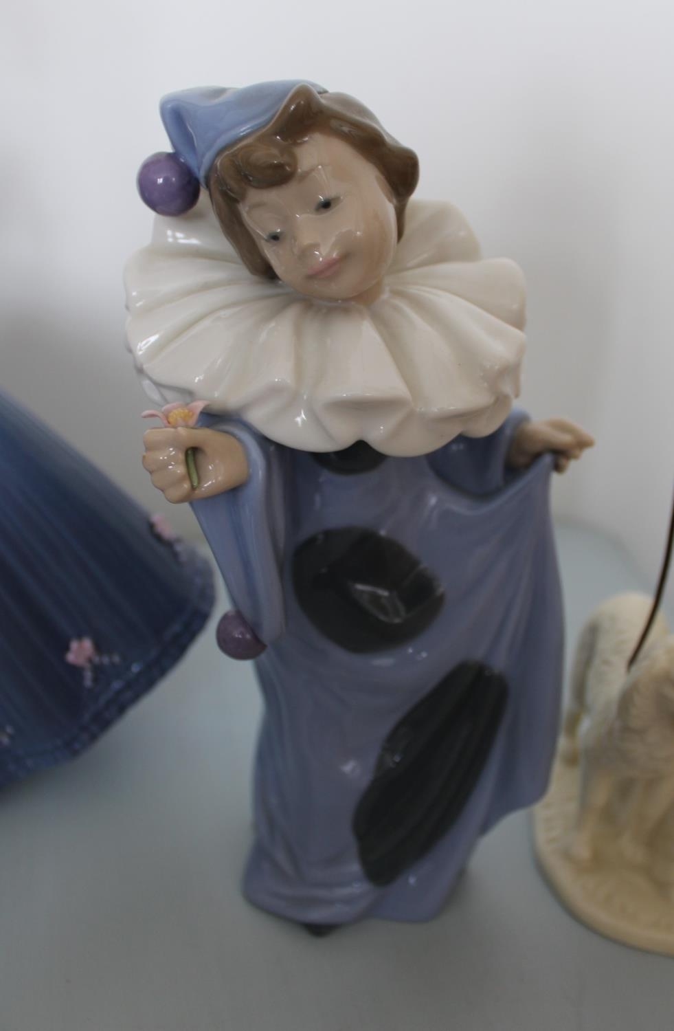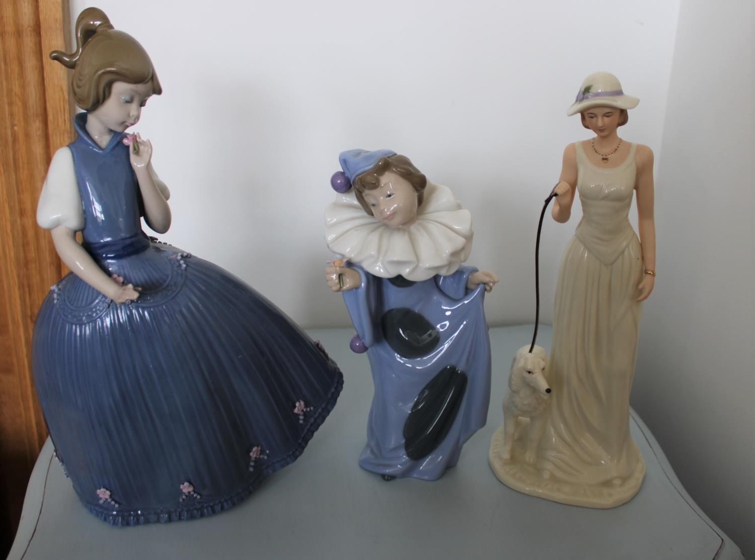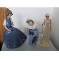 Three Ceramic Figurines. One made by Lladro, One Nao and one from The Regal Collection. Tallest (Lladro) measures 29cm