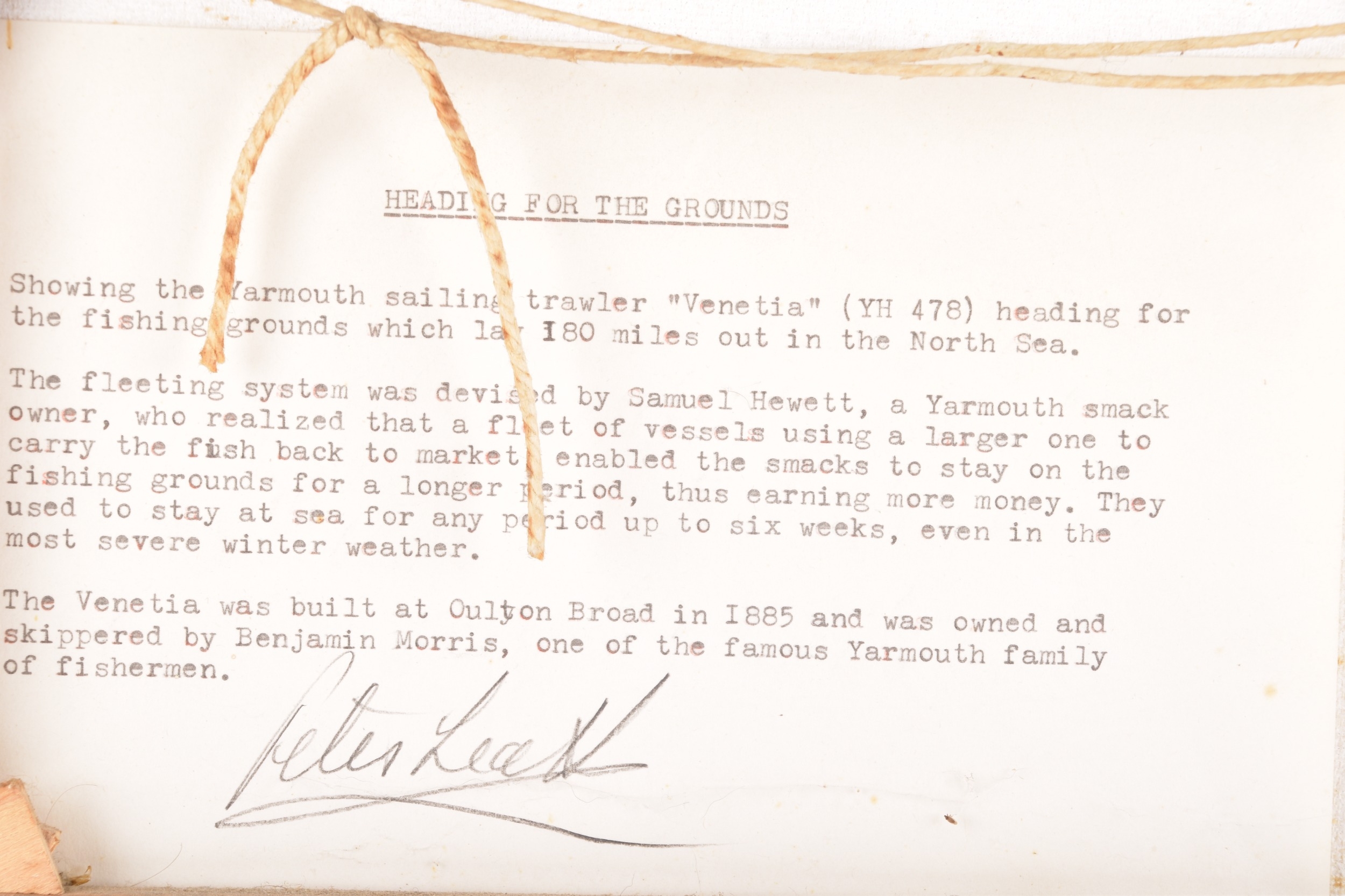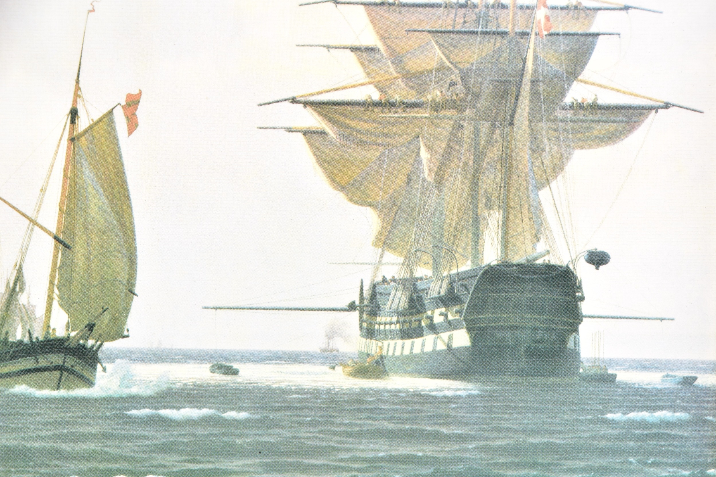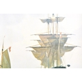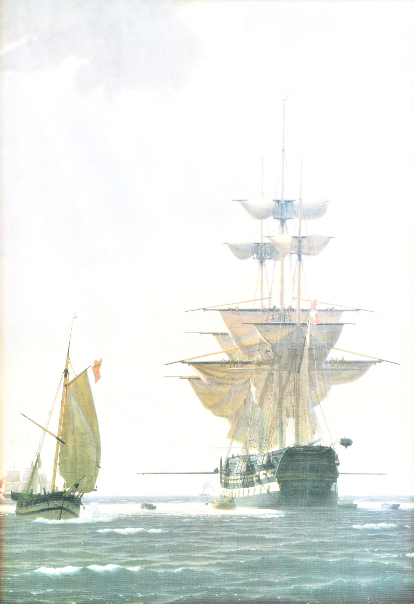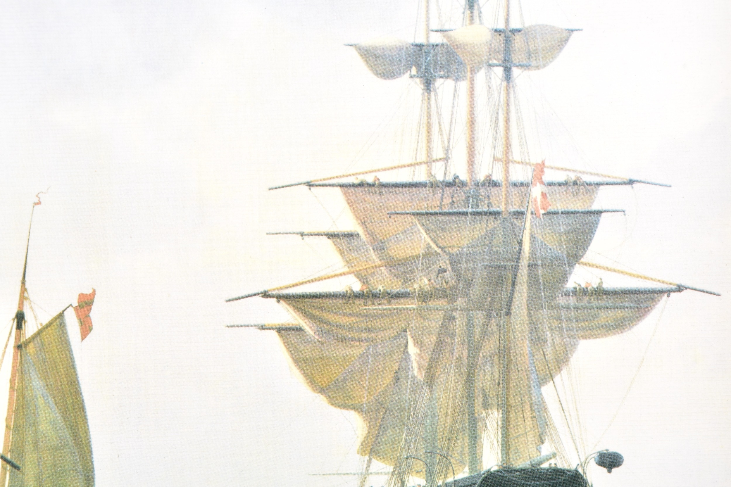 Two seascapes, including 'Heading for the Grounds' by Peter Leath (British, 1935-), depicting the Yarmouth sailing trawler 'Venetia' heading for the fishing grounds which lay 180 miles out in the North Sea, signed to lower right, oil on canvas, 24 x 34.5 cm, framed, together with an embellished print of 'Preparing to Sail' by Christoffer Wilhelm Eckersberg, 23.5 x 16.5 cm, Stephen Selby's Gift Collection label to verso, framed. (2)