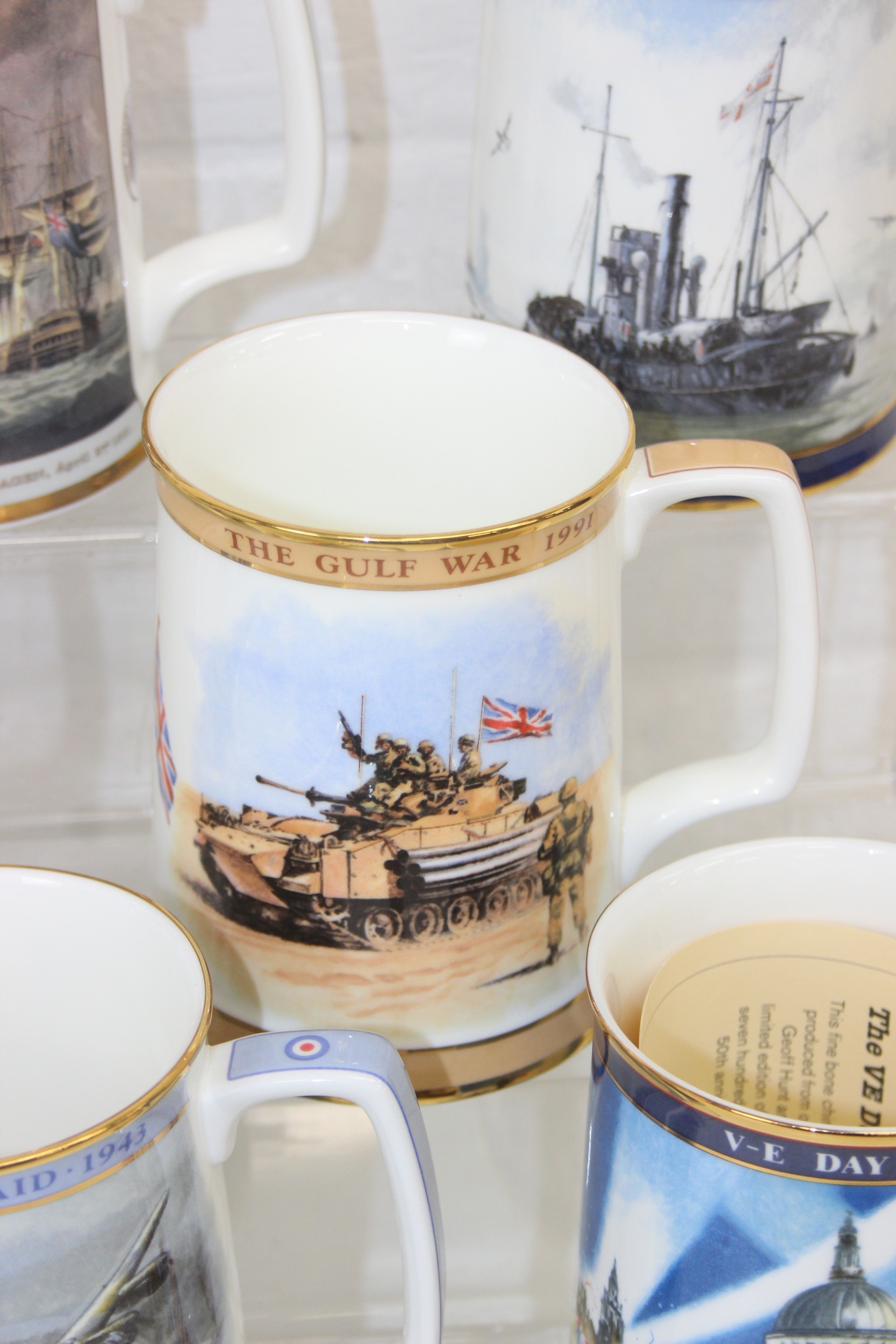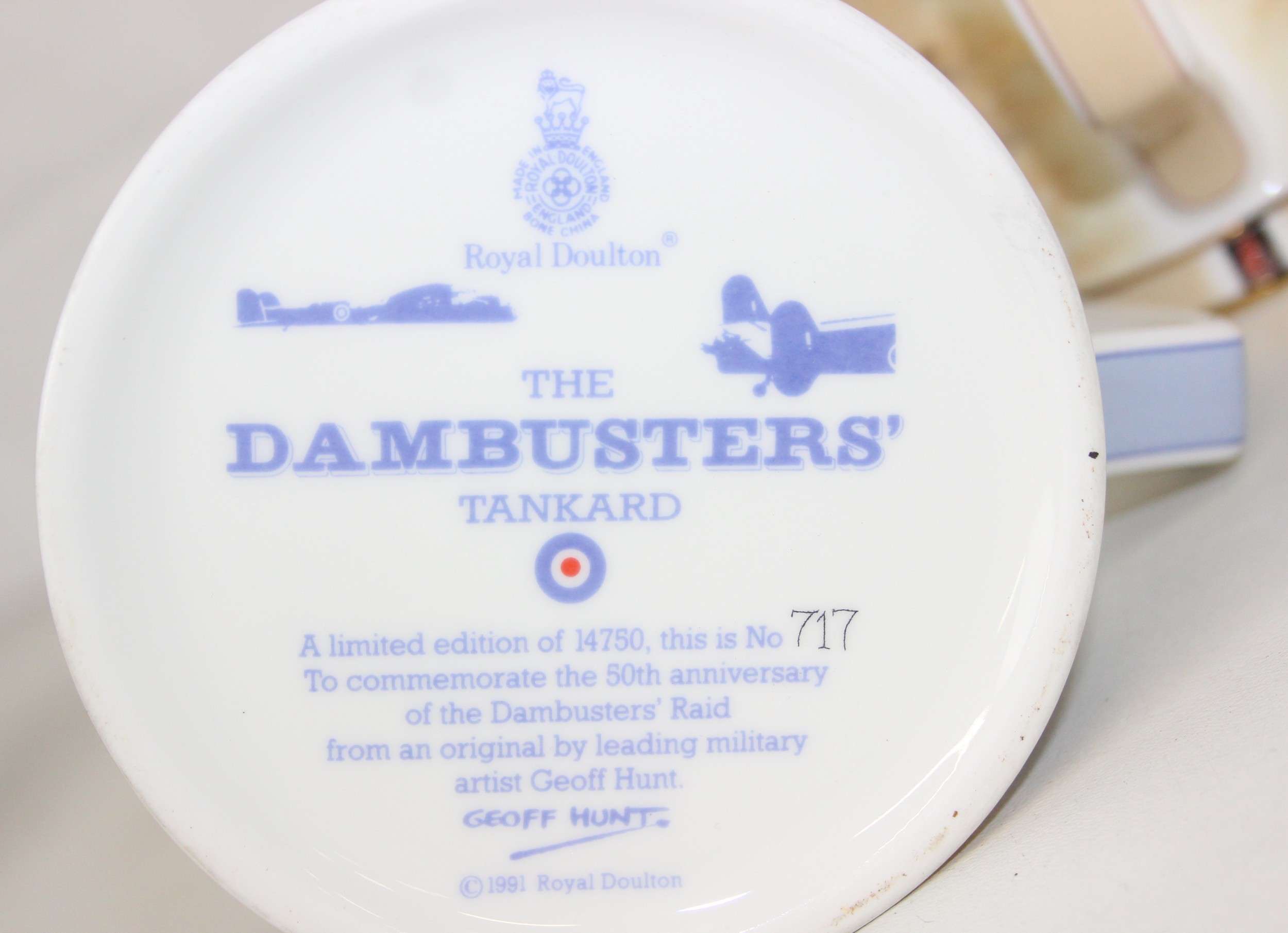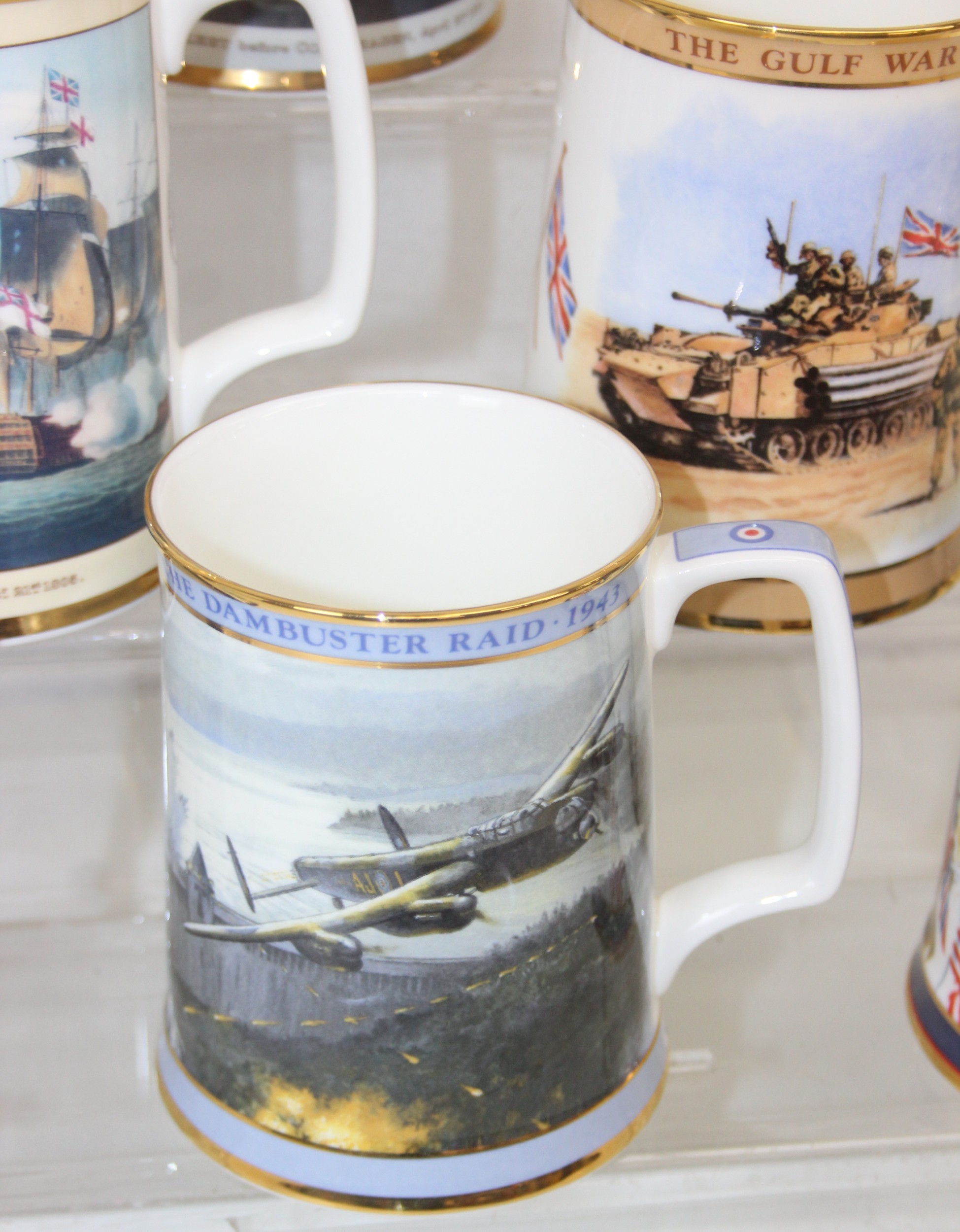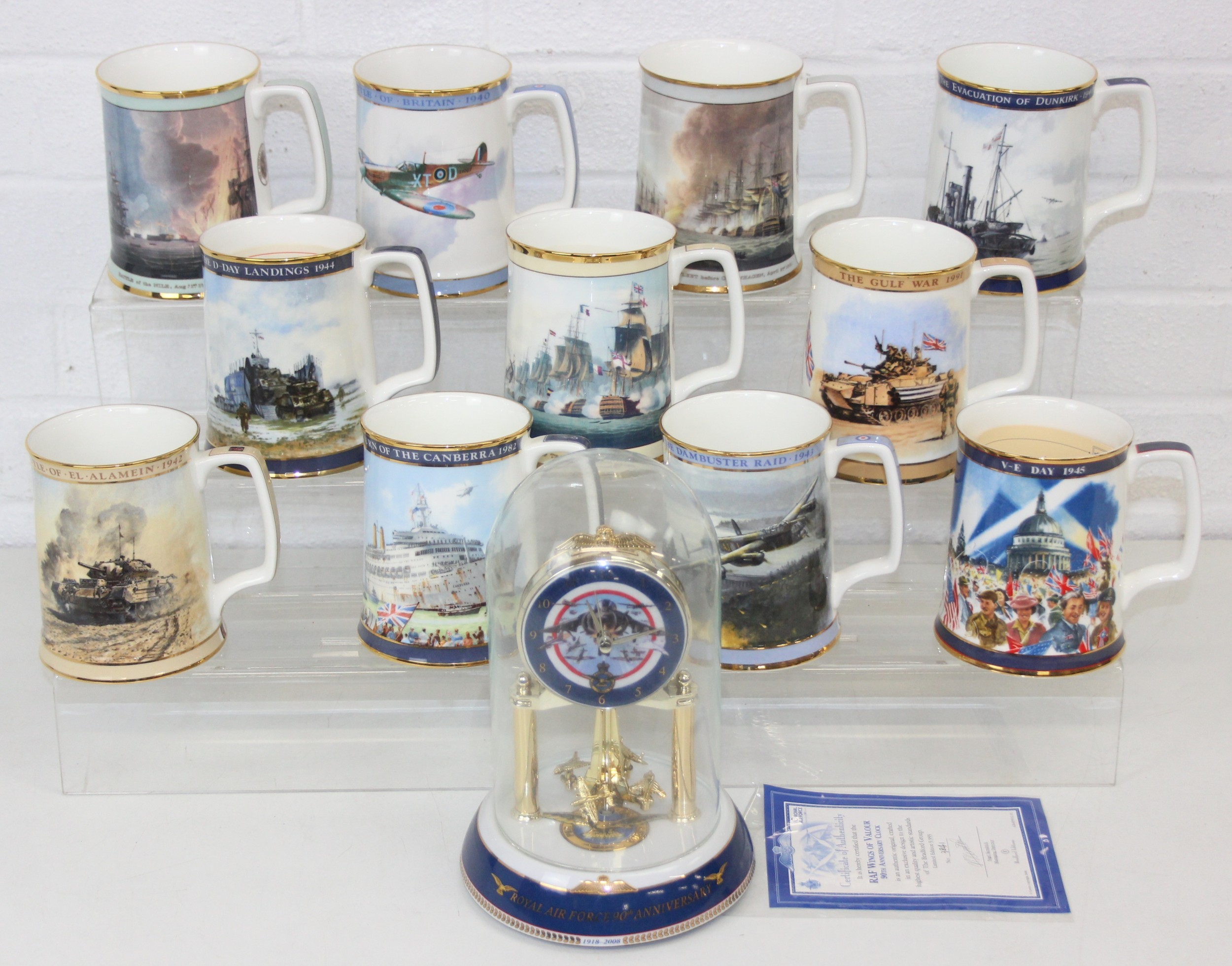 Royal Doulton - assorted commemorative military themed fine bone china tankards, limited editions, many with COAs, and a Royal Air Force 90th Anniversary clock [12]