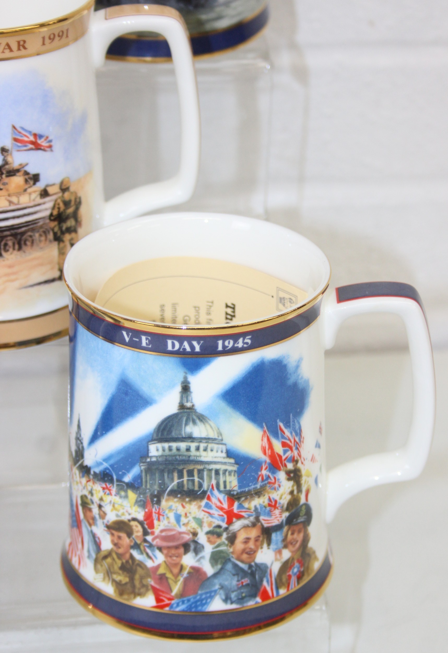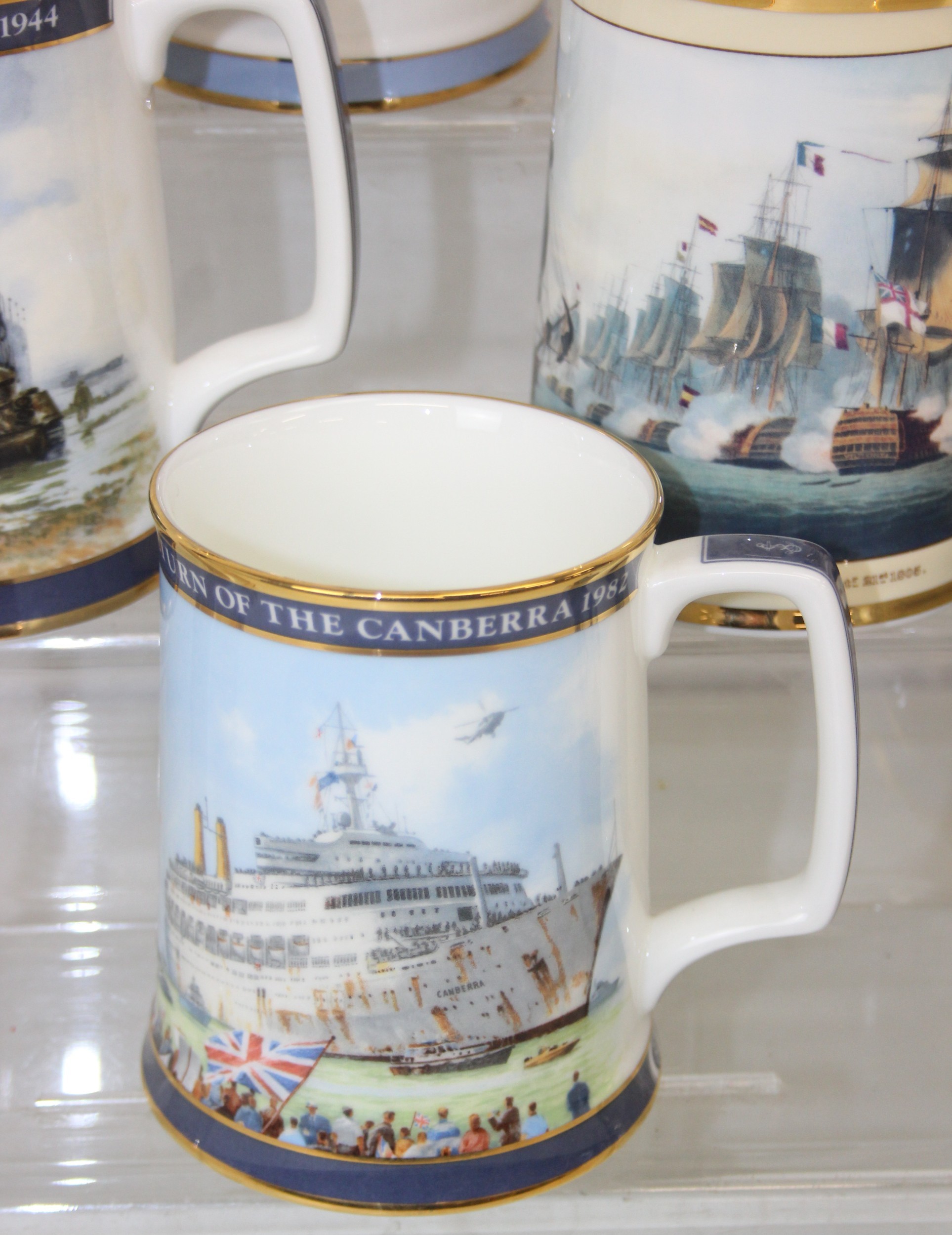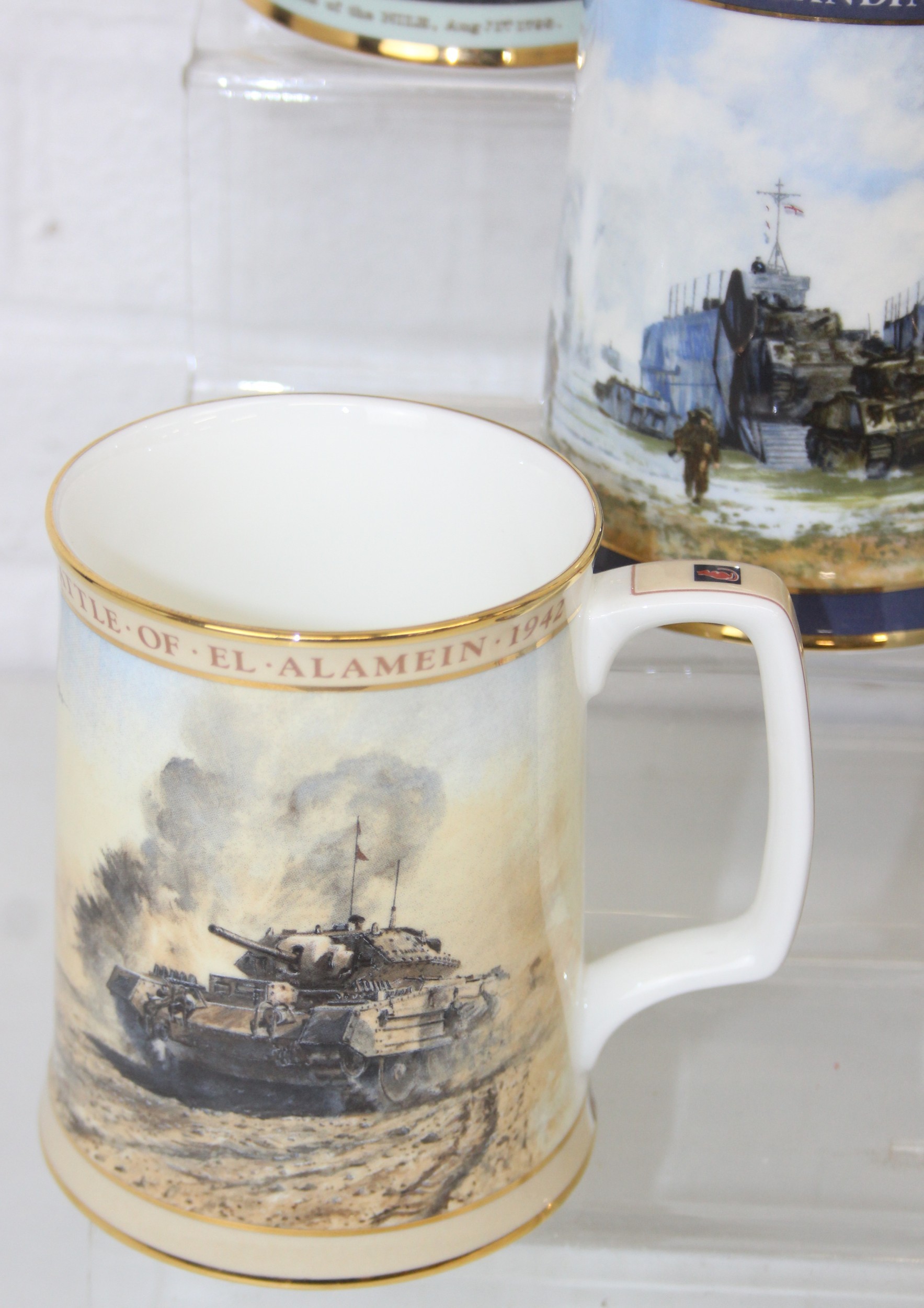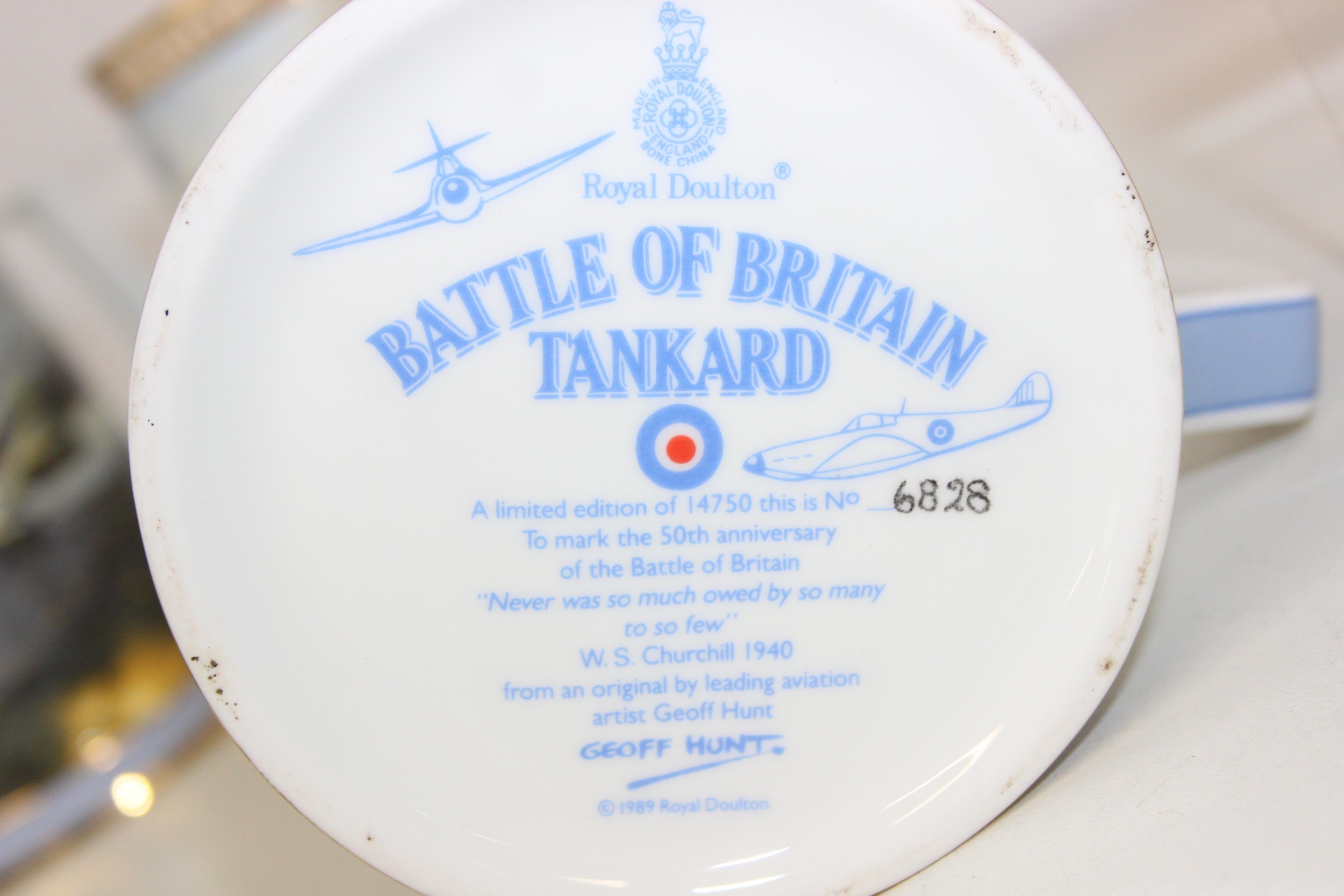 Royal Doulton - assorted commemorative military themed fine bone china tankards, limited editions, many with COAs, and a Royal Air Force 90th Anniversary clock [12]