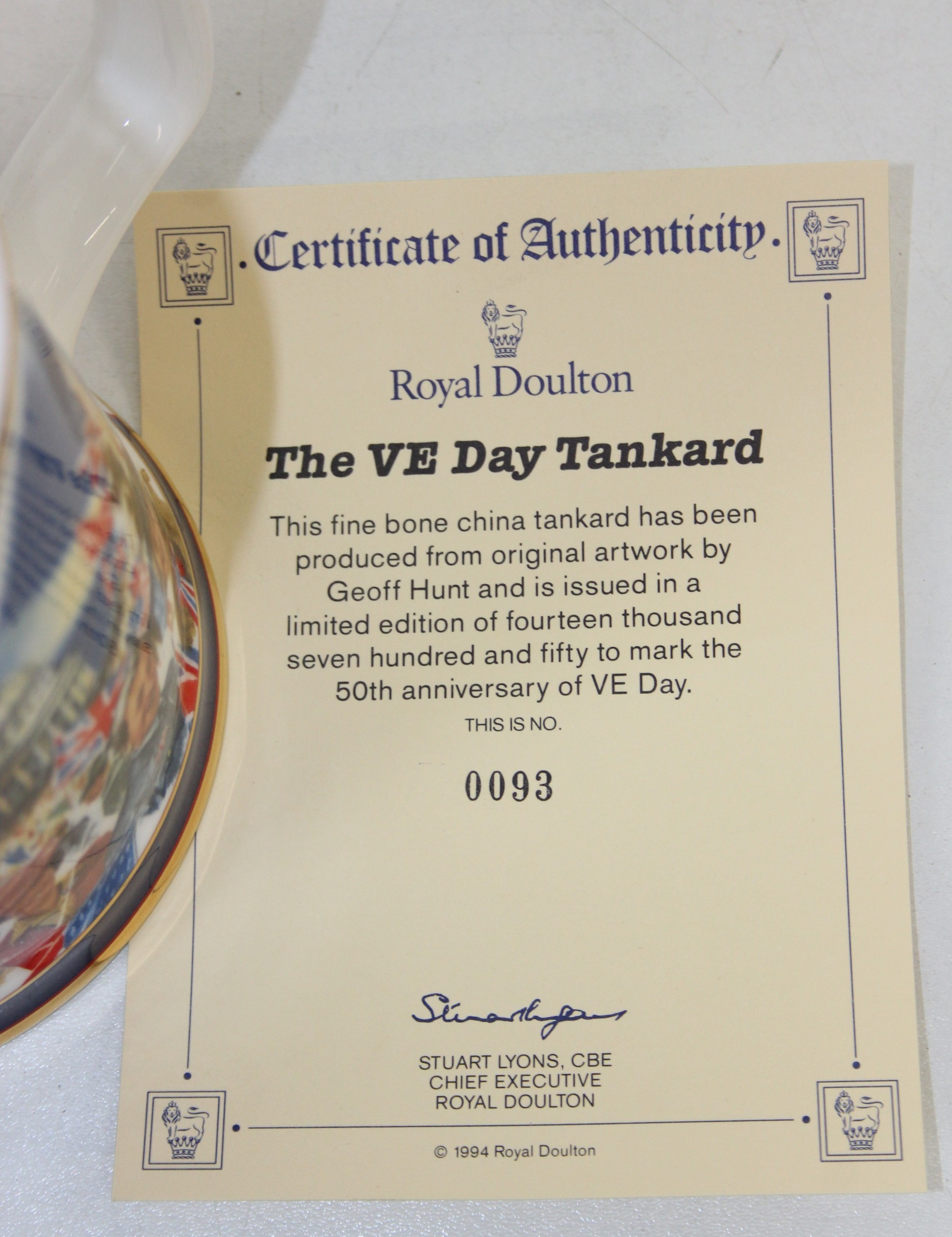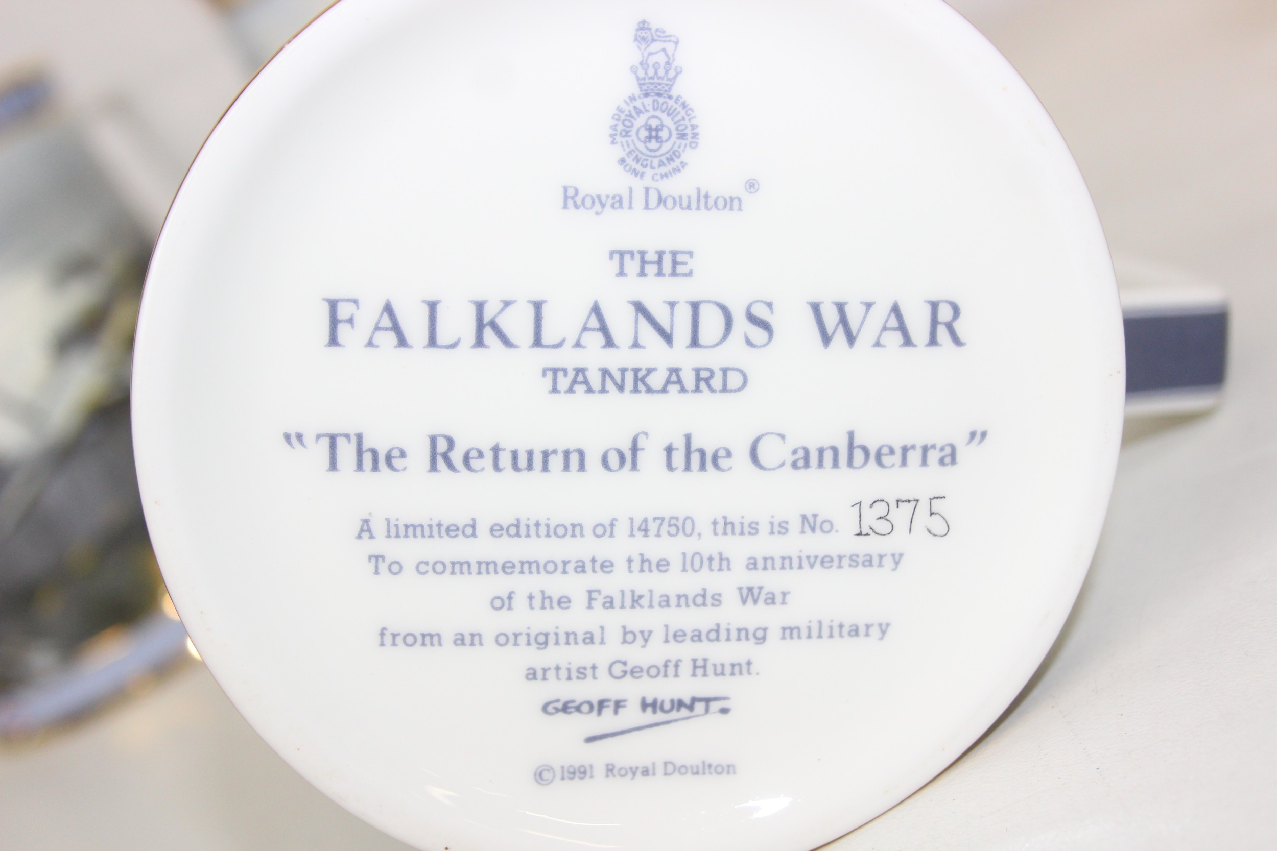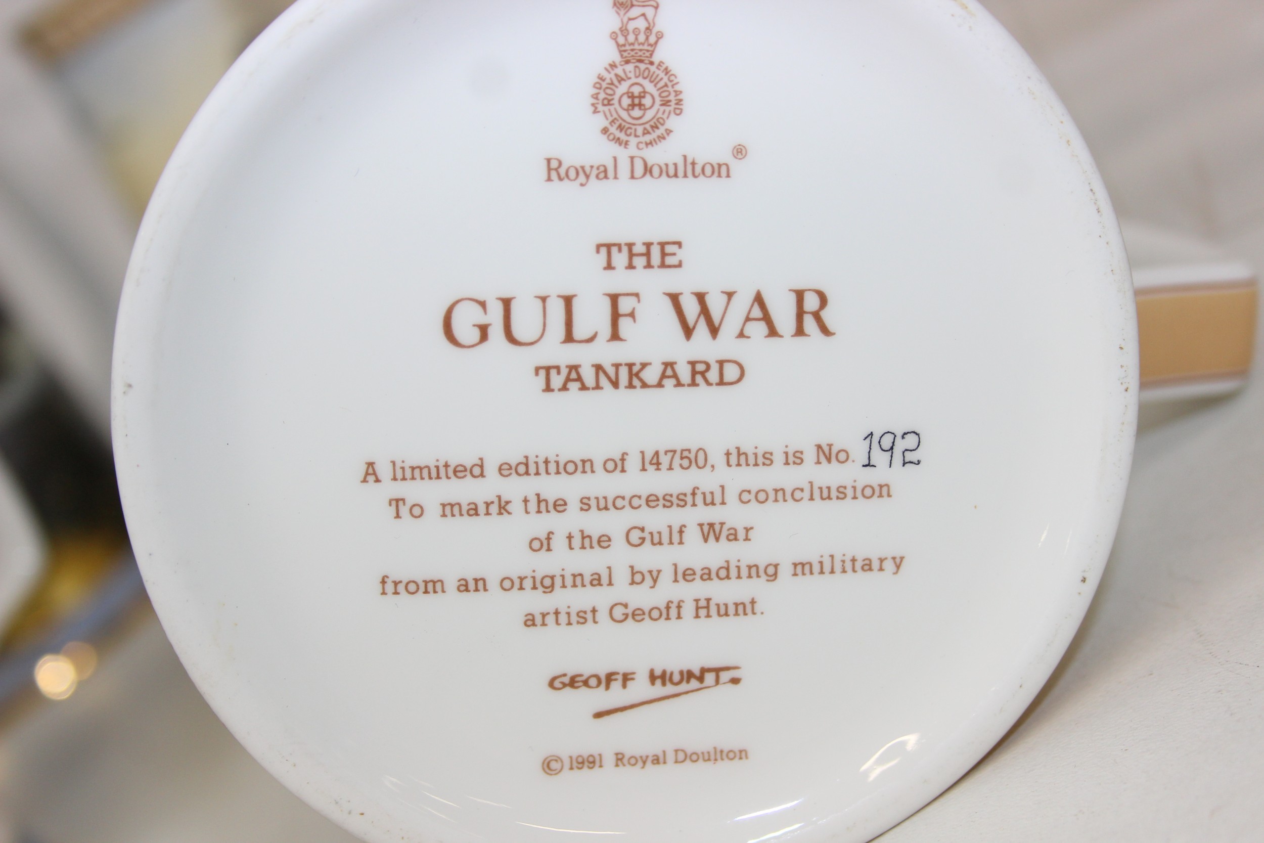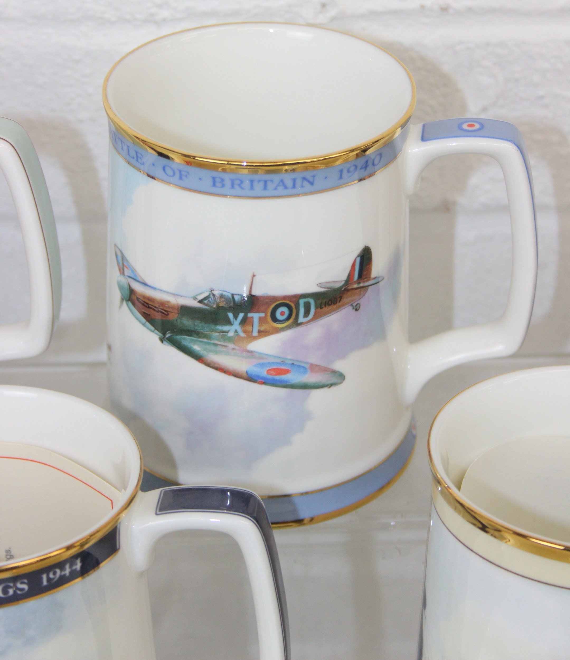 Royal Doulton - assorted commemorative military themed fine bone china tankards, limited editions, many with COAs, and a Royal Air Force 90th Anniversary clock [12]