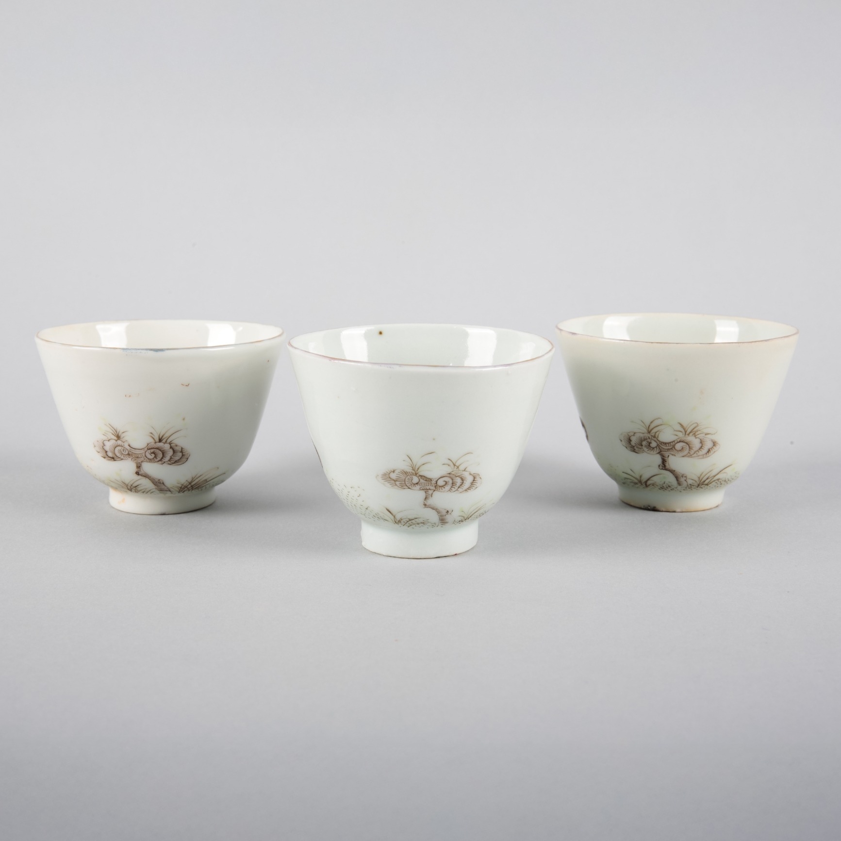 A SET OF THREE CHINESE EXPORT PORCELAIN TEA BOWLS
